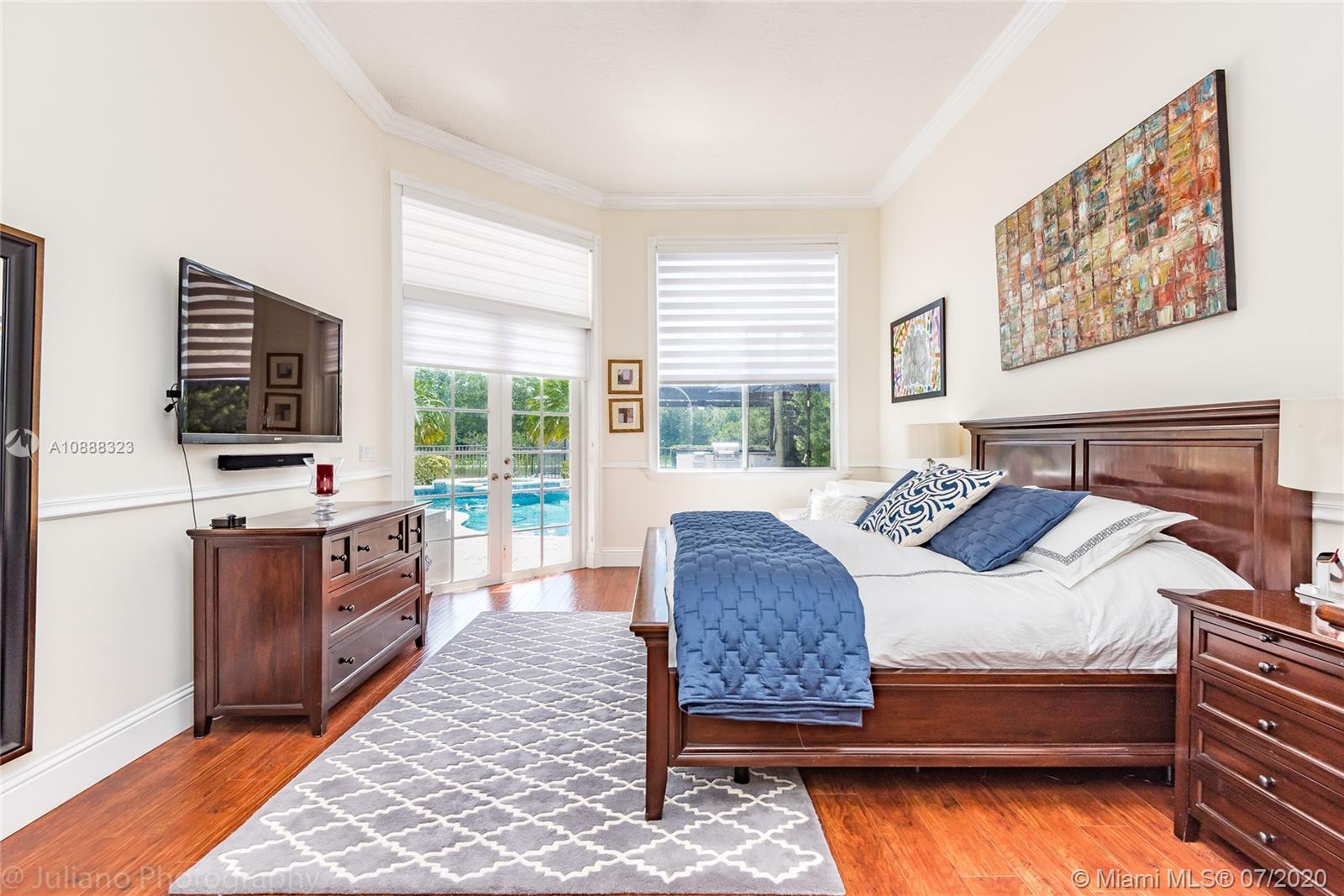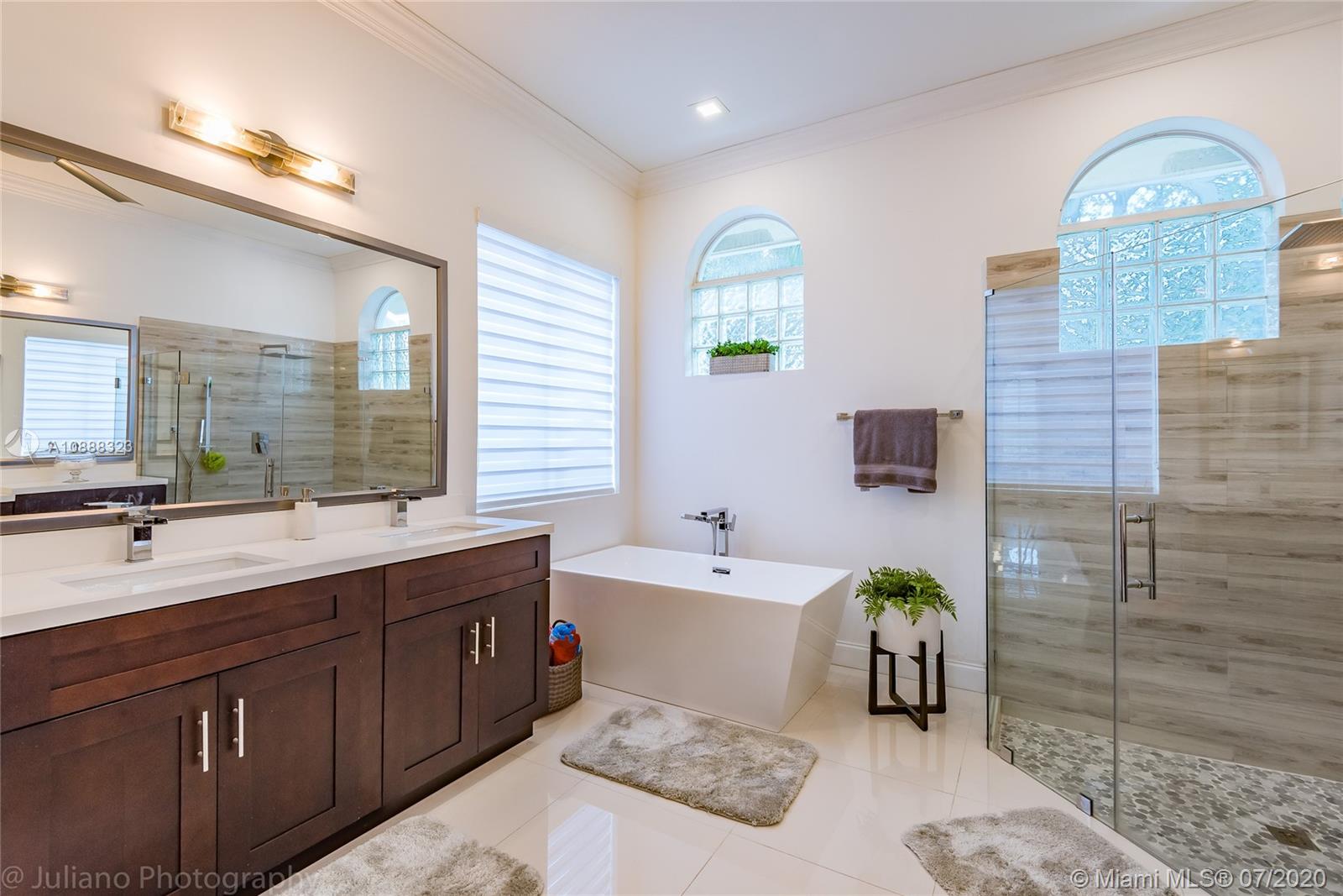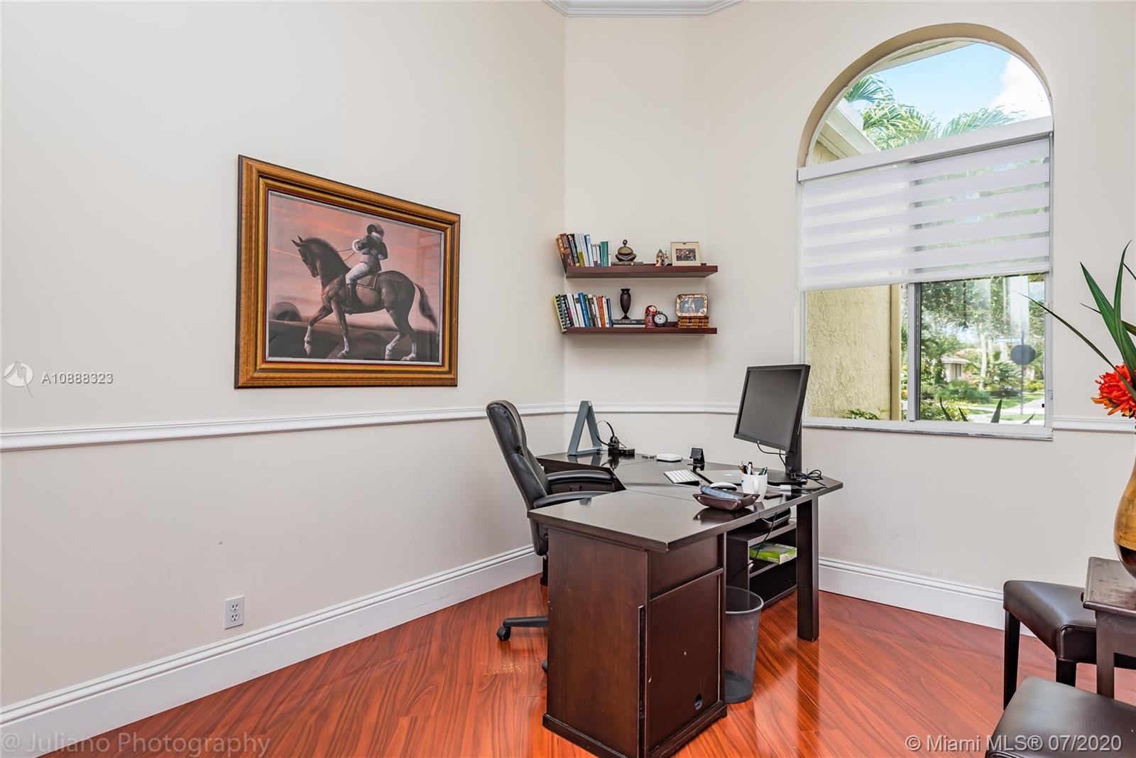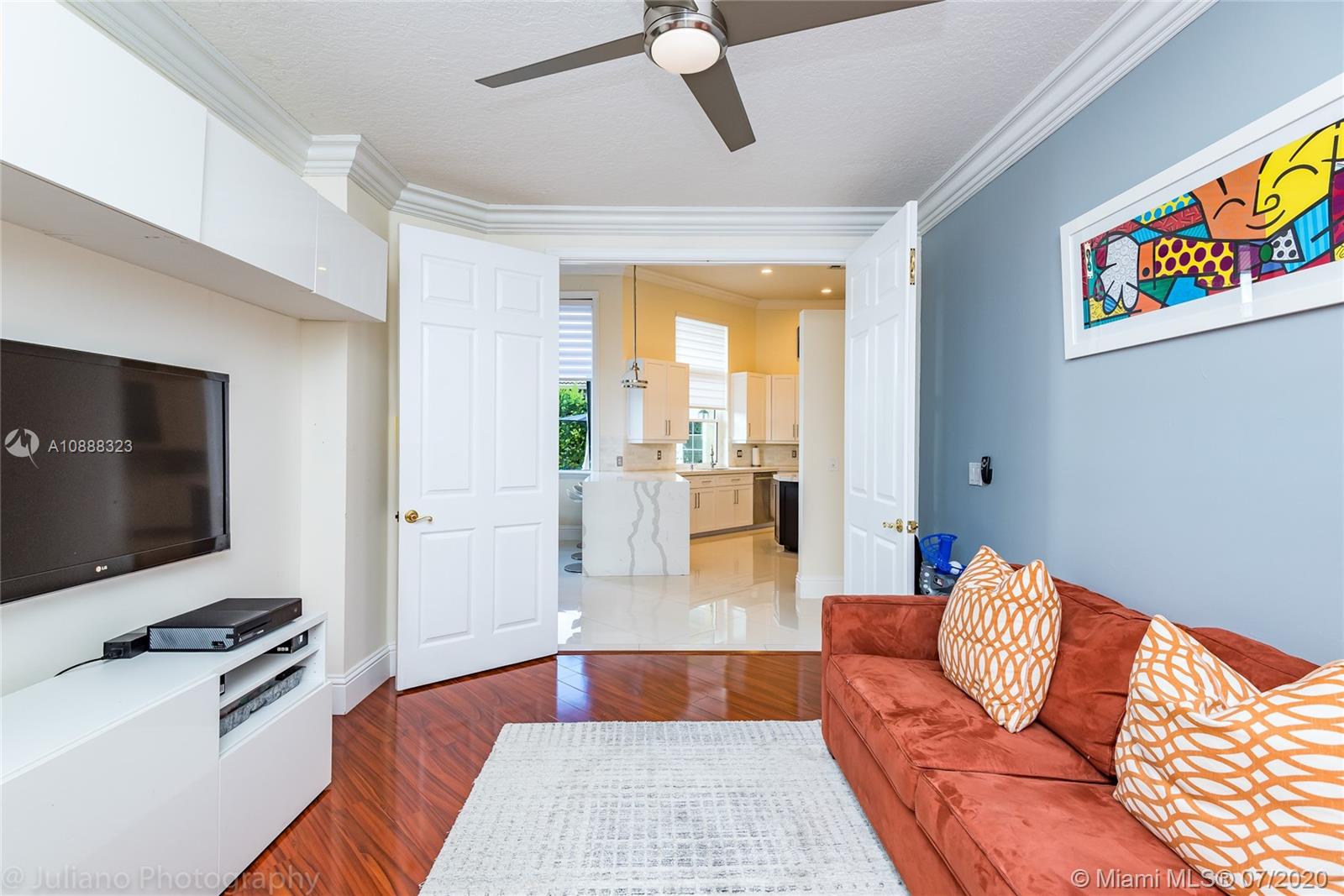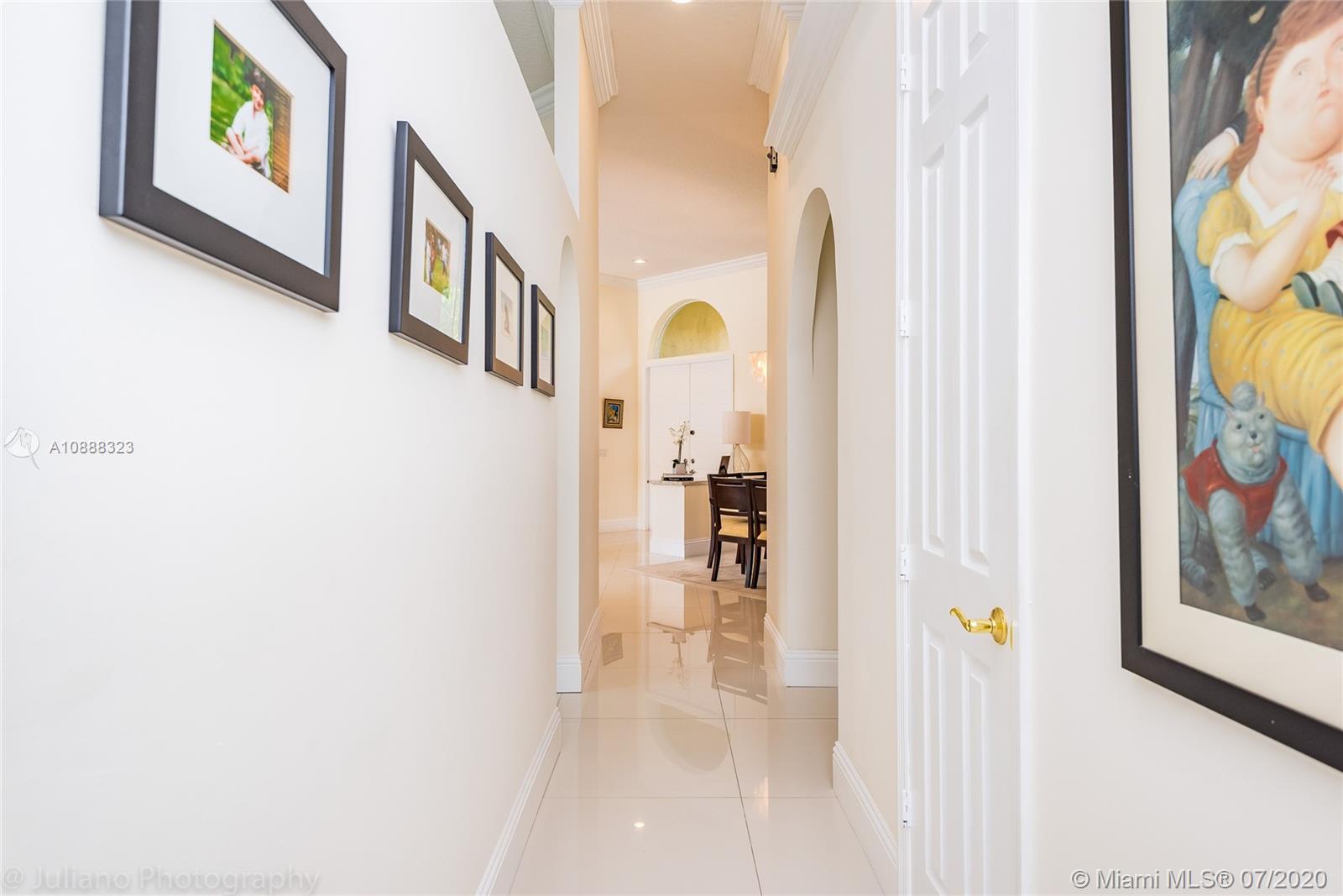 Custom built expanded Kingsley model features four spacious bedrooms plus an office and playroom with 3.5 baths. Enjoy lush tropical landscaping and 11.000 square foot lot fully fenced with expansive renovated salt pool with intelligent control trough your mobile, extended paver pool deck, summer kitchen under a gazebo and long unobstructed lake views with no neighbors behind. Master bedroom with soaring ceilings. Recently renovated Contemporary kitchen with white marble countertops, stainless steel appliances flows to family room with sliders to yard, neutral tones throughout. BRAND NEW custom master bath with vessel tub and oversized shower. This home shows bright and airy. Enjoy extensive crown moldings, marble floors, hurricane shutters, 3 car garage. Must See!
