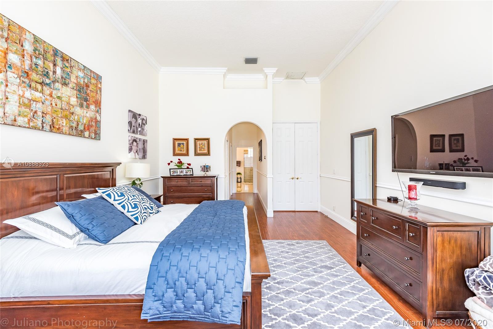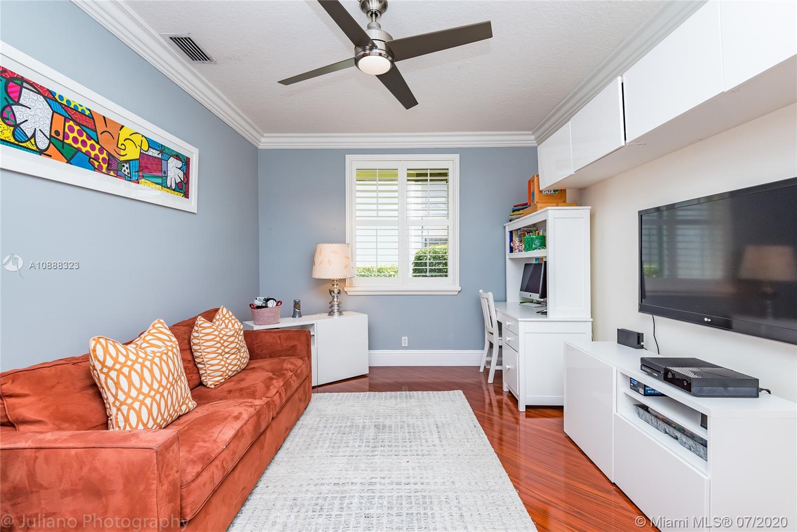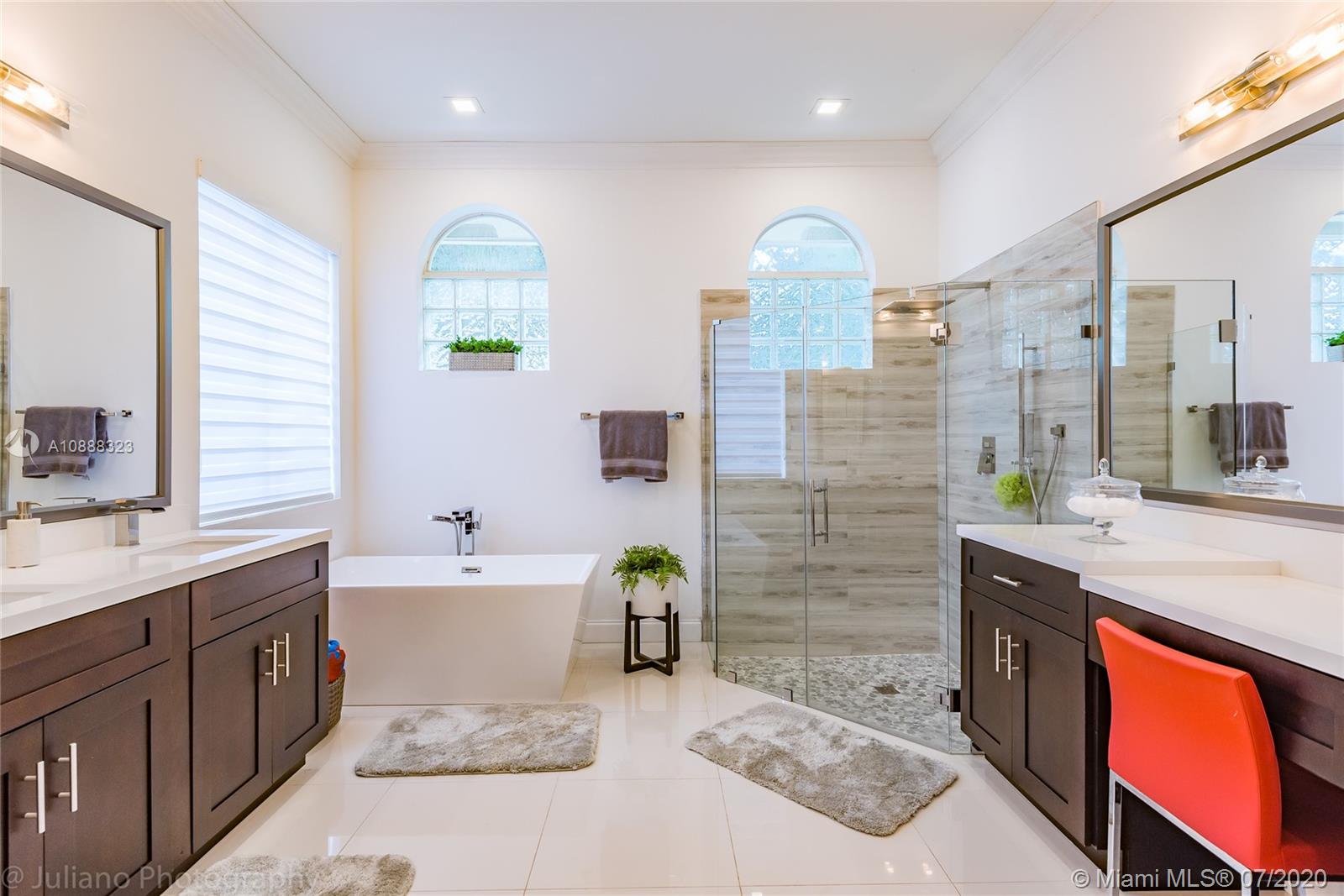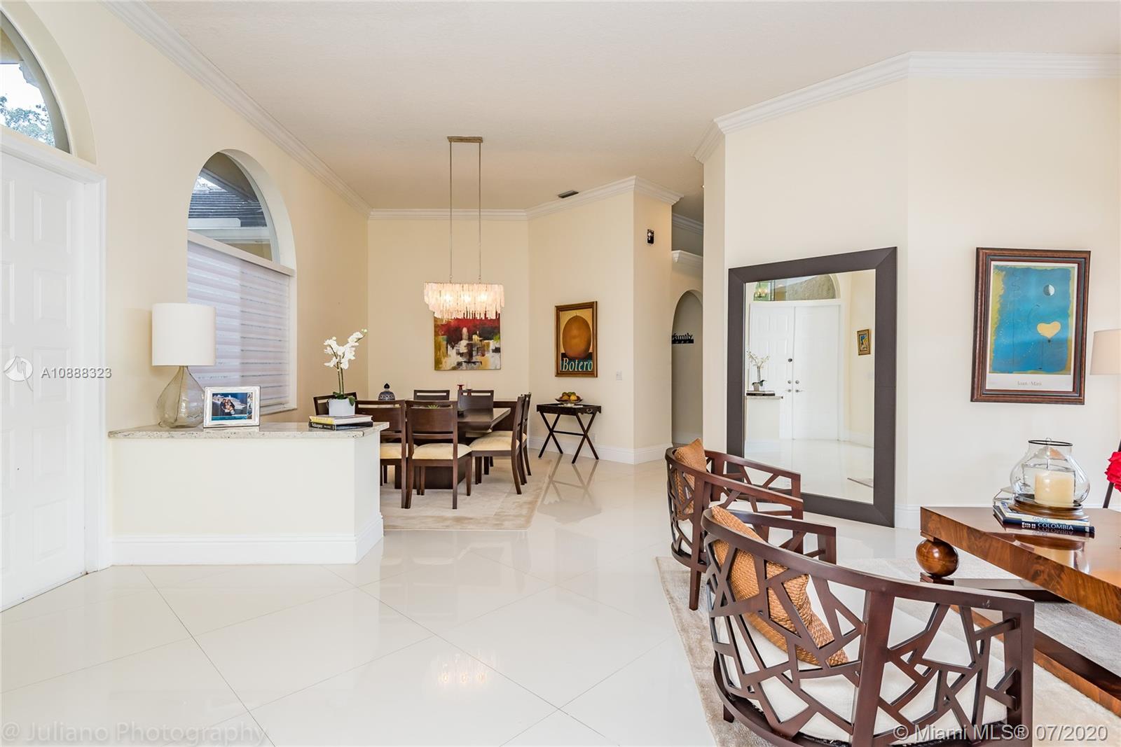 Custom built expanded Kingsley model features four spacious bedrooms plus an office and playroom with 3.5 baths. Enjoy lush tropical landscaping and 11.000 square foot lot fully fenced with expansive renovated salt pool with intelligent control trough your mobile, extended paver pool deck, summer kitchen under a gazebo and long unobstructed lake views with no neighbors behind. Master bedroom with soaring ceilings. Recently renovated Contemporary kitchen with white marble countertops, stainless steel appliances flows to family room with sliders to yard, neutral tones throughout. BRAND NEW custom master bath with vessel tub and oversized shower. This home shows bright and airy. Enjoy extensive crown moldings, marble floors, hurricane shutters, 3 car garage. Must See!