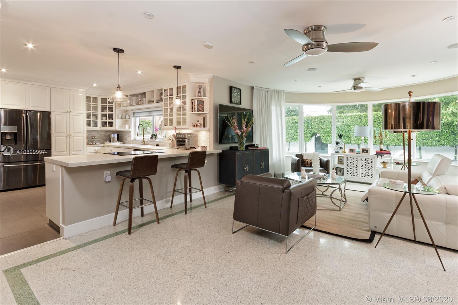 Fabulously updated 4BR-3BA NE Miami Shores pool home on quiet, tree-lined street. Beautiful curb appeal. Feel the grandeur as you enter the bright living room through a custom oversized front door. Master fitted with walk-in closet, french glass doors open to large pergola deck overlooking 42ft saline/heated pool. Updated designer baths. Large open concept kitchen&original art deco oval glass family room view the backyard. New Samsung appliances. Large windows stream natural light to every room. Oversized Backyard Oasis offers complete privacy with Brazilian Beauty Leaf trees wrapping the perimeter. 2 car garage; Impact windows & doors; Plantation shutters; Custom closets; Recessed lighting; Professionally landscaped. TURN KEY. Walking distance to downtown Shores. 5 minutes to I-95 or US1