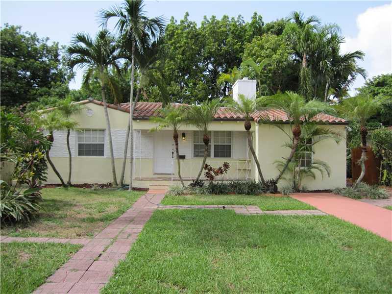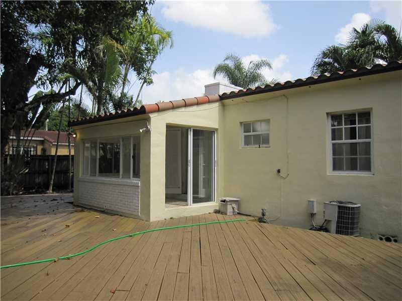 Perfect starter home in "Little Gables", located on a quiet, low traffic street. Huge back yard with fruit trees and a nice deck. Three bedrooms, two full baths. Wood and tile floors. Fireplace in the living room. Split floor plan. Storage shed in the bac k yard. Lots of natural light in the house. Mosaic tiled front porch.Easy access to mjor expressways, Downtown Miami, Brickell Avenue and airport. Newer roof. Excellent price for this neighborhood. FHA financing available.