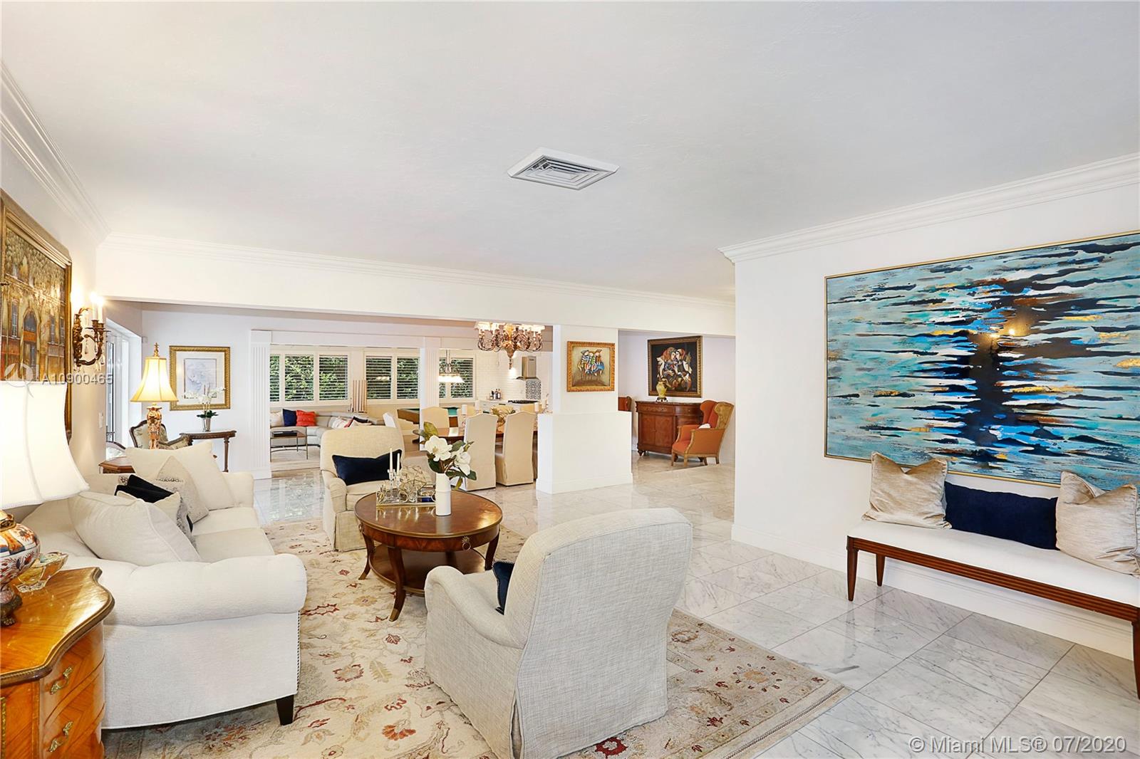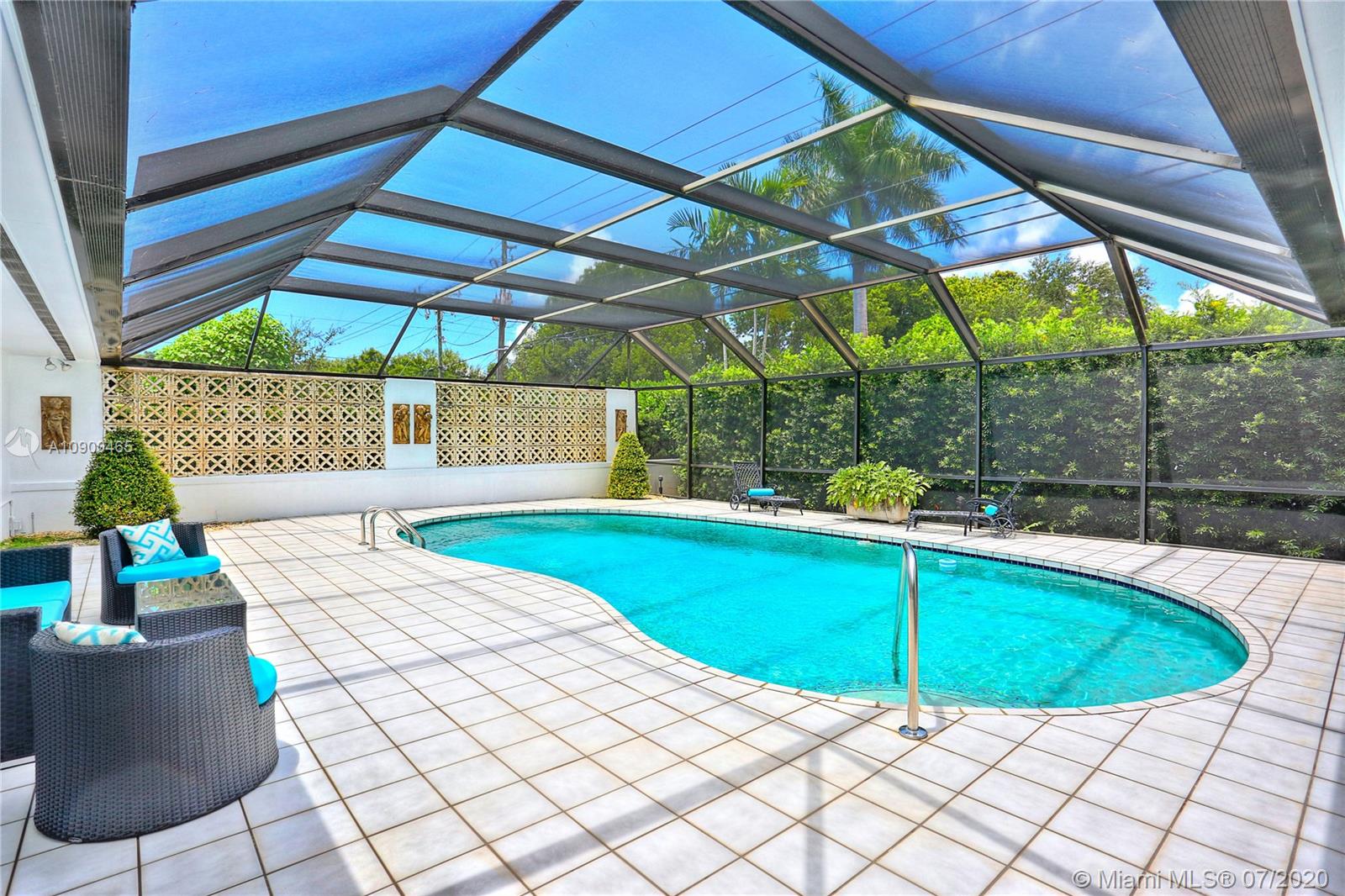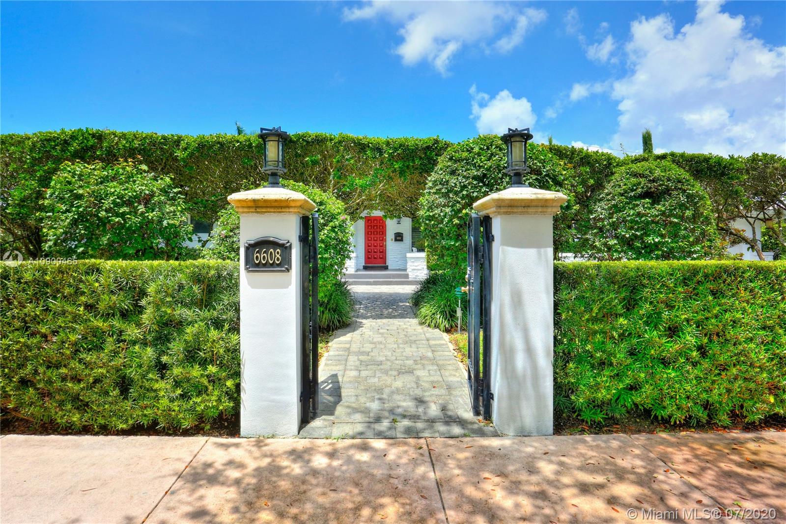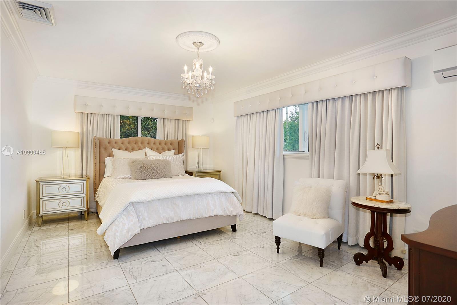 This elegant & spacious 3 bed/3 bath gated home with pool is nestled in South Coral Gables & sits on a 14,300 sq ft corner lot. The Master Suite is equipped with an oversized walk-in closet and dressing room which was previously used as a 4th bedroom. This home has many great features from an ample circular driveway, a grand dining room with high ceilings leading to the family room that's equipped with a summer kitchen. The beautiful eat-in kitchen features Viking appliances, quartz countertops, custom-made wood cabinets & a 48 dual gas range. In addition, the home has a large home office/media room with a bar. Other features include impact windows & doors, a 1-car garage, marble floors throughout & a screened-in pool. This is a wonderfully updated home perfect for relaxing & entertaining.