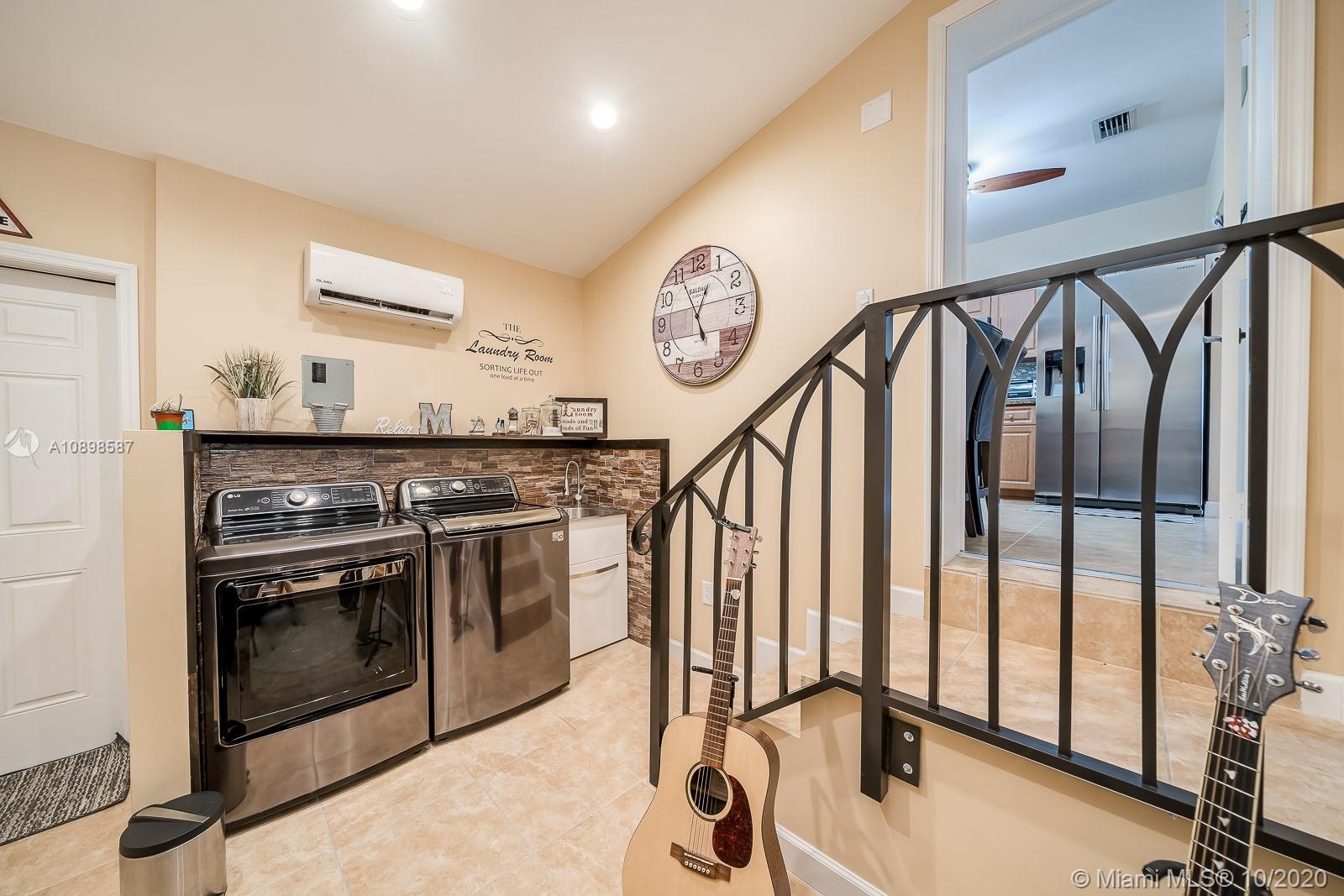 Are you looking for move in ready? You have it all right here and more! Beautifully maintained 3 bedroom 2 bath with bonus man cave! Large tiles throughout, updated kitchen with SS appliances and granite counter tops with decorative mosaic backsplash. Updated guest bath with floor to ceiling tile and mosaic accent. Additional family room perfect for entertaining with built in speakers and tv flushed with wall. Enjoy the covered patio that is cable ready to hook up to your TV! Completely fenced in property, beautifully landscaped with lush tropical landscaping. Front of the property is fenced with a wrought iron fence and automatic gate. AC 2015, Roof 2007