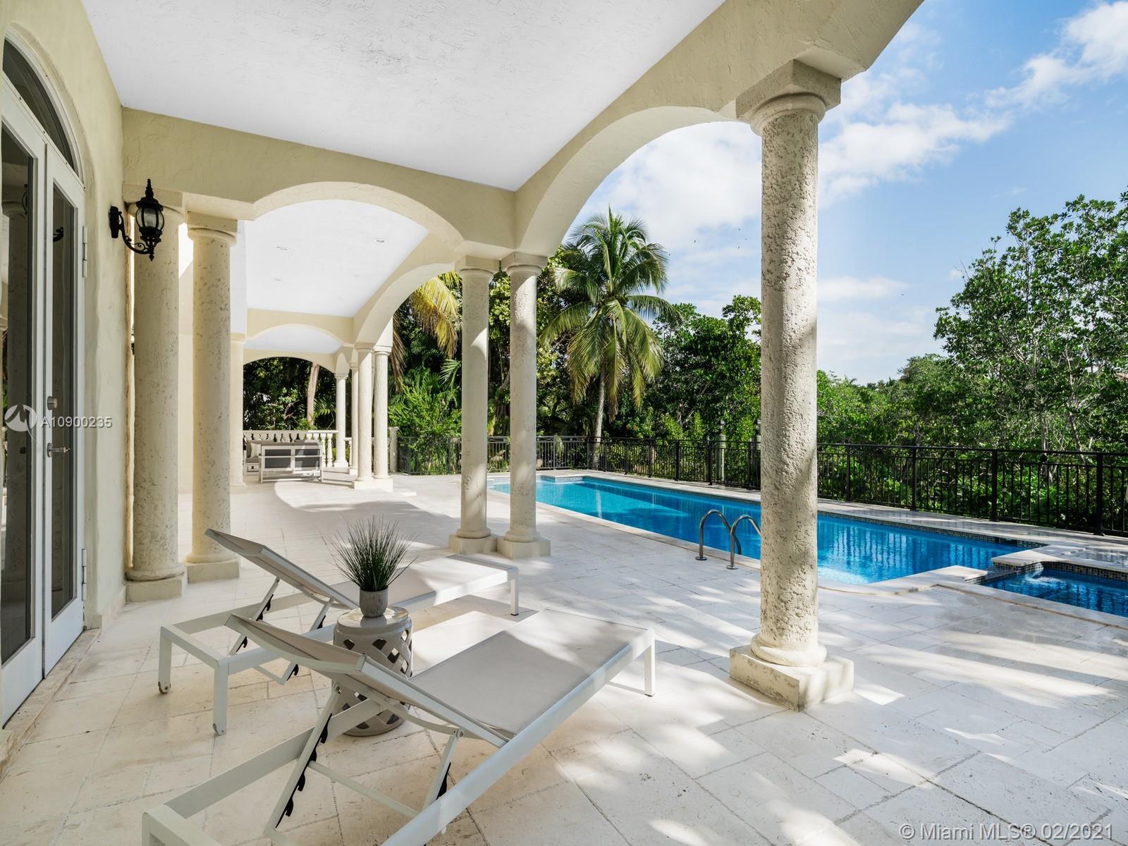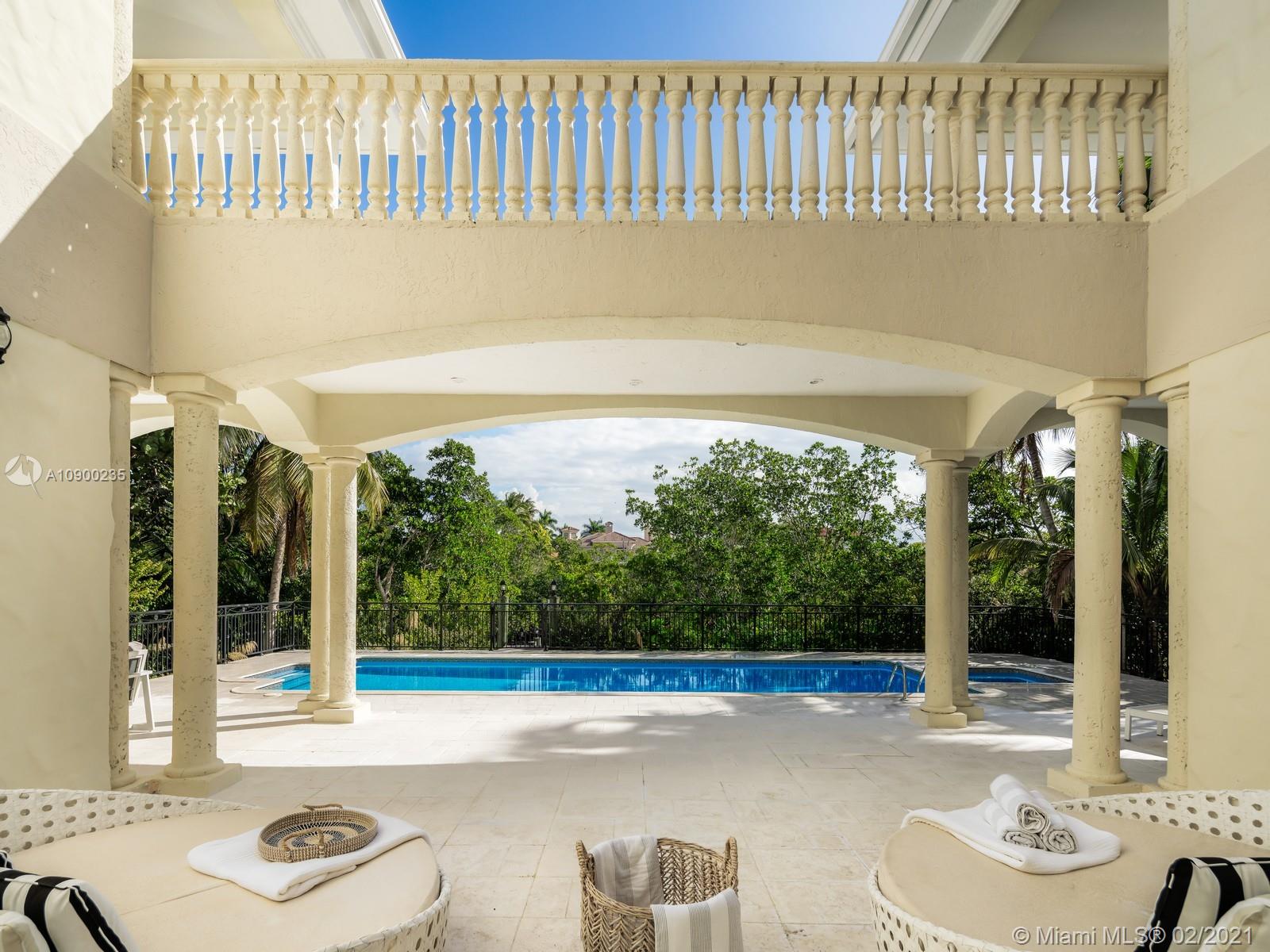 Gated and walled-in, this Islands of Cocoplum waterfront renovated estate has a grand staircase upon entry with dramatic volume ceilings. Brand-new marble floors flow throughout the living areas. Light-filled with high-impact windows. En-suite bedroom/office downstairs. A chic fireplace in the living room plus adjoining family room with a built-in bar and Cabana bath offer the perfect setting for relaxing or entertaining. Walk right out to the luxurious patio, expansive pool and covered porch for some sunny South Florida living. Split floor plan upstairs with the master on one side and 3 en-suite bedrooms on the other. The master bathroom offers two separate water closets. Separate maid’s wing downstairs provides privacy adjacent to the laundry room and three-car garage.