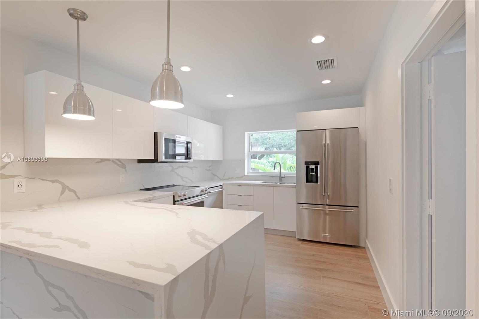 A picturesque tree-lined street leads you to this charming, completely renovated 2,265 sqft home replete with thoughtful, top-of-the-line finishes in a spectacular Coral Gables location. Upgrades include a gourmet kitchen with gorgeous quartz countertops and new appliances, custom lighting fixtures, elegant marble bathrooms, high-impact windows and is equipped with Nest Smart Home thermostat control. Tasteful "Barn-style" doors open to oversized and bright living spaces, 4 bedrooms (3 of them with custom closets) and 3 full bathrooms. Master bedroom suite with walk in closet and extra huge closet. *Bedrooms as per owner*