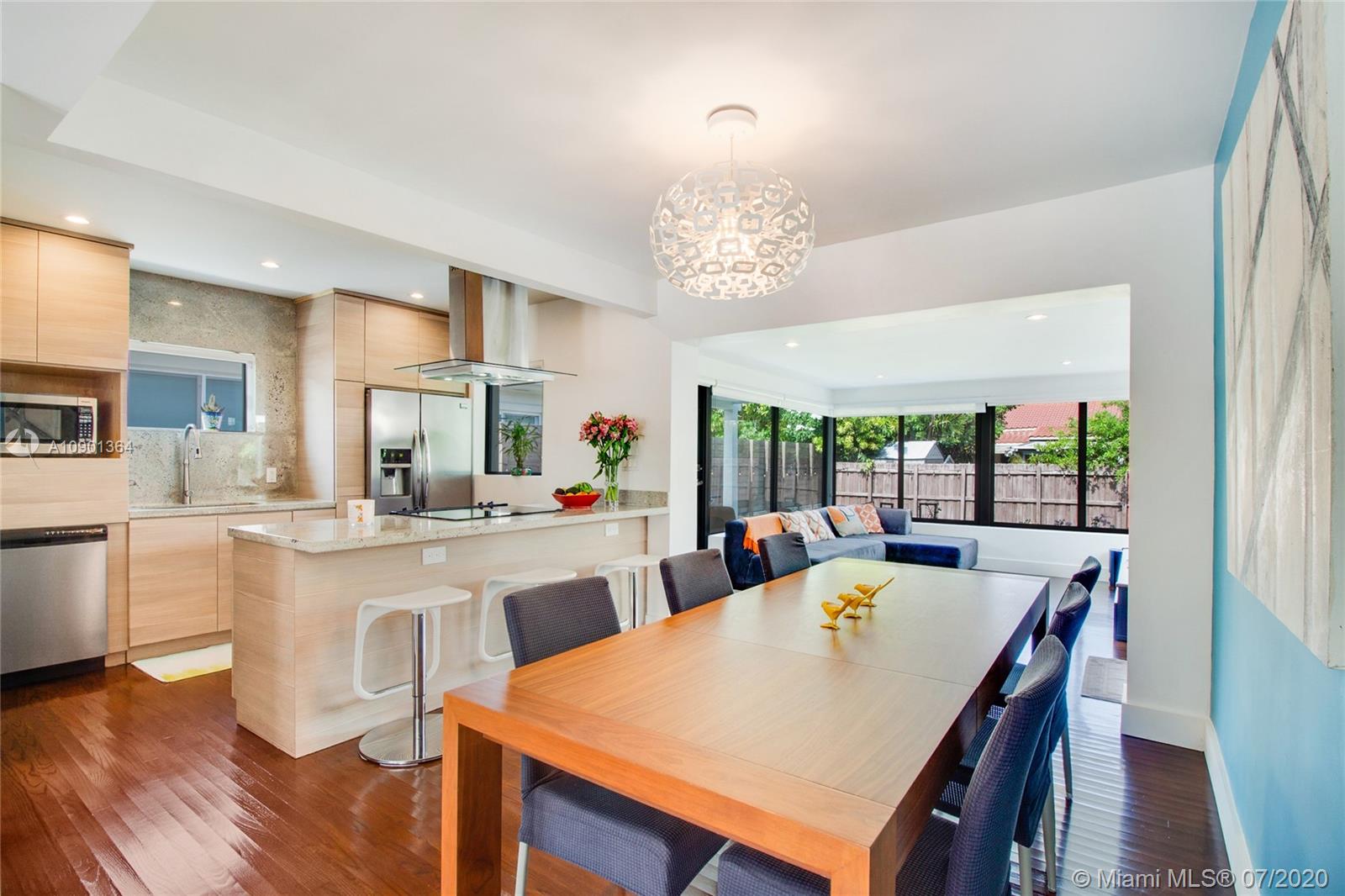 Rare Surfside gem - gorgeous, completely renovated house just two blocks to the ocean. This sunny and bright house has 3 bedrooms, 2 beautiful bathrooms, and a garage. The family areas flow together with an open, modern kitchen with stainless steel appliances at the center. The glass Florida/family room at the back of the house opens to a large patio and a huge fenced backyard with plenty of space for a pool. The house has dark wood floors and hurricane-impact windows/doors throughout. There is a laundry and storage room adjacent to the kitchen. The house was gut-renovated about 6 years ago with permits. Walking distance to the beach, Bal Harbour Shops, Four Seasons Surf Club & downtown Surfside. Zoned for A rated Bay Harbor schools.