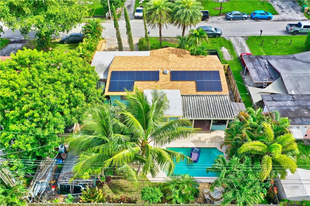 Beautifully remodeled Davie home with pool! Tucked away in a quiet street with no HOA, this 3 bed and 2 bath home has recent upgrades that will keep your insurance and electric bills LOW. Complete roof replacement with permit completed in 2018. Solar panels and updated electrical, A/C replaced (2018), impact windows and hurricane shutters on all windows. Brand new tile floors in laundry room and one of the bedrooms just completed. Master bathroom was extensively renovated and expanded with separate rainfall shower and oversized spa jacuzzi tub. Recessed lighting and custom color changing lights featured in the living room ceiling make this home truly one a kind. Backyard tropical oasis with covered patio & built-in bar perfect for entertaining. Storage sheds, 2nd fridge & canopy included!