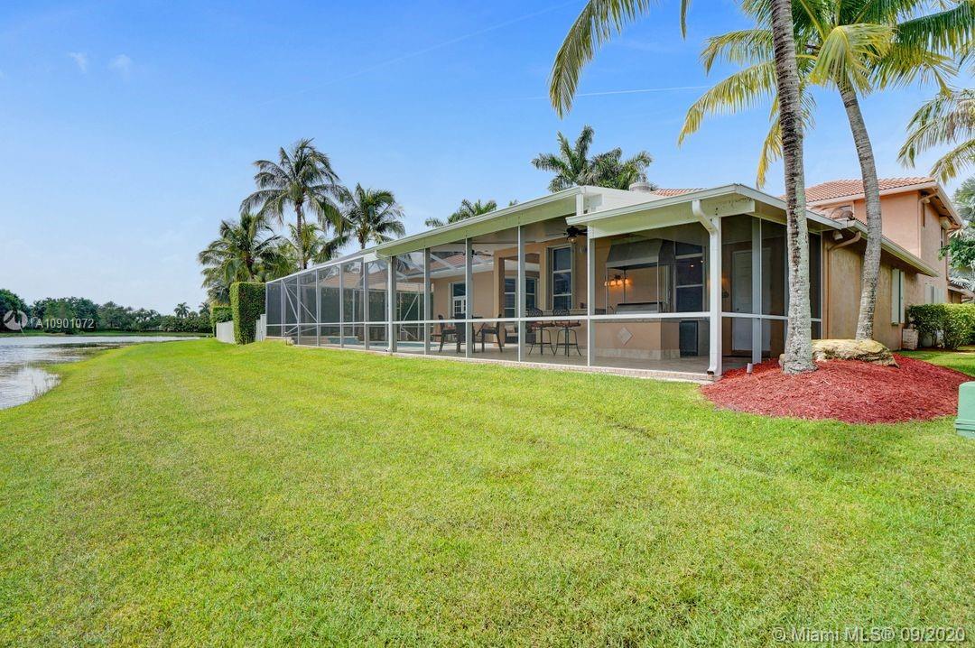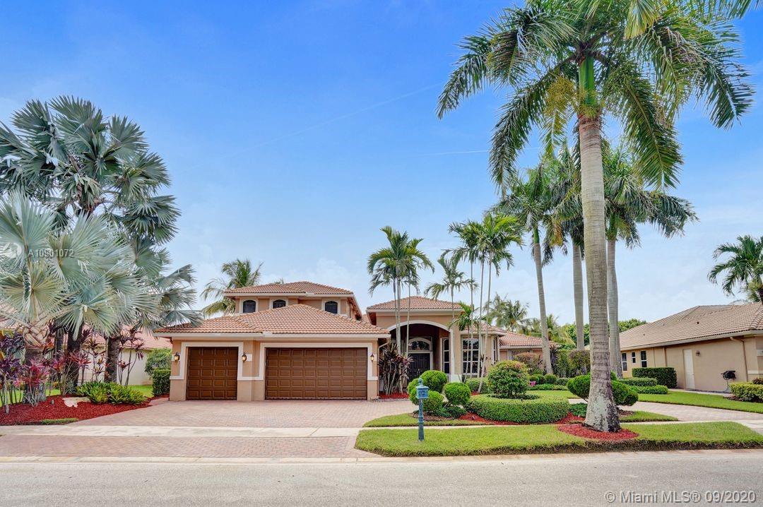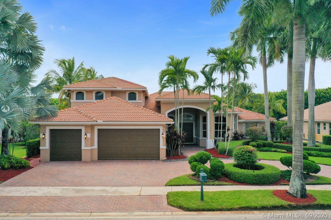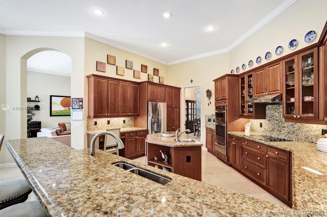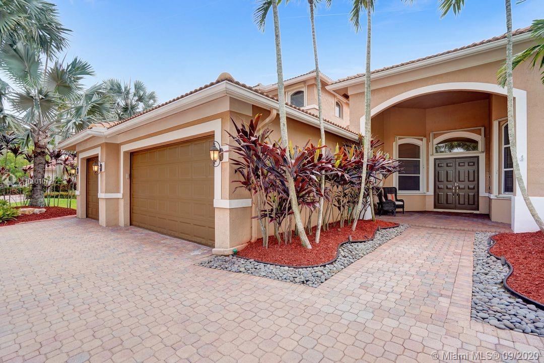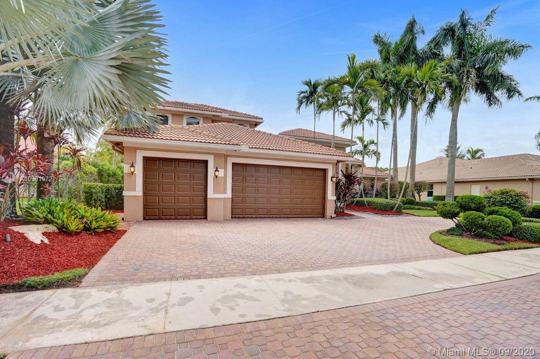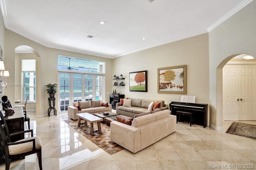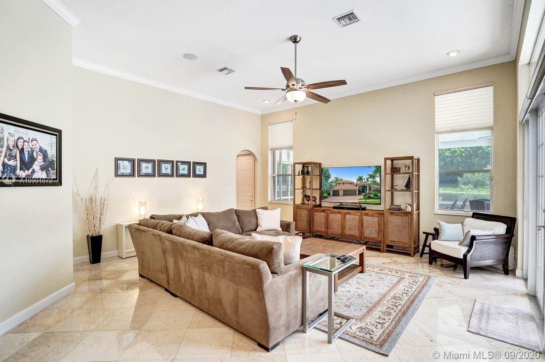 Elegant Mystic Model located in the prestigious gated community of Victoria Isle at Weston Hills Country Club. This sprawling property is placed perfectly amidst a royal palm tree-lined street. Enjoy 5 generous bedrooms plus den and office Attention to every detail in this meticulously maintained home. Marble floors flow throughout living areas. Chefs delight kitchen with wood cabinets, granite counters, center island, and double ovens. Extensive crown moldings. Commercial built-in grill with expansive covered and screened patio. Travertine patio with long unobstructed lake views to the berm. Walk to community park. Lushly landscaped, oversized lot with grand paver circular driveway, full accordion protection. 3 car garage currently houses additional full bed/bath.