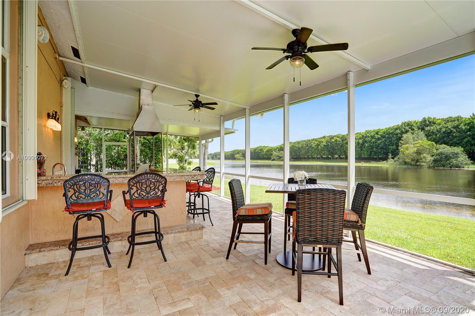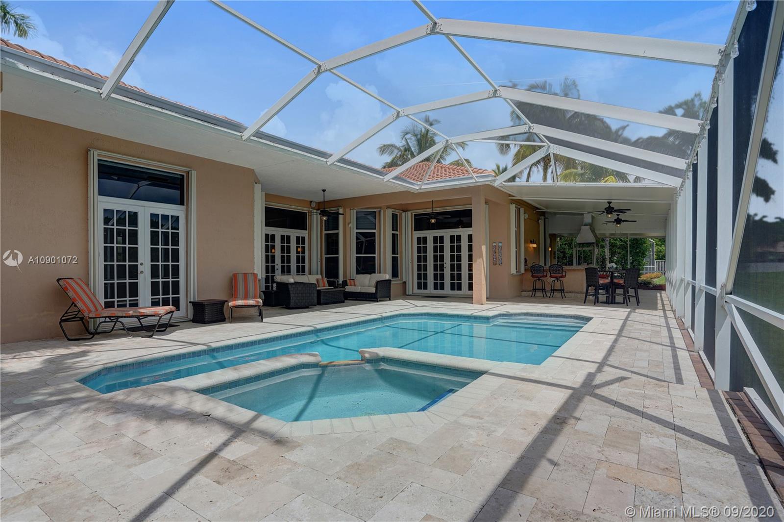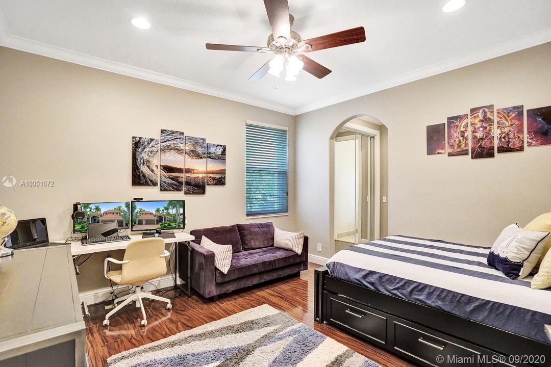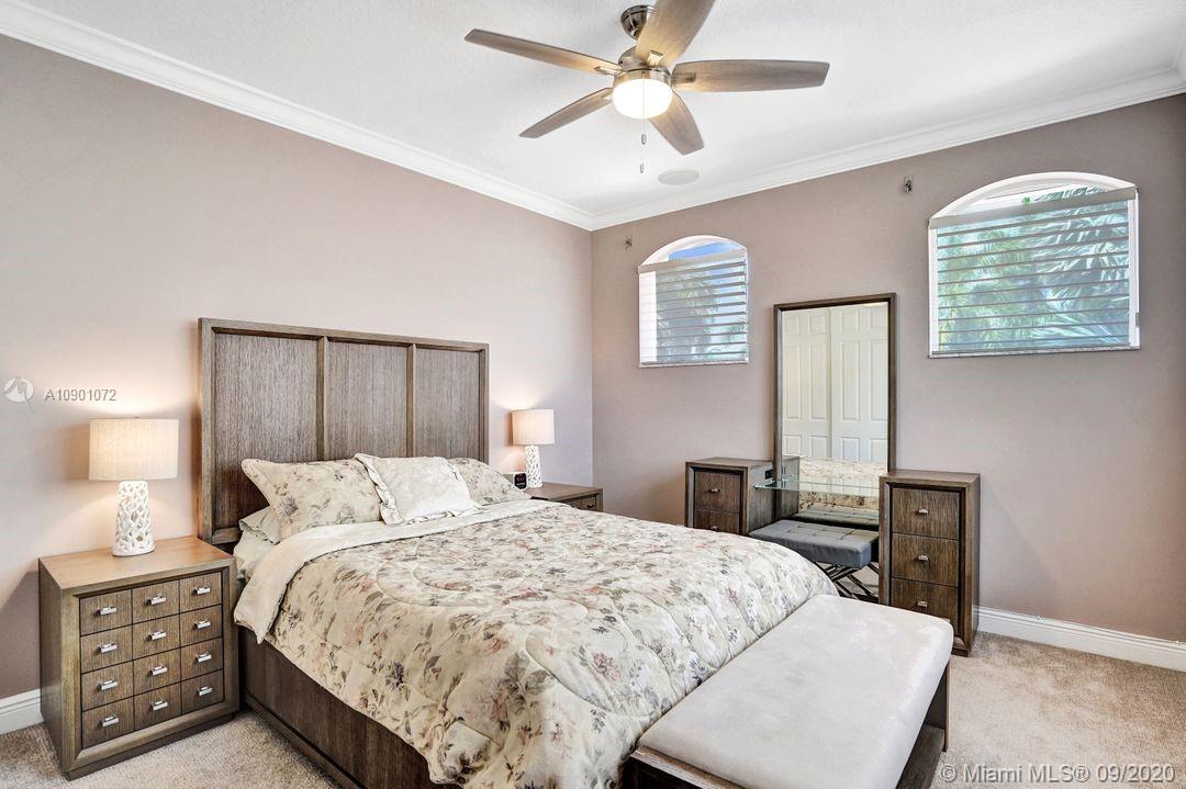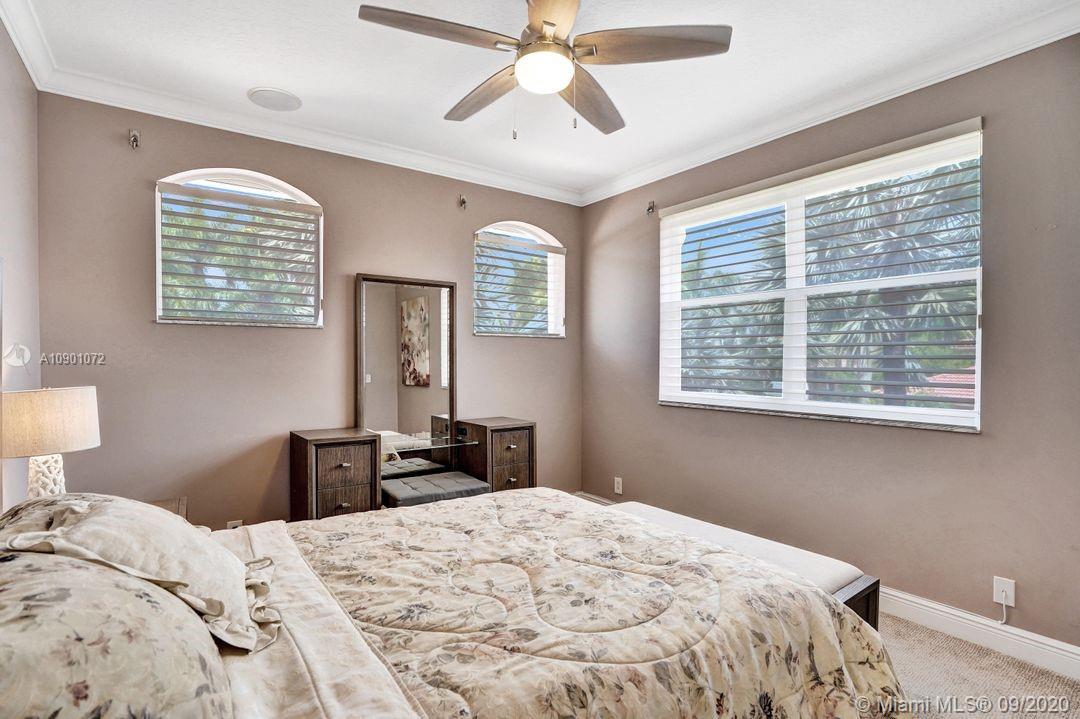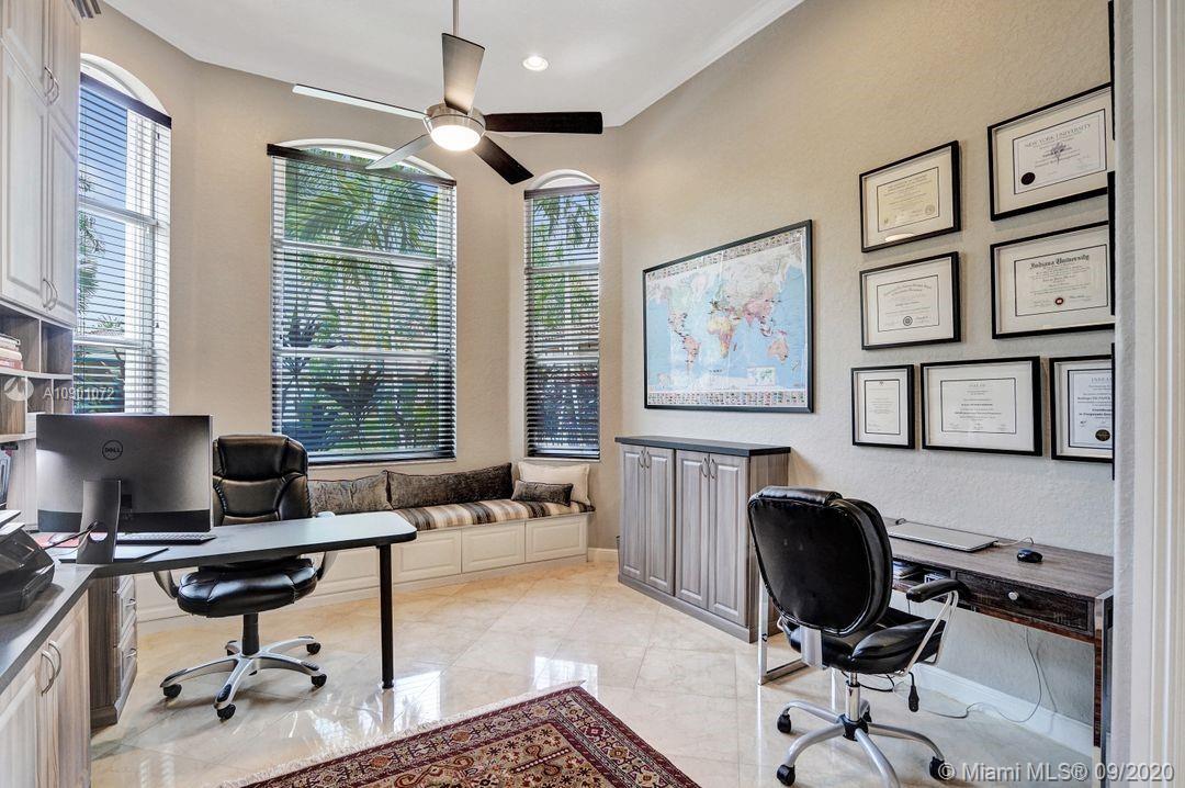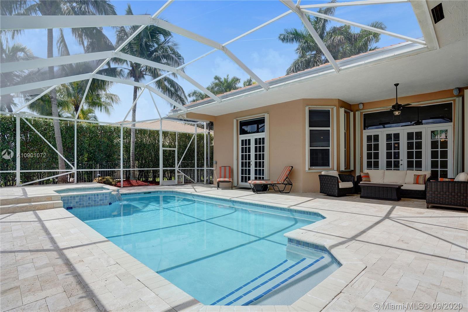 Elegant Mystic Model located in the prestigious gated community of Victoria Isle at Weston Hills Country Club. This sprawling property is placed perfectly amidst a royal palm tree-lined street. Enjoy 5 generous bedrooms plus den and office Attention to every detail in this meticulously maintained home. Marble floors flow throughout living areas. Chefs delight kitchen with wood cabinets, granite counters, center island, and double ovens. Extensive crown moldings. Commercial built-in grill with expansive covered and screened patio. Travertine patio with long unobstructed lake views to the berm. Walk to community park. Lushly landscaped, oversized lot with grand paver circular driveway, full accordion protection. 3 car garage currently houses additional full bed/bath.