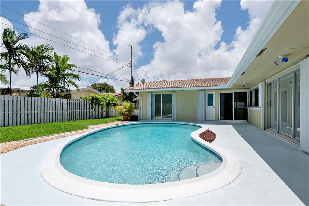 "NEW PRICE" FOR THIS IMPERIAL POINT BEAUTY !! ENJOY THIS 2185 SQ FT HOME * INTERIOR LOT *3 BEDROOMS 2 BATHS *SPLIT BEDROOM PLAN * TILE FLOORS THROUGHOUT *WAIT TILL YOU SEE THE LARGE FAMILY ROOM OFF KITCHEN (24x13) ***BOTH FAMILY ROOM & LIVING ROOM OPEN TO ENDLESS POOL VIEWS & NATURAL LIGHT *ENJOY YOUR SPARKLING POOL & ENTERTAINING AREAS FOR YOUR POOL PARTIES & BBQ * NEWER AC*NEW ROOF 2005*2 CAR GARAGE *HURRICANE PROTECTION FOR WINDOWS & DOORS* WALK TO PARK & RESTAURANTS * 2 MILES TO BEACH * SIDEWALKS *