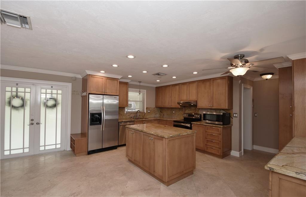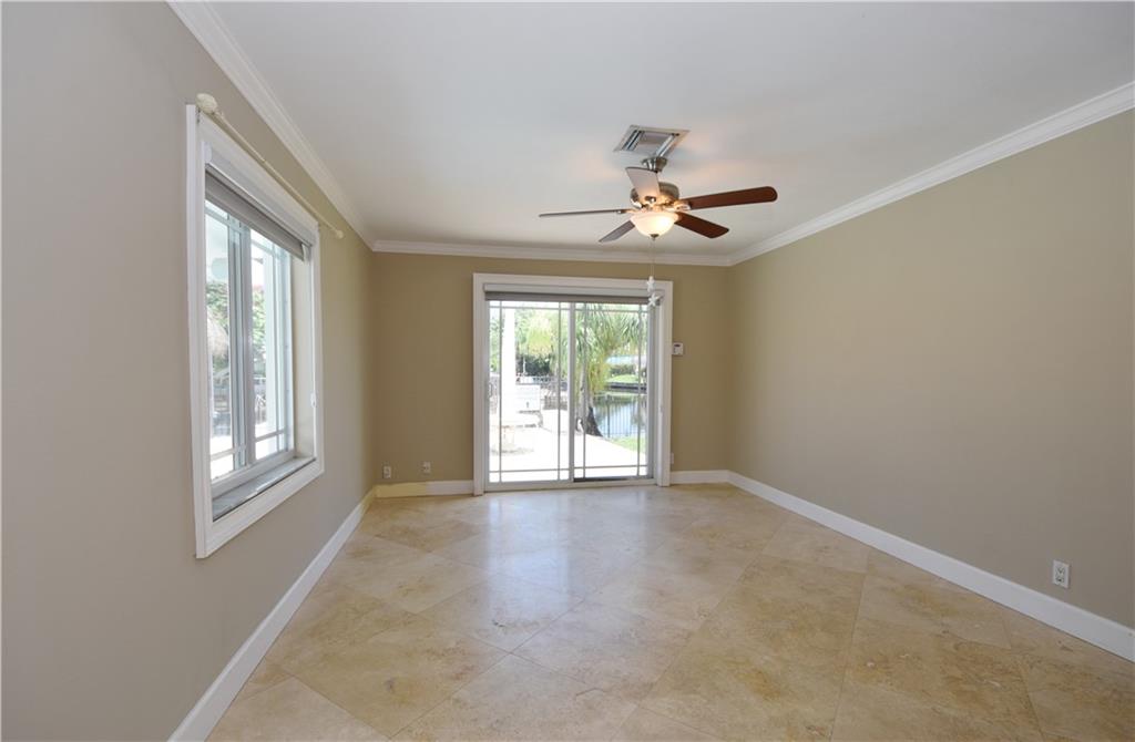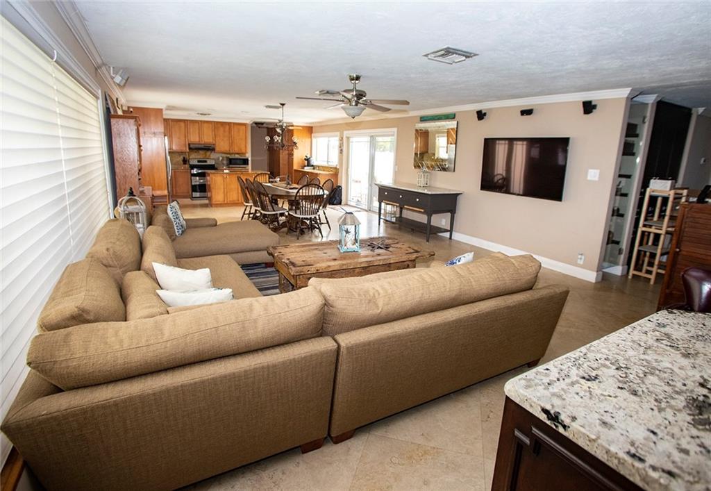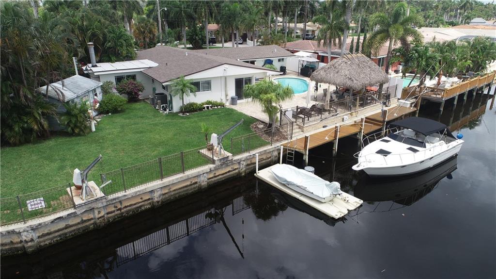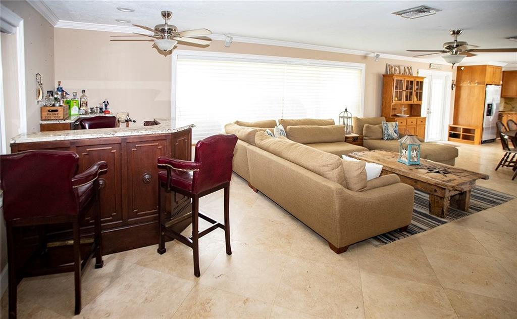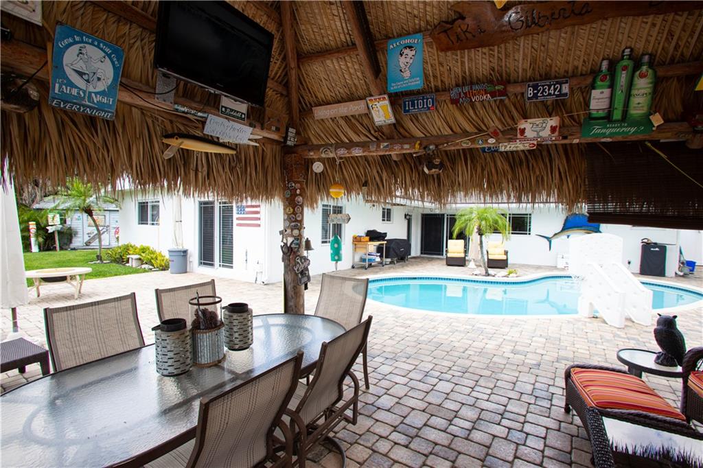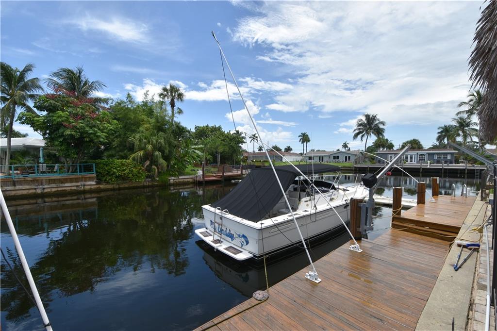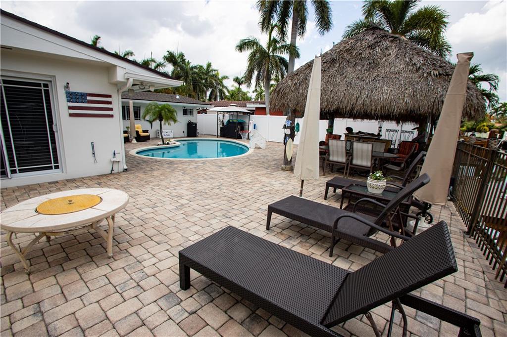 A highly updated waterfront pool home located in a cul-de-sac! A rare 4 bed/3 bath home, oversized corner lot of 10,000’+ & 130’+ of water frontage, new 51’ dock & well maintained seawall. Open concept floor plan with a remodeled kitchen with island, wood cabinets, granite counter tops, SS appliances & enclosed laundry area. Neutral marble flrs throughout, remodeled baths, separate office area with built-ins & lg bar are but some of the great features! Surround sound inside & out with a 20’x10’ tiki hut, pavered patio, salt water pool recently re-marcited with new heater, new PVC fence & lg yard! 2 AC units, master has walk in closet, all impact windows & doors, new roof with warranty, new gutters and more... Freshly painted and ready for you to move in!