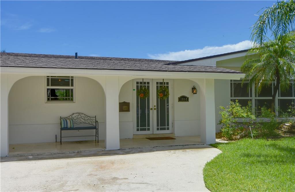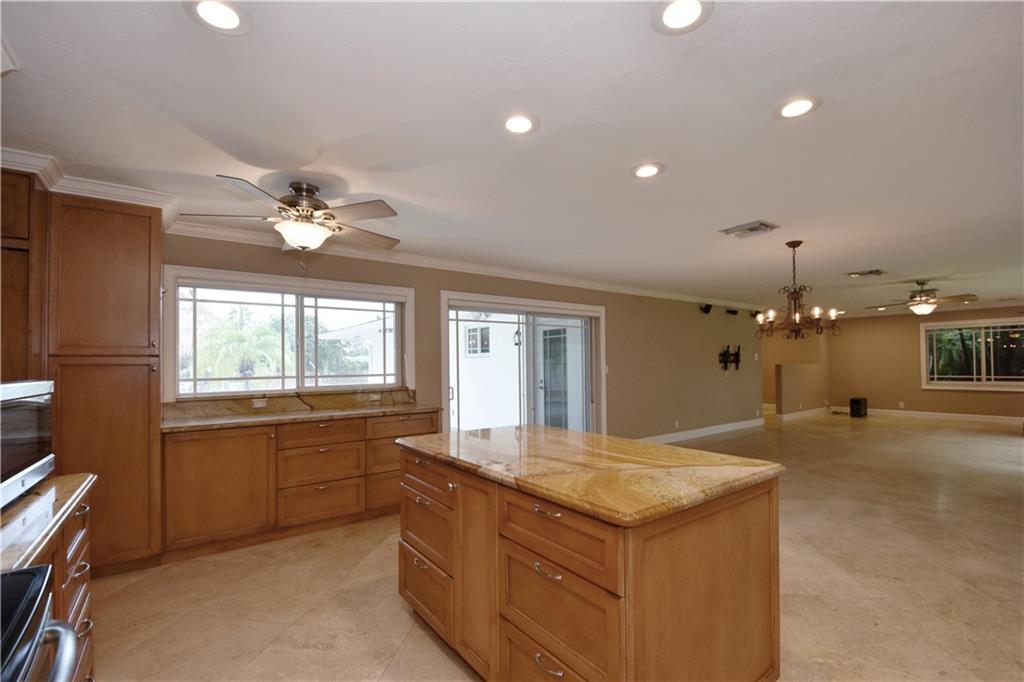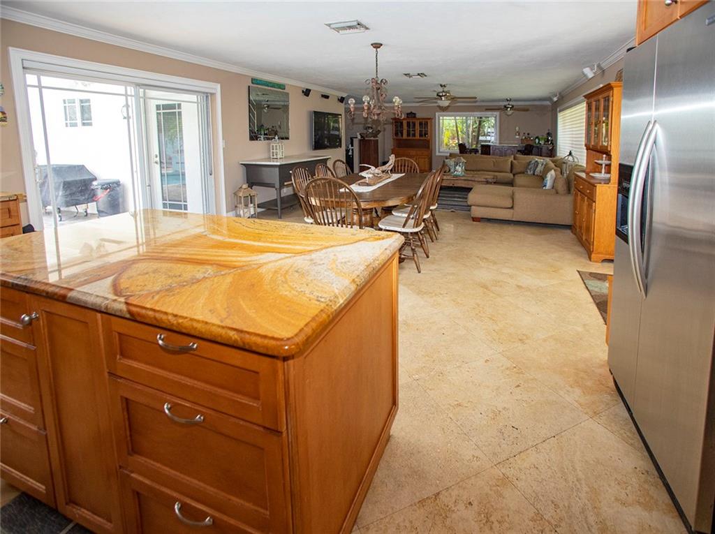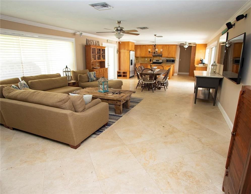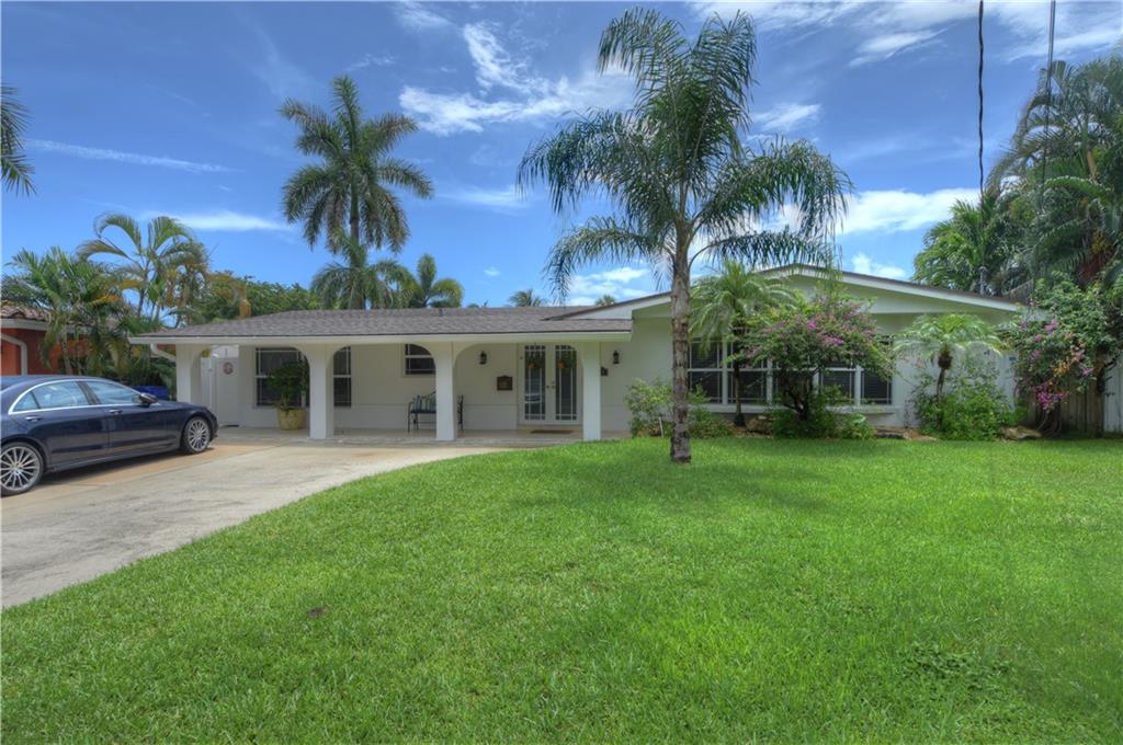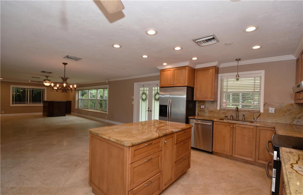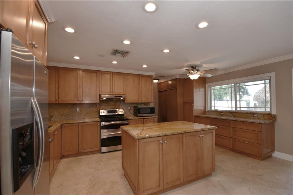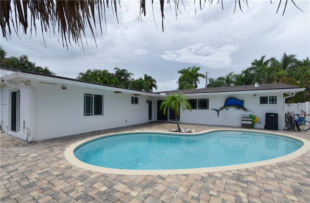 A highly updated waterfront pool home located in a cul-de-sac! A rare 4 bed/3 bath home, oversized corner lot of 10,000’+ & 130’+ of water frontage, new 51’ dock & well maintained seawall. Open concept floor plan with a remodeled kitchen with island, wood cabinets, granite counter tops, SS appliances & enclosed laundry area. Neutral marble flrs throughout, remodeled baths, separate office area with built-ins & lg bar are but some of the great features! Surround sound inside & out with a 20’x10’ tiki hut, pavered patio, salt water pool recently re-marcited with new heater, new PVC fence & lg yard! 2 AC units, master has walk in closet, all impact windows & doors, new roof with warranty, new gutters and more... Freshly painted and ready for you to move in!