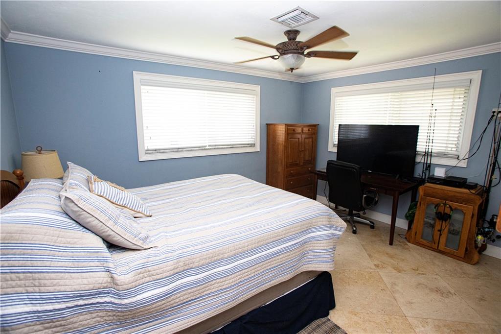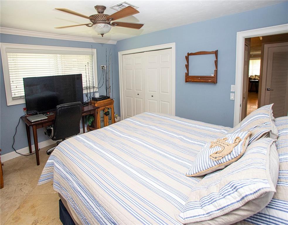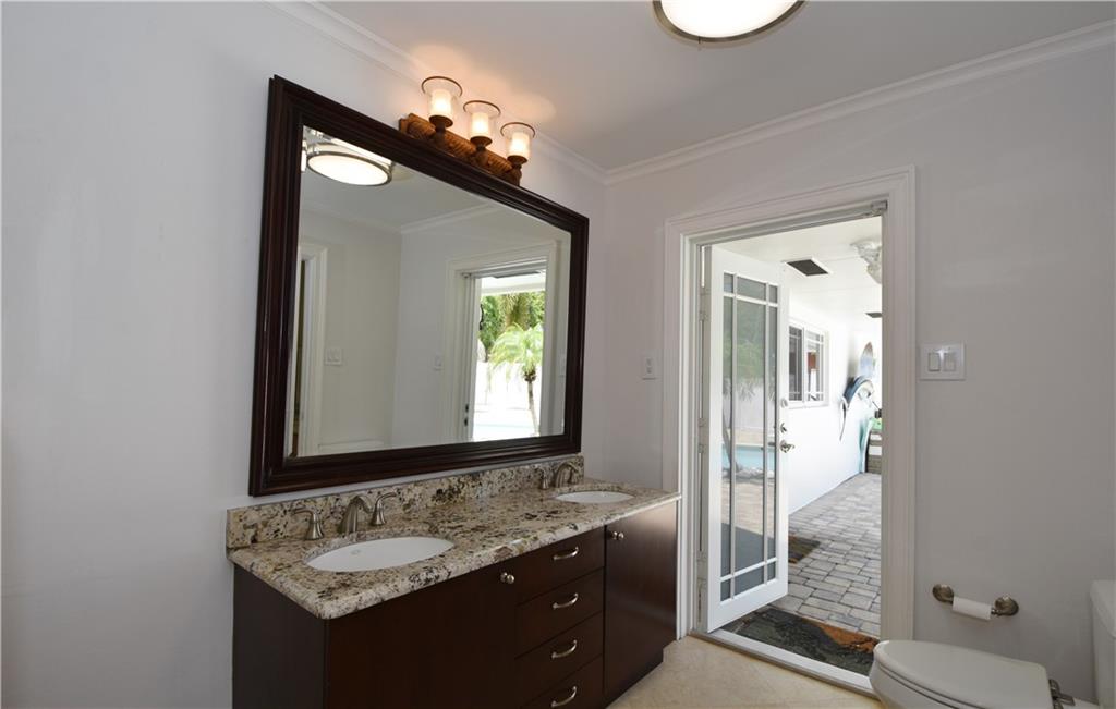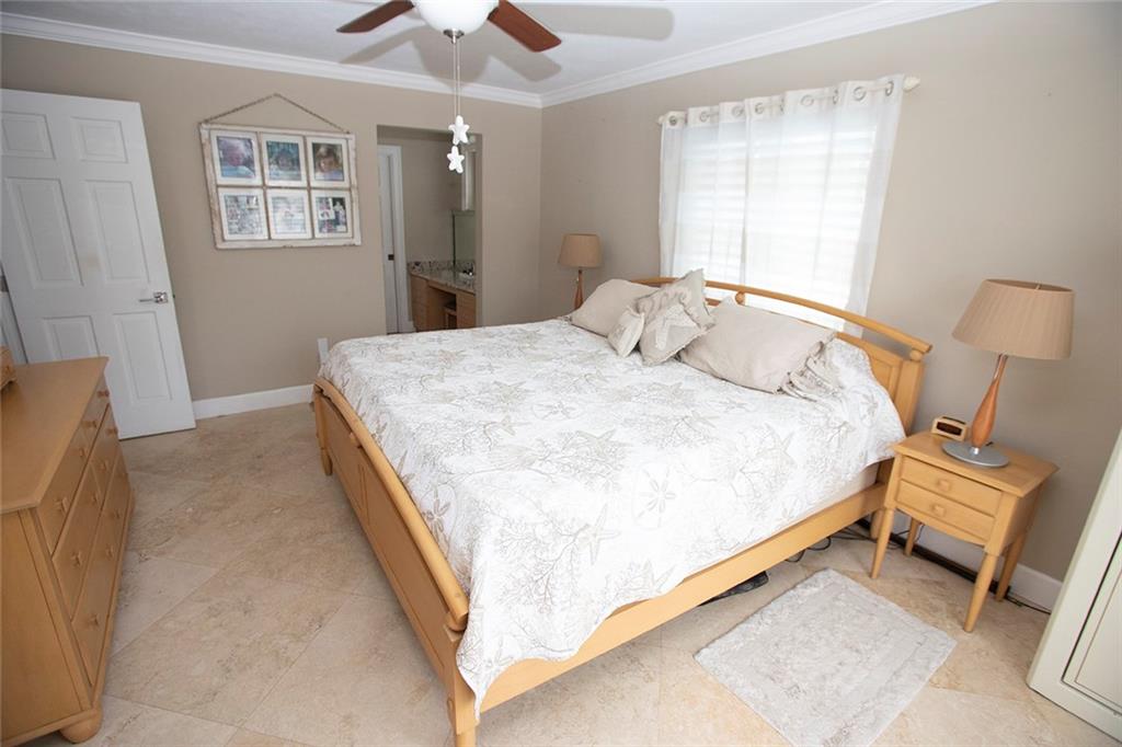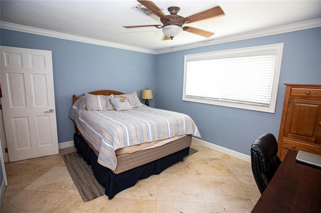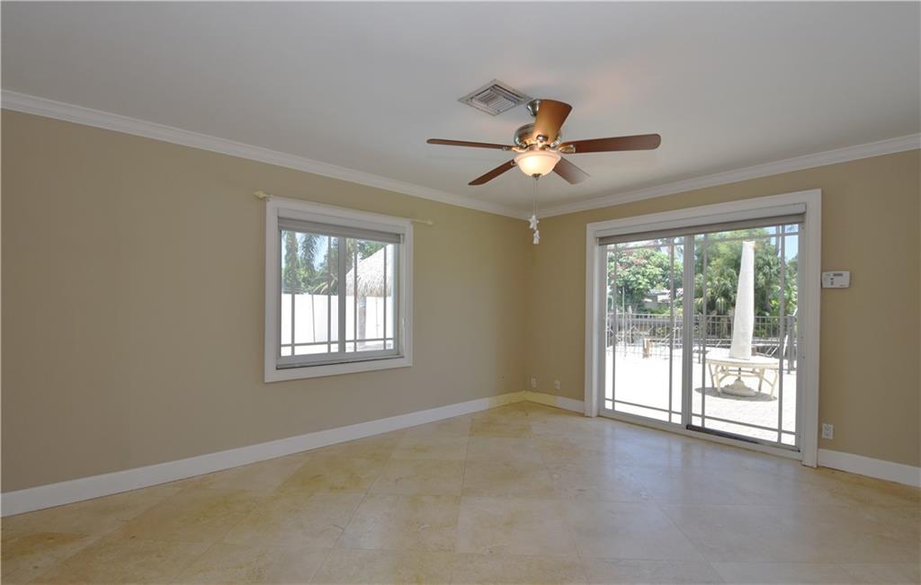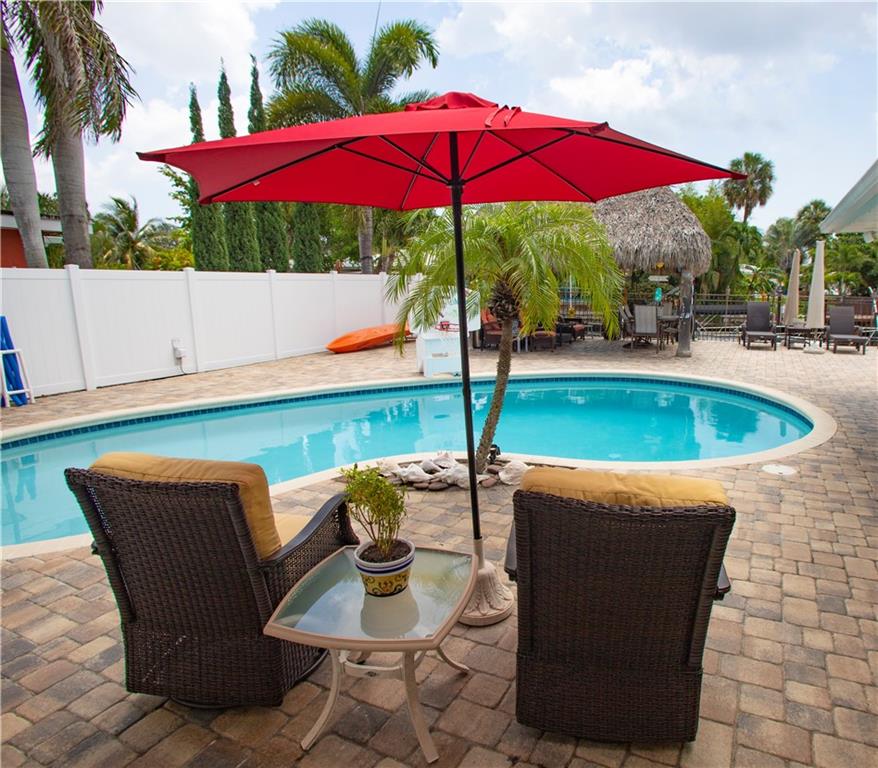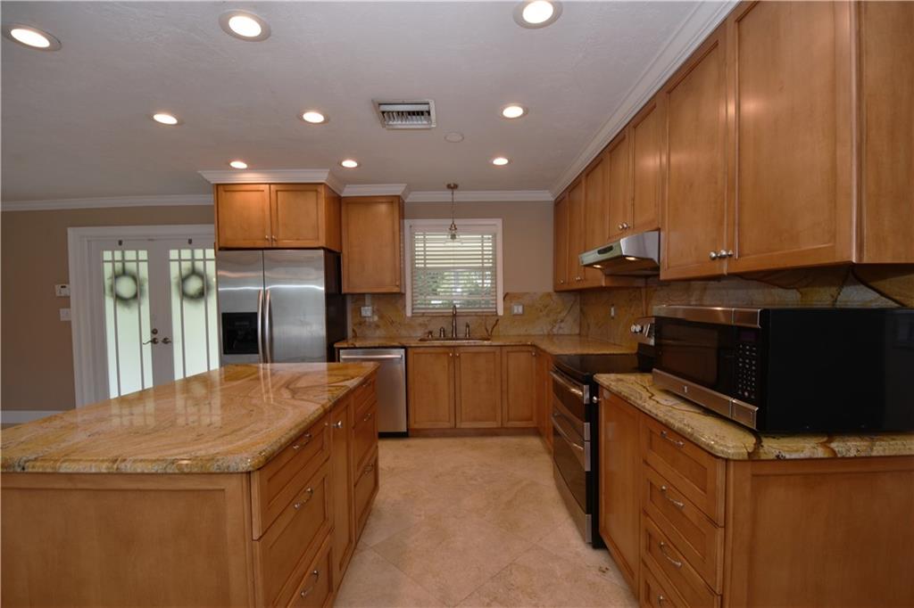 A highly updated waterfront pool home located in a cul-de-sac! A rare 4 bed/3 bath home, oversized corner lot of 10,000’+ & 130’+ of water frontage, new 51’ dock & well maintained seawall. Open concept floor plan with a remodeled kitchen with island, wood cabinets, granite counter tops, SS appliances & enclosed laundry area. Neutral marble flrs throughout, remodeled baths, separate office area with built-ins & lg bar are but some of the great features! Surround sound inside & out with a 20’x10’ tiki hut, pavered patio, salt water pool recently re-marcited with new heater, new PVC fence & lg yard! 2 AC units, master has walk in closet, all impact windows & doors, new roof with warranty, new gutters and more... Freshly painted and ready for you to move in!