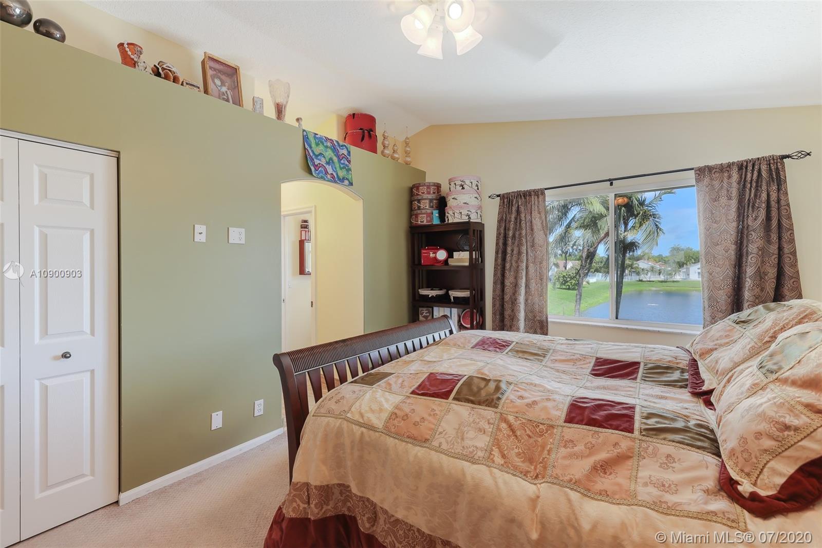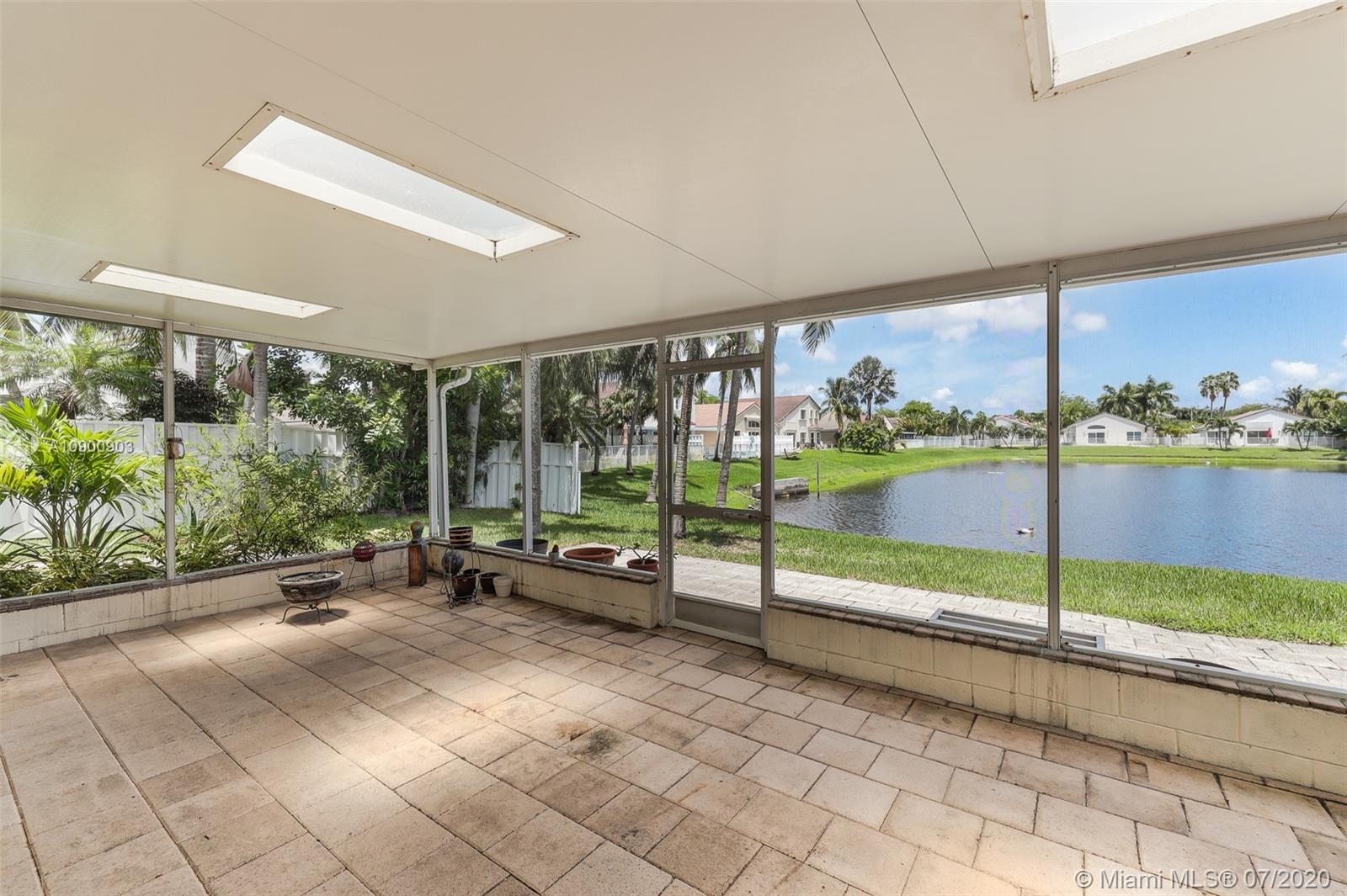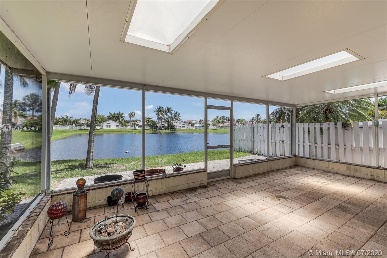 Welcome home & relax in this unique Mahogany model on a lake in Oakridge. This house is a true 3/3.5 bathroom house. The extra bathroom was built with an approved permit & is a convenient feature for all families, large or small. The builder moved the location of the kitchen so it’s closer to the garage entrance giving more space for a large great room for the dining, family & living rooms, all of which also face the lake. The master suite also features a view of the lake, a large walk-in closet, separate Roman tub & shower & dual sinks. The back patio faces East, inviting you to enjoy the relaxing lake view & breeze thru out the year. Accordion shutters on all windows but 2 that feature electric shutters (motors currently malfunction).