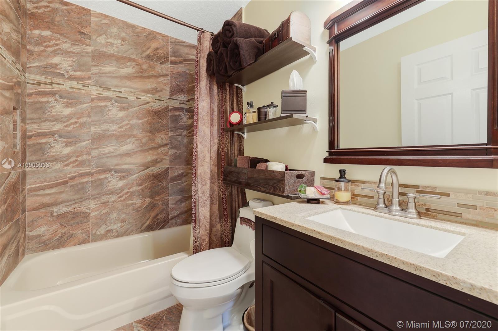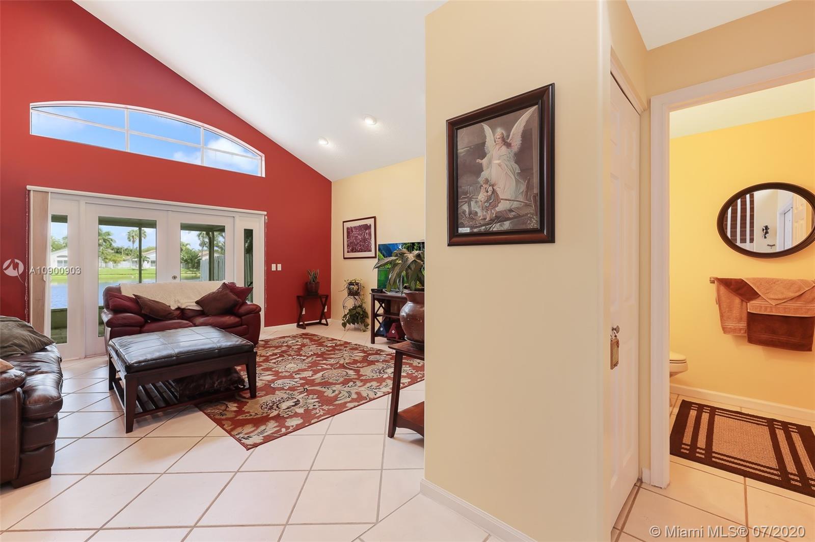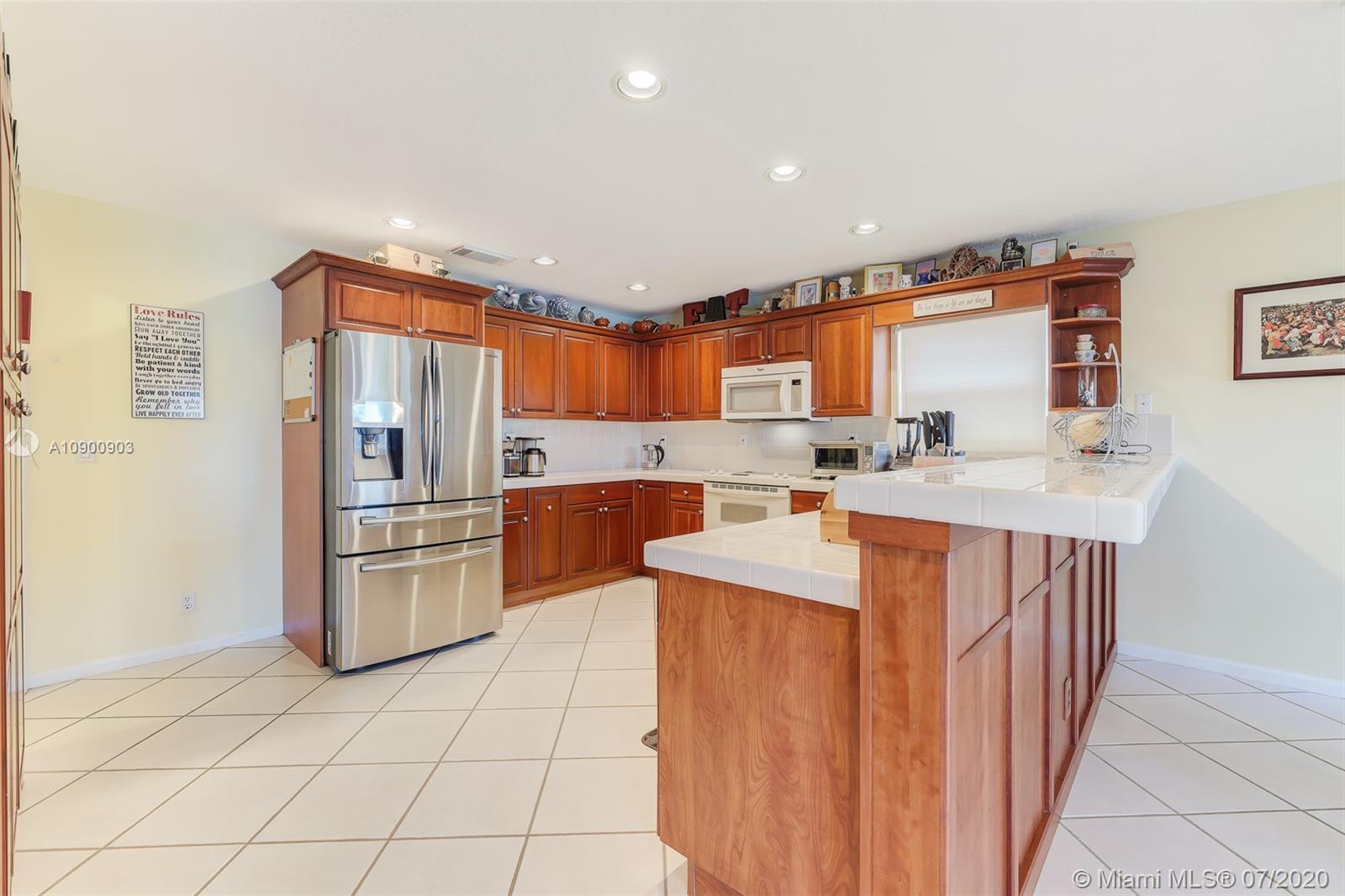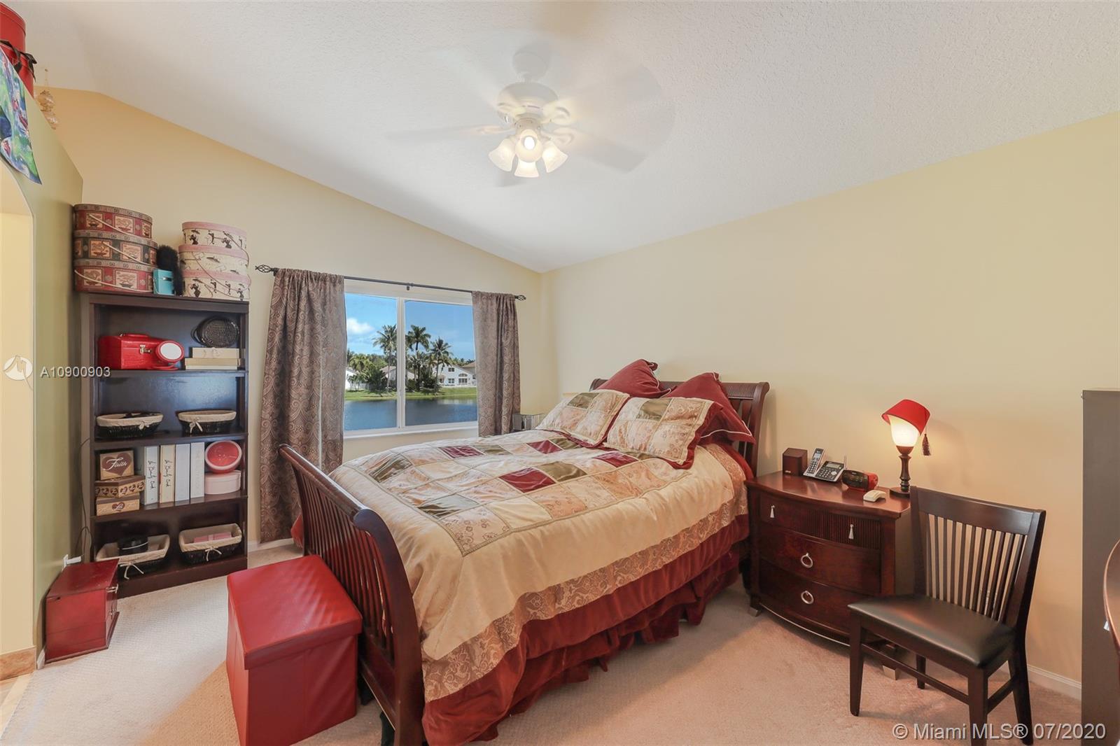 Welcome home & relax in this unique Mahogany model on a lake in Oakridge. This house is a true 3/3.5 bathroom house. The extra bathroom was built with an approved permit & is a convenient feature for all families, large or small. The builder moved the location of the kitchen so it’s closer to the garage entrance giving more space for a large great room for the dining, family & living rooms, all of which also face the lake. The master suite also features a view of the lake, a large walk-in closet, separate Roman tub & shower & dual sinks. The back patio faces East, inviting you to enjoy the relaxing lake view & breeze thru out the year. Accordion shutters on all windows but 2 that feature electric shutters (motors currently malfunction).