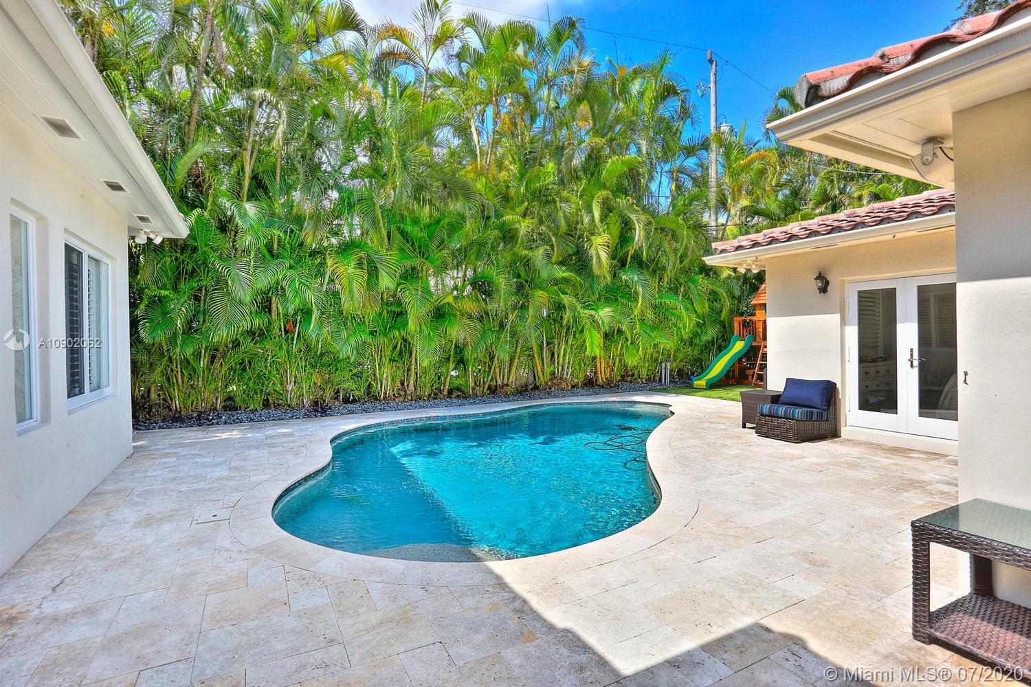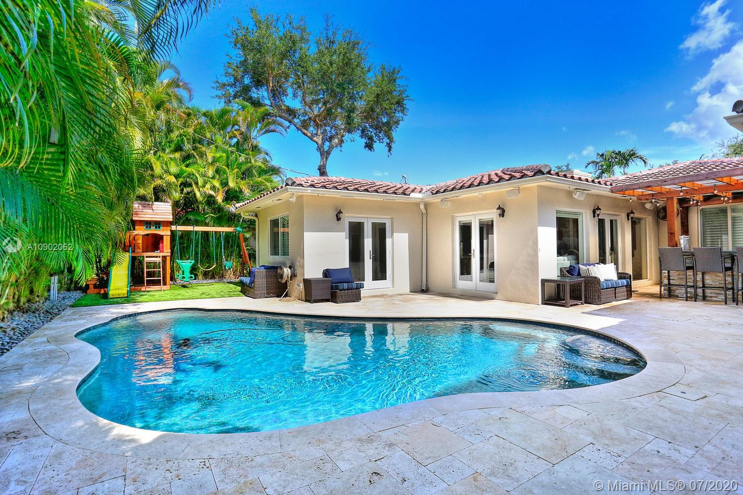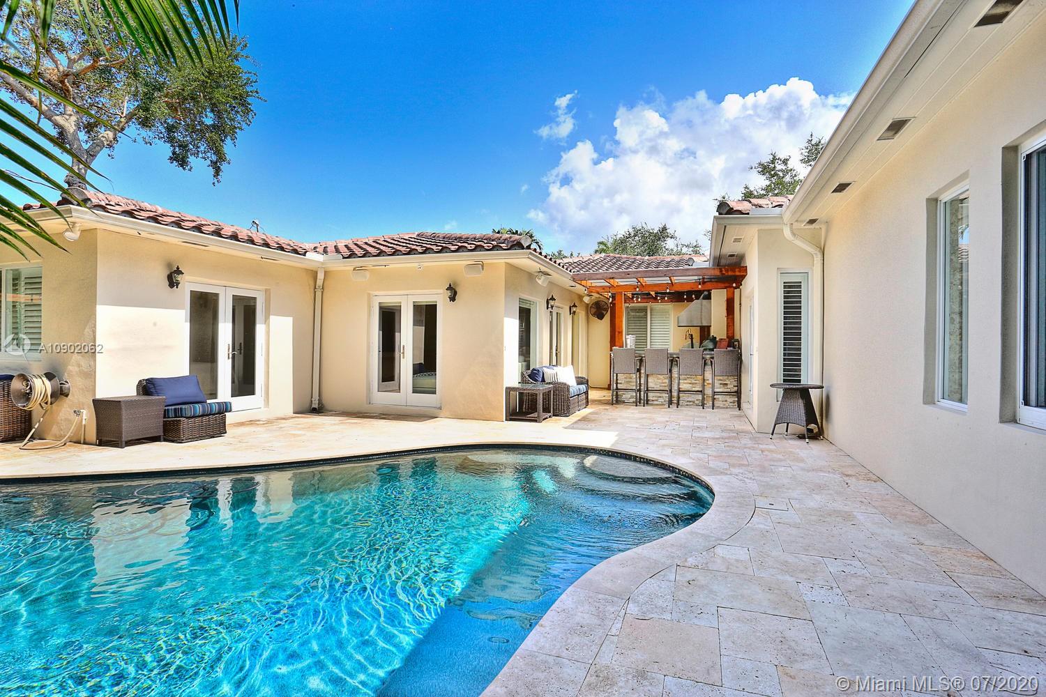 This spectacular graceful smart-home has it all – boundless beauty & all of today’s conveniences on a wonderful South Gables street. Impact windows & doors, gorgeous updated kitch, huge luxurious master suite & so much more! Gorgeous plantation shutters on all windows, hardwood flrs, vaulted wood-beamed ceilings, spacious bedrooms, awesome laundry rm, light & bright spaces. The kitch opens to the inviting, bright fam rm & passes through to the formal din & liv rms. The HUGE master suite has 2 closets and a big, comfortable bathrm w private water closet. A sparkling new pool & brick patio in back are the centerpiece for the summer. The pool is both heated AND air conditioned-it’s a Miami dream come true! Enjoy a new summer kitch complete w built in Green Egg, gas BBQ, ice chest & fridge.