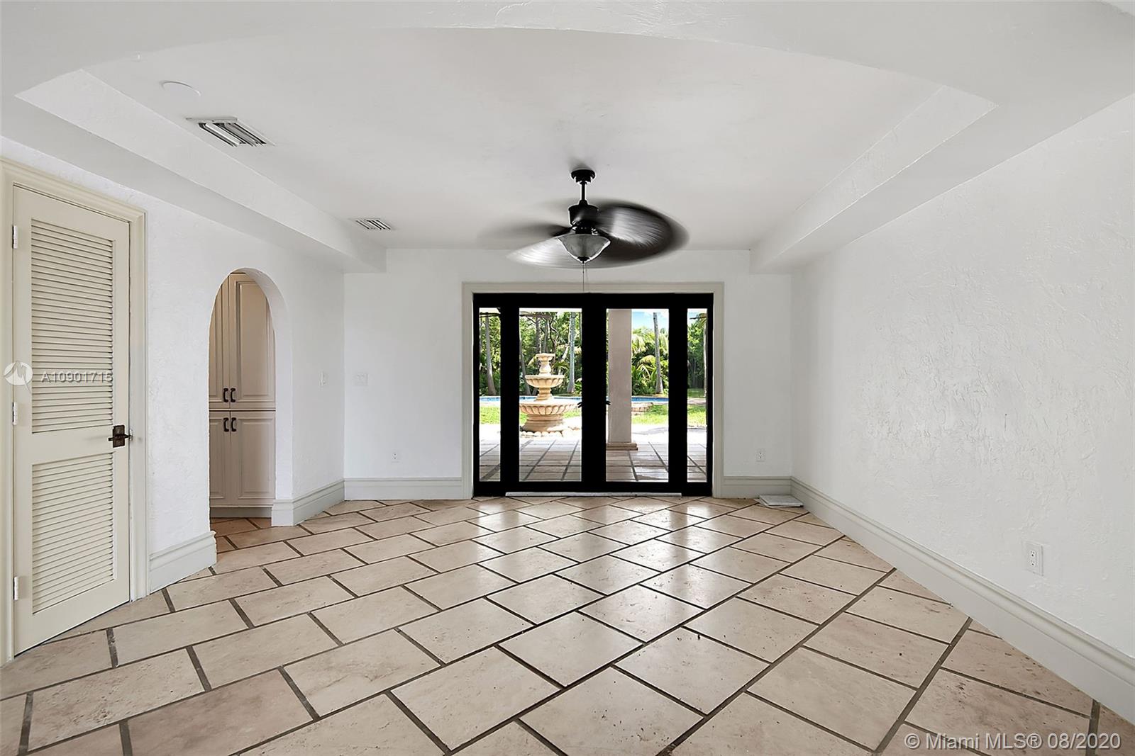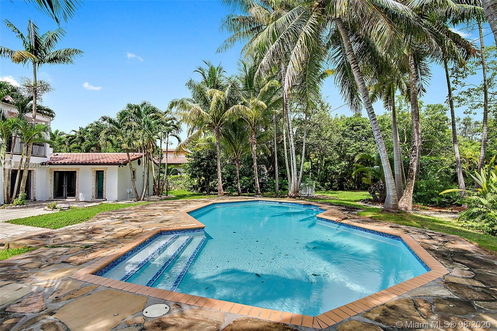 Prepare to fall in love with this absolutely spectacular 5-bed, 5.1-bath Spanish Colonial nestled in a lushly landscaped 0.93 acre private setting. This home features a dramatic two-story living area with soaring vaulted ceilings; a formal dining area; crisp white kitchen; cozy family room that opens onto the rear patio overlooking the pool; 4 main floor bedrooms; and an spacious master with loft overlooking the main living area, a luxurious en-suite bath, walk in closets, and a private balcony. Incredible location in the heart of Pinecrest close to shopping, dining and entertainment.
