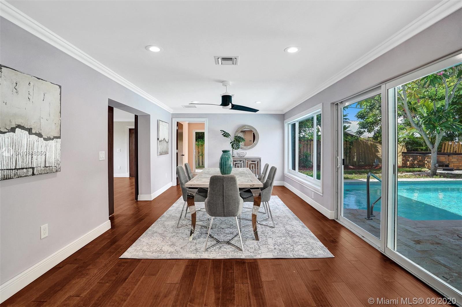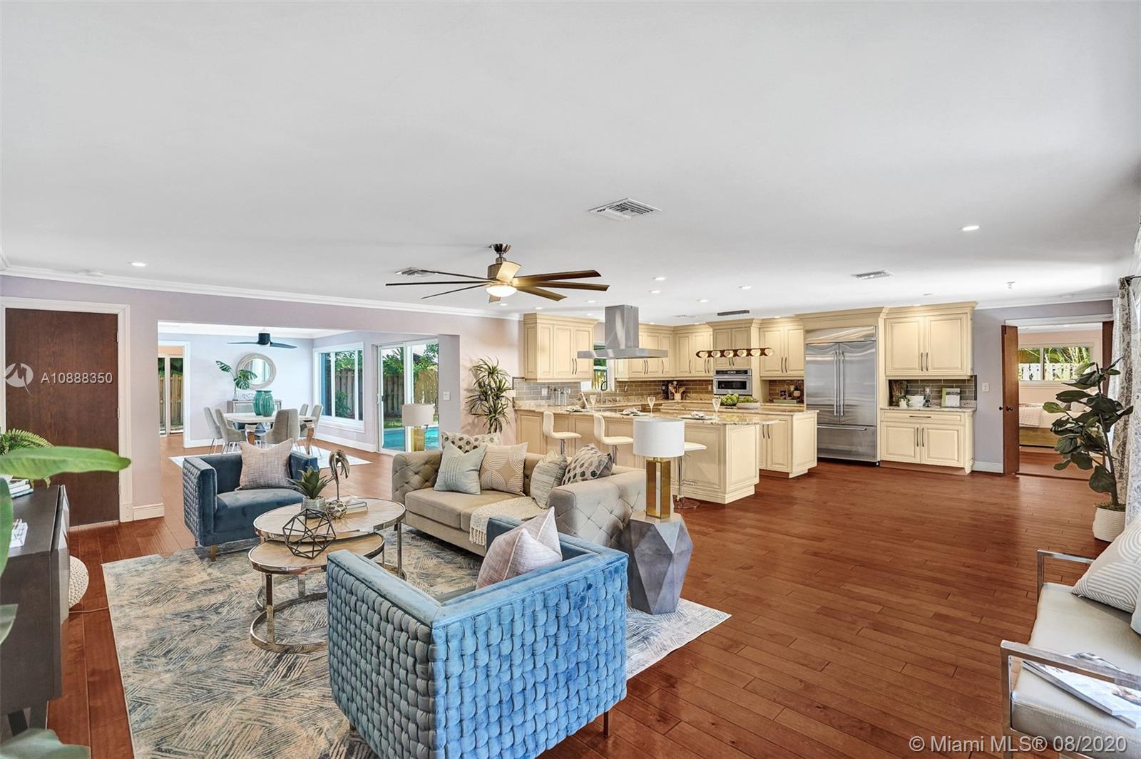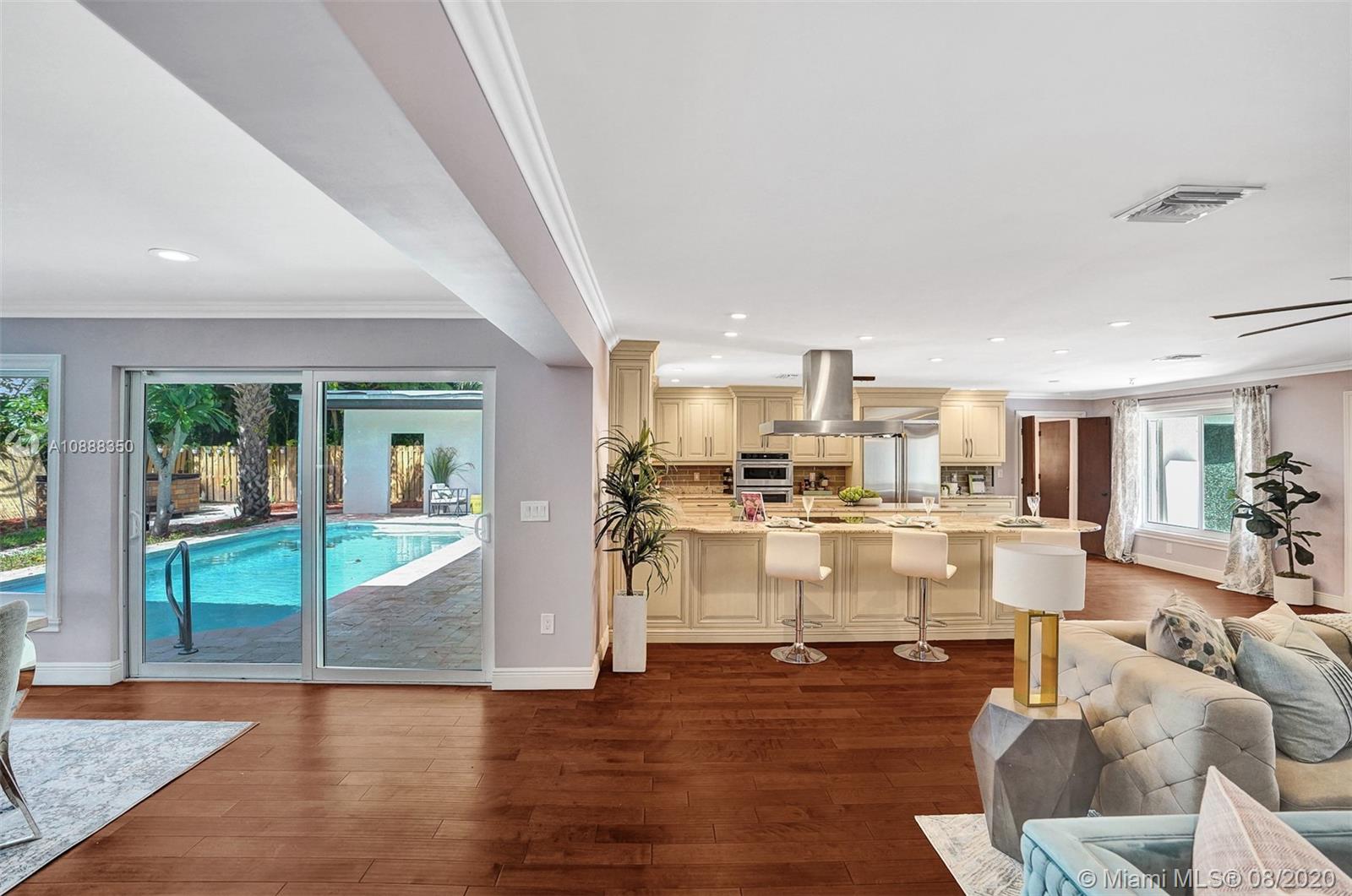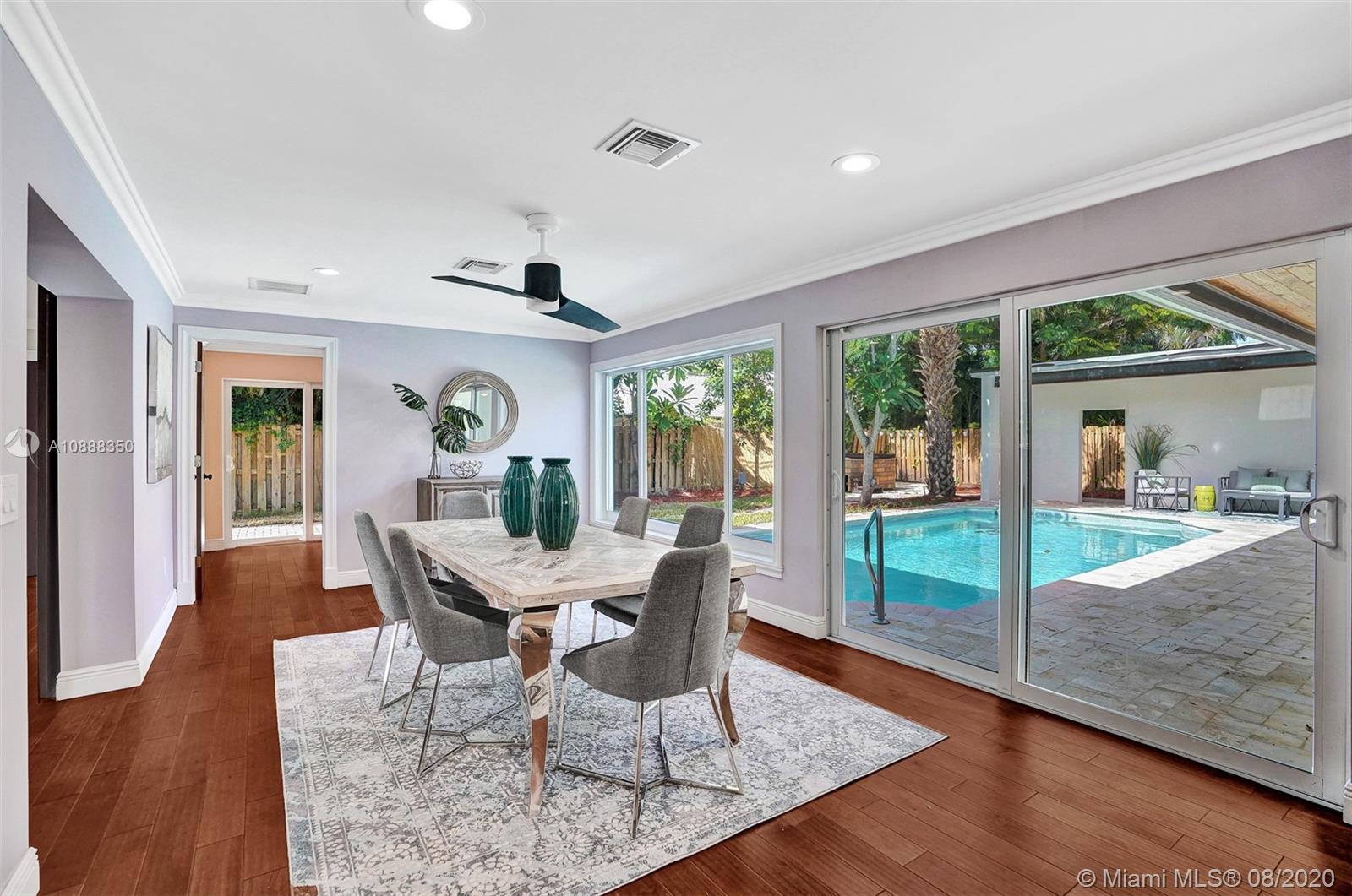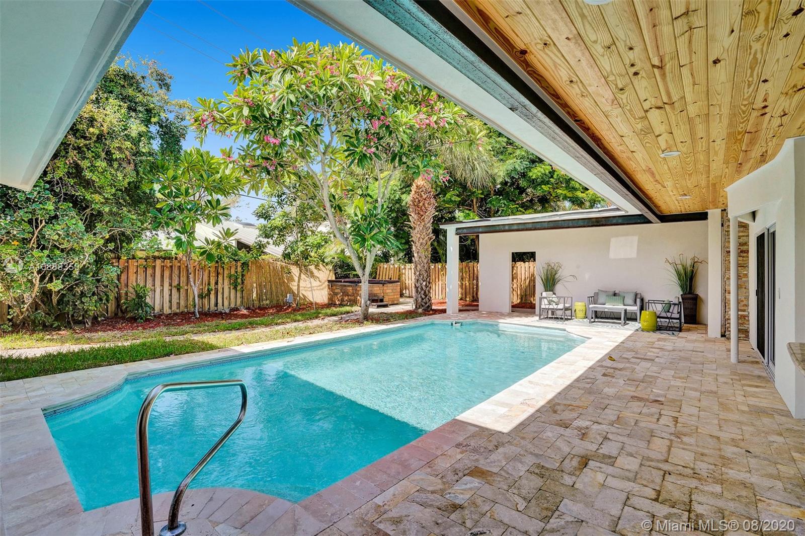 Welcome to this stunning home on an oversize lot on a coveted Coral Ridge Country Club street. This unique home was recently expanded to 3183 ft² under air. Built with Dade pine known for its superior qualities, impact windows & a brand new roof, it offers peace of mind amidst the elements. Featuring two over-sized luxurious main bedrooms, a triple split floor plan with one room having secured exterior access & a bonus room that can function as an office/study/playroom/studio! The stunning hardwood custom-built kitchen features top-of-the-line appliances & a cooking peninsula. An entertainer’s dream home! Enjoy meals in your dining room with stunning pool views, featuring new travertine pool deck, new recessed lighting, new irrigation & an amazing wall perfect on which to project TV!
