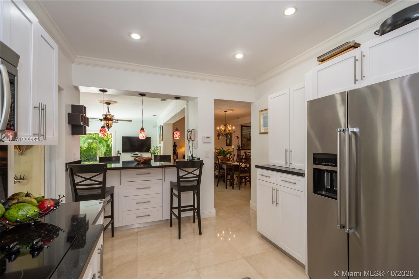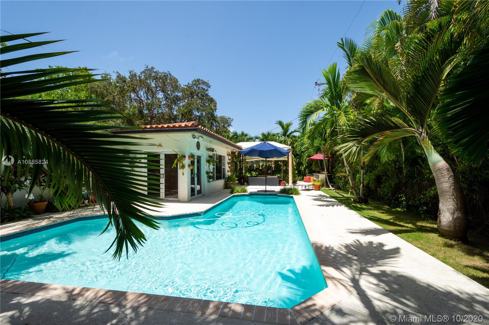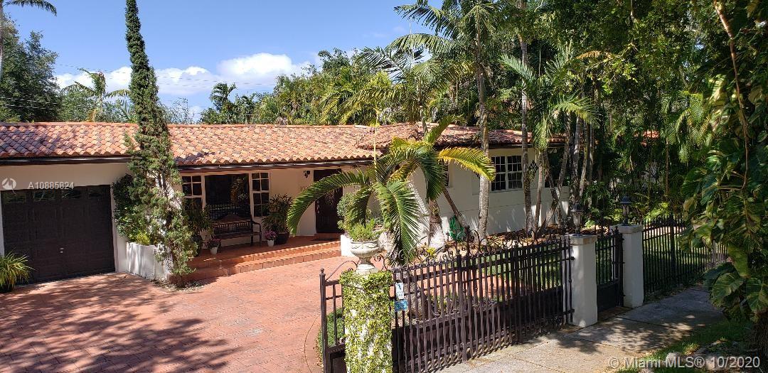 Charming walled and gated home on picturesque tree-lined Bayamo, situated in a central South Gables area. A foyer entrance leads to a lovely open concept layout: formal living room, spacious dining and a light and bright entertainment room open to a romantic pool area are all conducive to memorable gatherings in and outdoors. Great kitchen with open counter, stainless steel appliances and ample closet space throughout. Comfortable principal en-suite; two other bedrooms and bath. Marble floors, recessed lighting, two-car garage, two air conditioning units. Close to the University of Miami, A-rated public and private schools. Must see!
