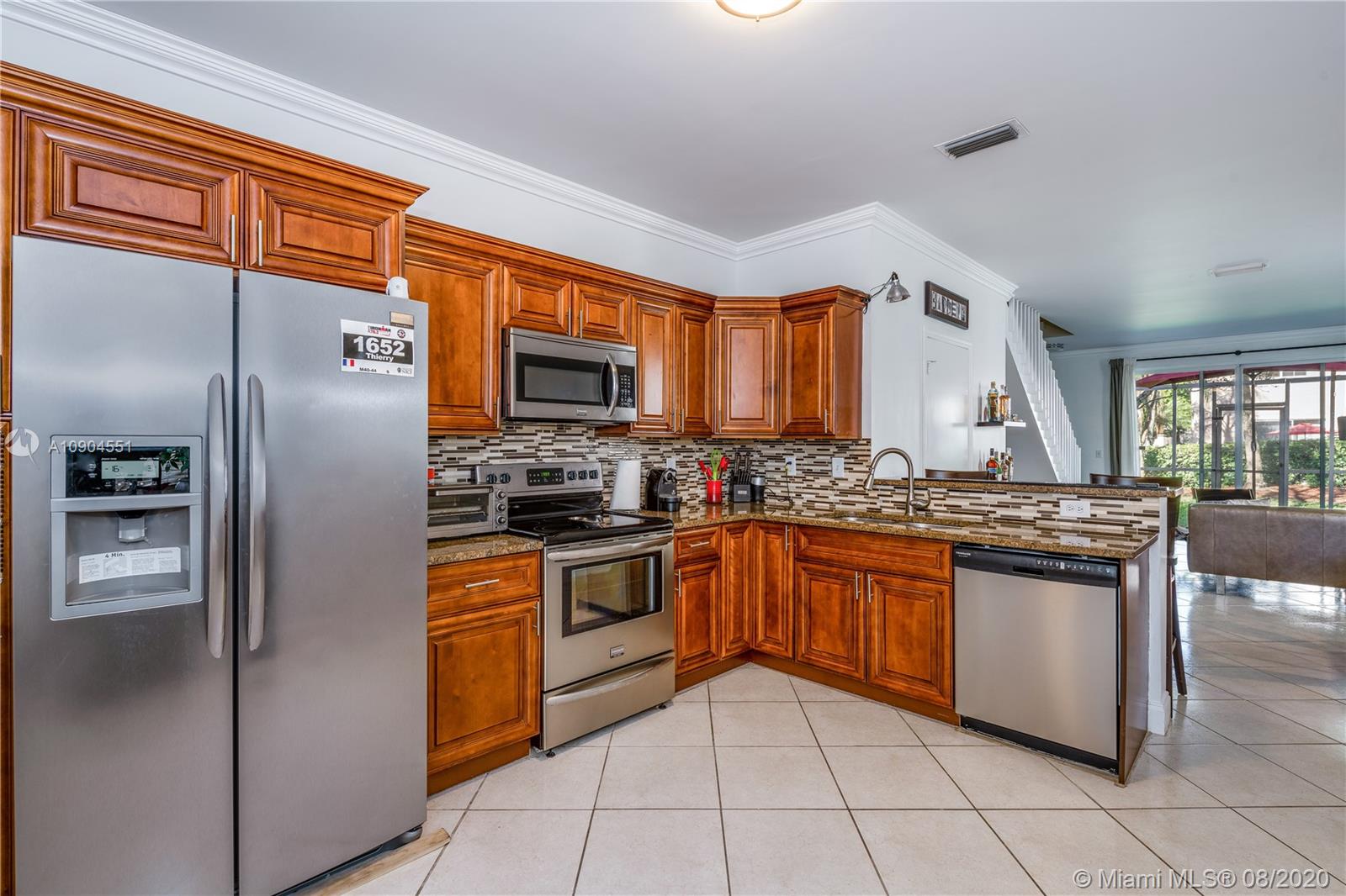 Great opportunity to own a large and spacious townhouse in the wonderful neighborhood of San Messina in Weston! This unit has a remodeled kitchen with granite counters, Stainless Steel appliances, and a decorative backsplash. First floor has tile floors with crown molding and a screened in patio with decorative tile. Leading up to the second floor there are elegant wood vinyl floors on the stairway and throughout the second floor. Upstairs bathrooms have the same theme as the kitchen with a marble looking tile on the floors and on the shower walls. San Messina has a community pool and playground for children to play in. Paired with a low HOA paid quaterly, this is one of the best turnkey deals in Weston. Schedule a showing today to come see this beautiful townhouse.