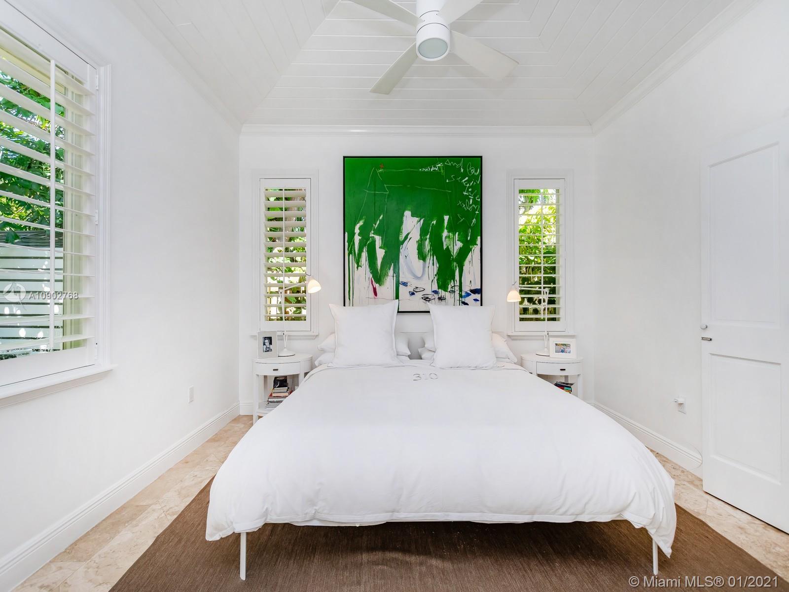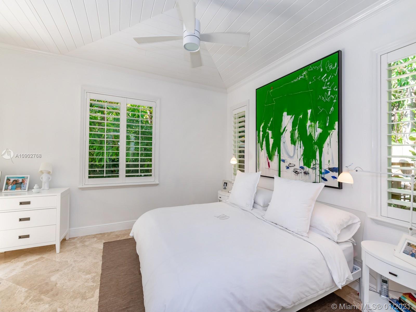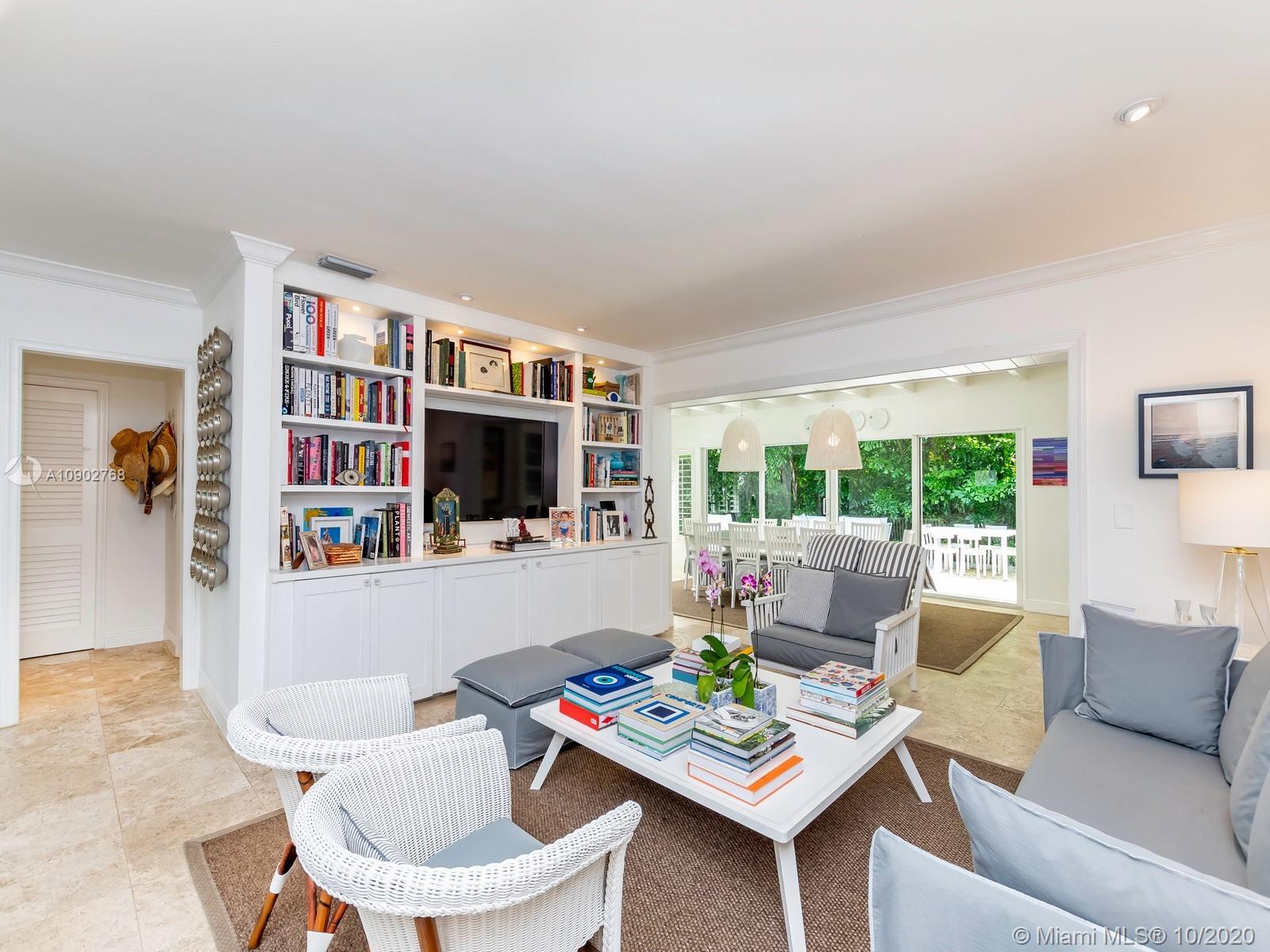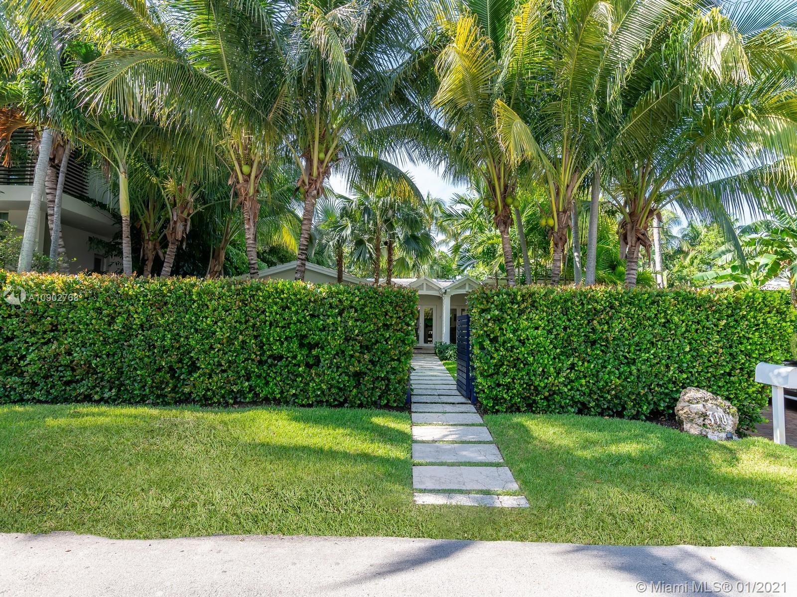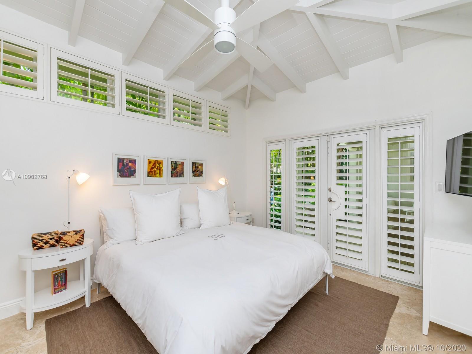 Palm beach chic garden style home with covered front porch and flow through views. This 4 bedroom 3 bath residence is unique in its style and vibe. A fabulous cabana style master suite overlooks the tropical garden and spa quality pool. A covered porch opens into a great room, dining, and family rooms. A white cook's kitchen overlooks a custom-designed pool with water features and private garden setting. A large gated yard both front and back allows for family entertaining. Impact glass. One story living at its finest.