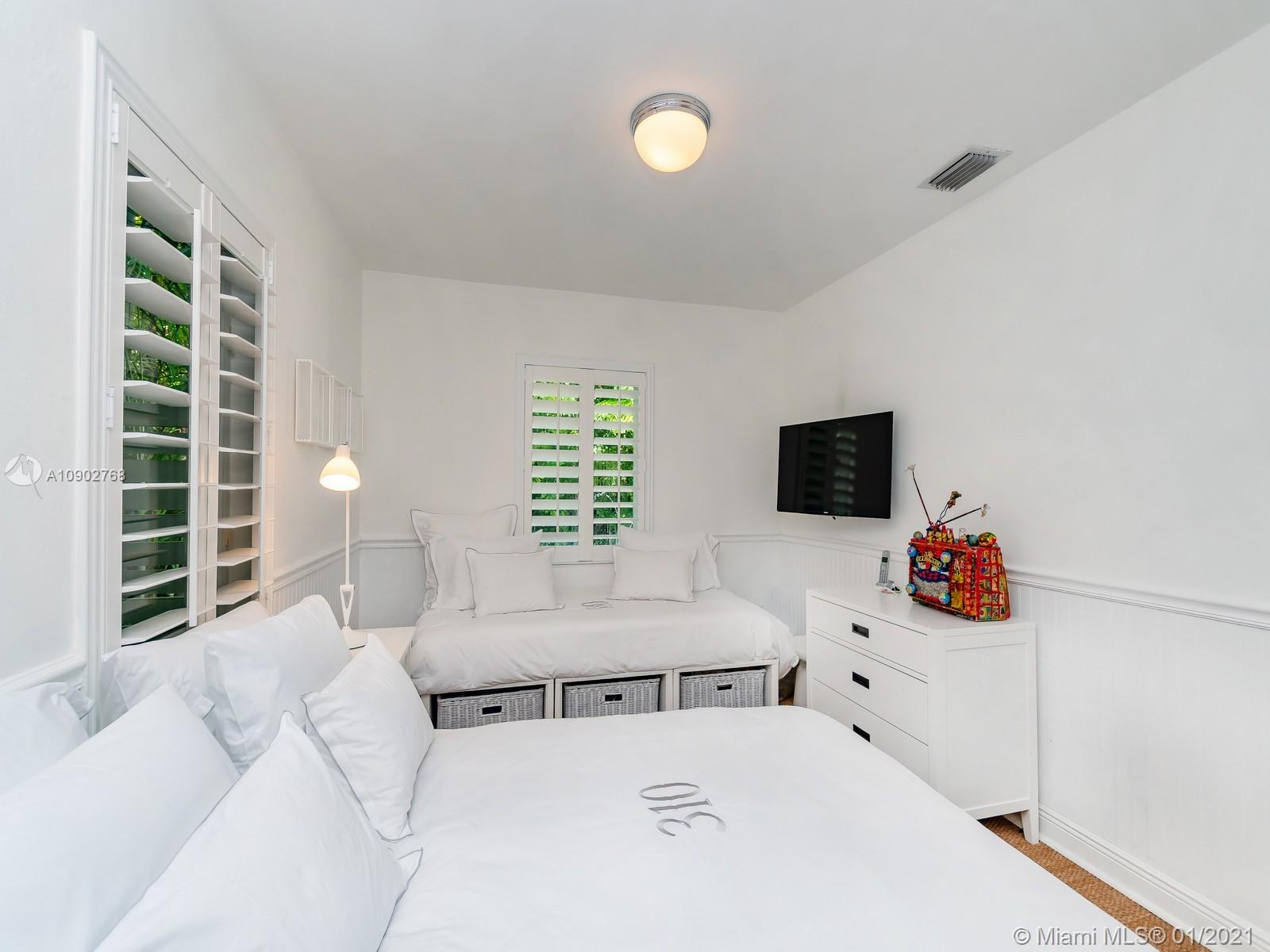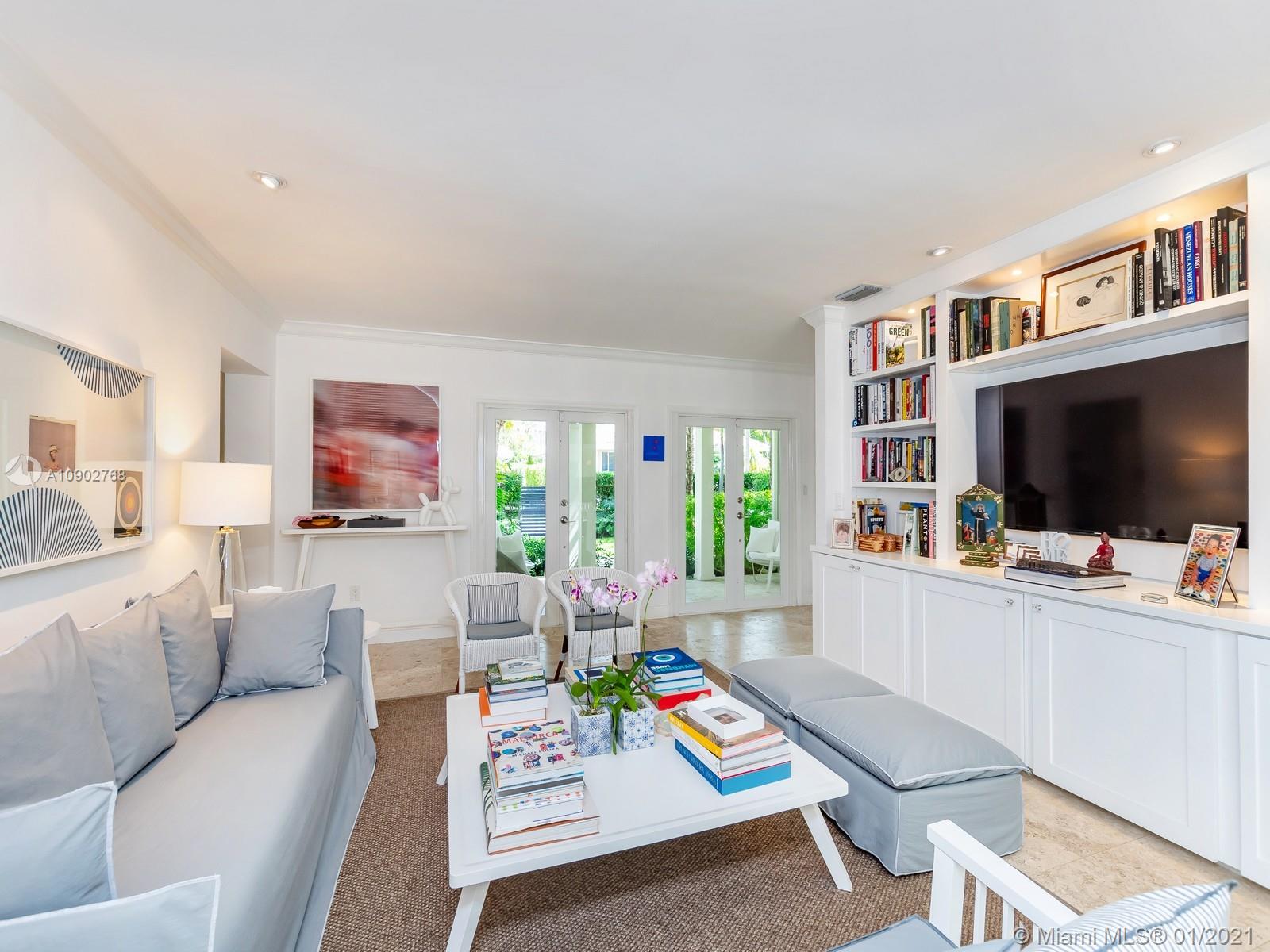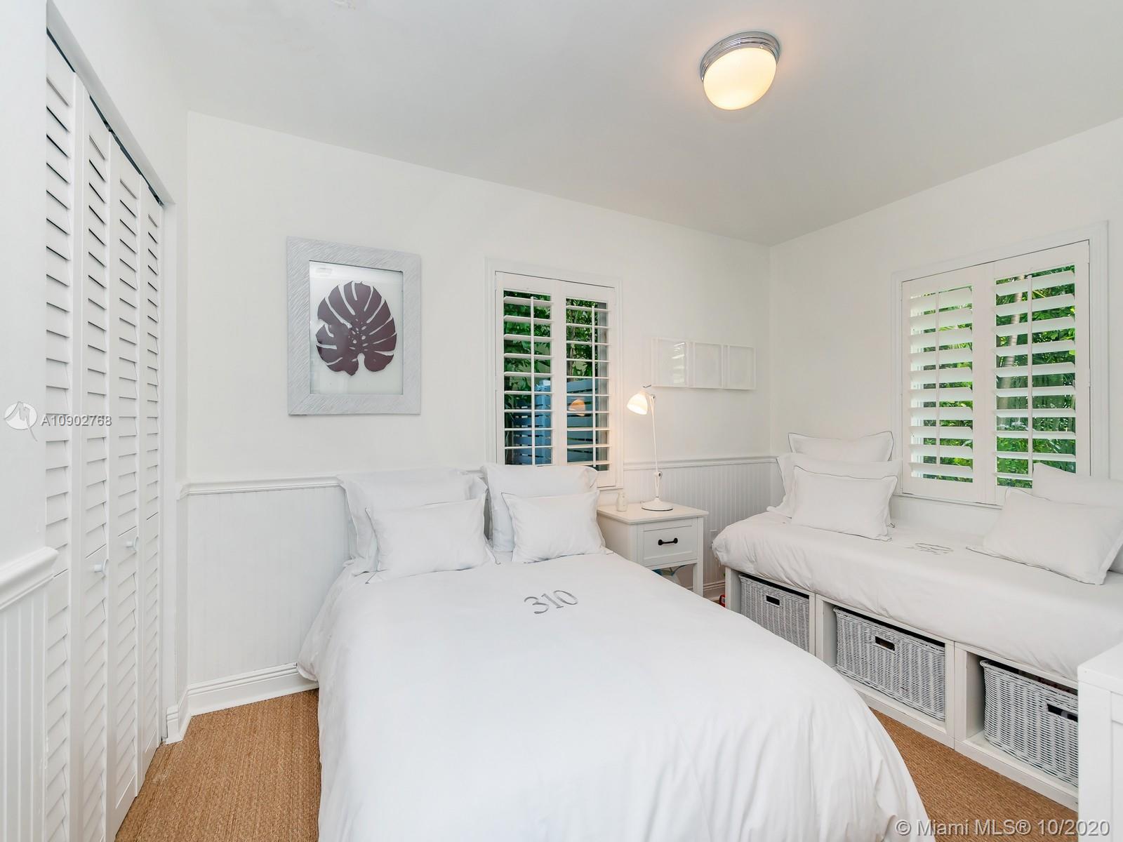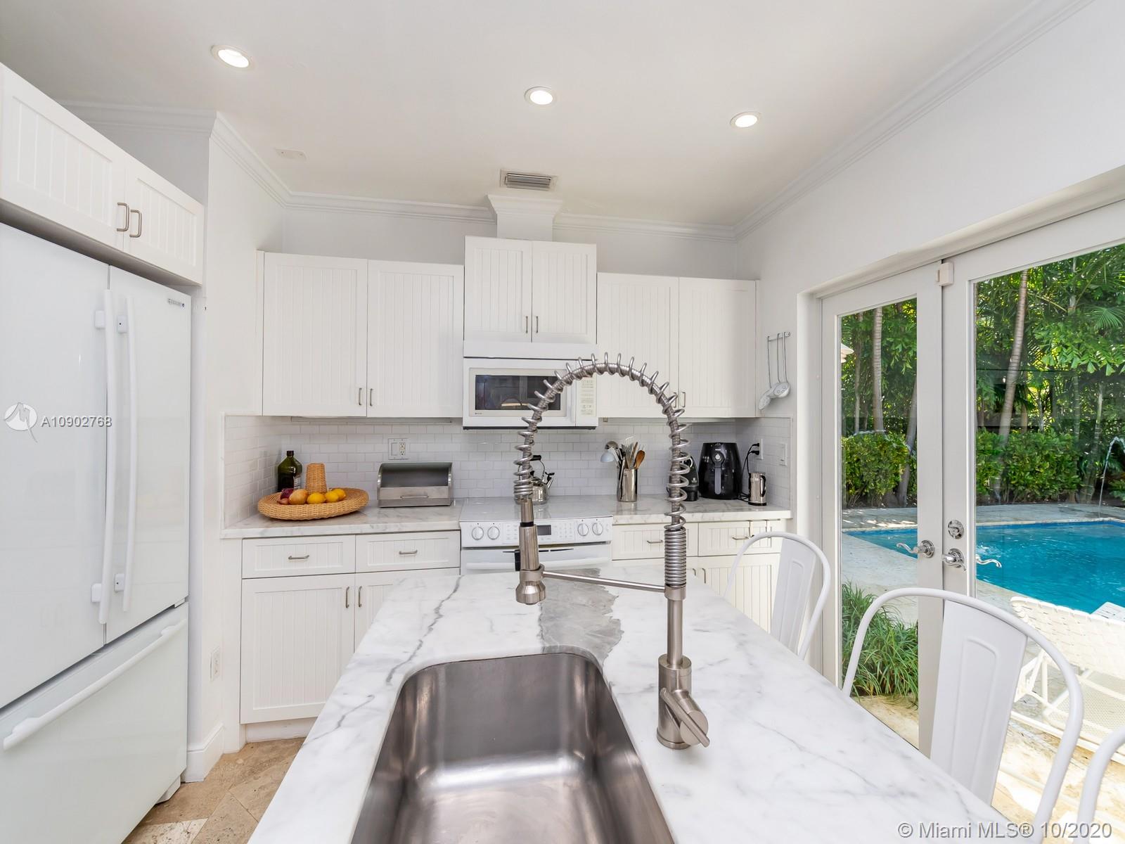 Palm beach chic garden style home with covered front porch and flow through views. This 4 bedroom 3 bath residence is unique in its style and vibe. A fabulous cabana style master suite overlooks the tropical garden and spa quality pool. A covered porch opens into a great room, dining, and family rooms. A white cook's kitchen overlooks a custom-designed pool with water features and private garden setting. A large gated yard both front and back allows for family entertaining. Impact glass. One story living at its finest.