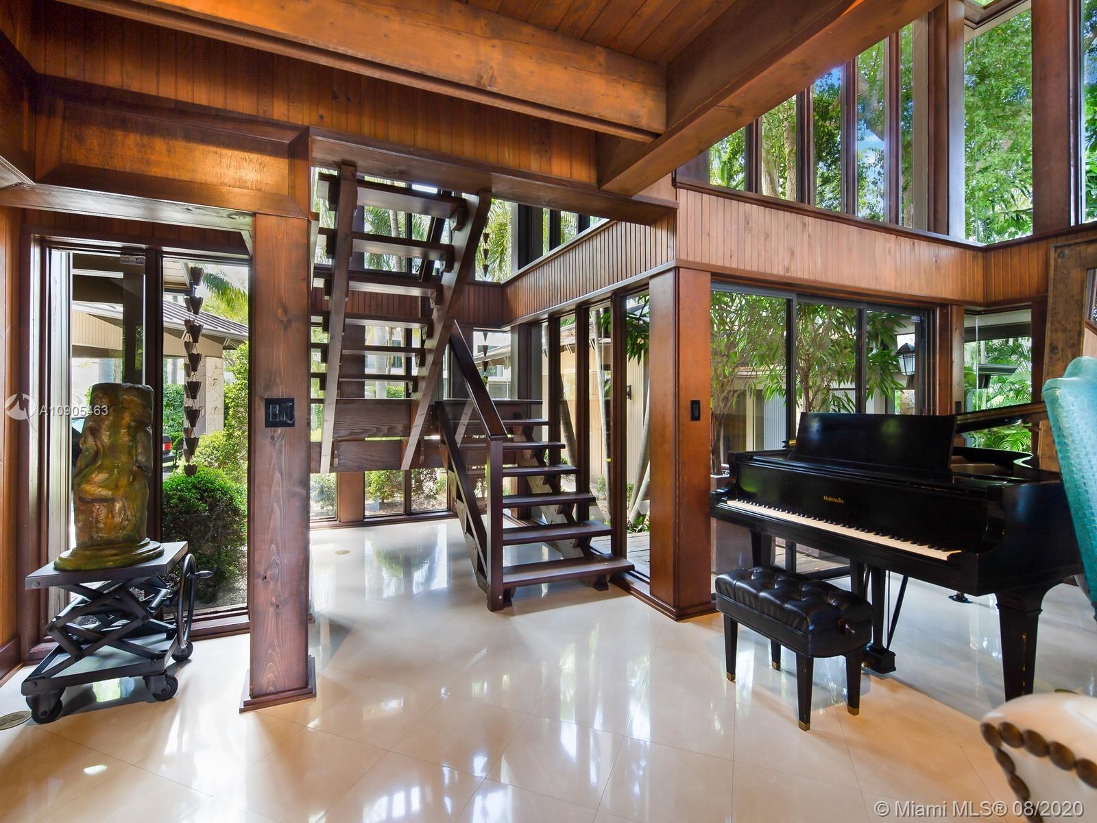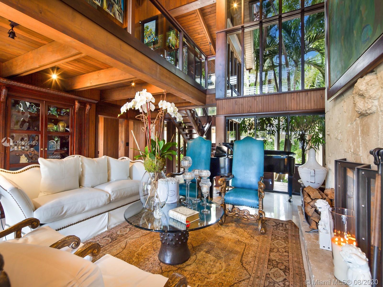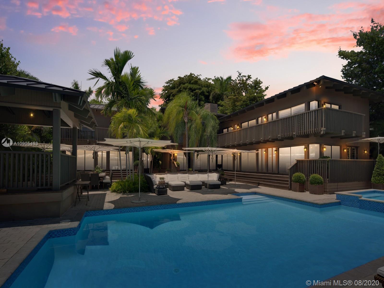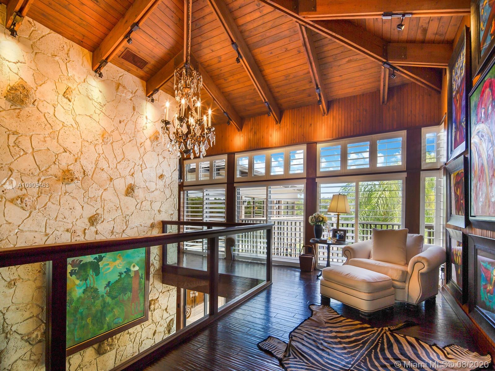 Key Biscayne waterfront in Cape Florida on Pines Canals. Refreshingly scaled for gracious living. This unique custom home designed by architect John Albert Weller features vaulted ceilings throughout, 5 bedrooms 5 full baths 1 powder bath. The understated interiors; all with water views, Gourmet kitchen with Wolfe gas stove, Miele dishwasher, Subzero refrigerator freezer, subzero wine cooler and a subzero ice maker & pantry. The exterior features lush landscaping for privacy with an open layout patio area great for entertaining with a gazebo, pool. The new recently built dock in IPE, can moor a large vessel, has a sun deck, new piles, fortified seawall, no bridges to bay the waterfrontage is 100 ft the lot is over 17,000 sq feet. This rustic home is one of a kind.