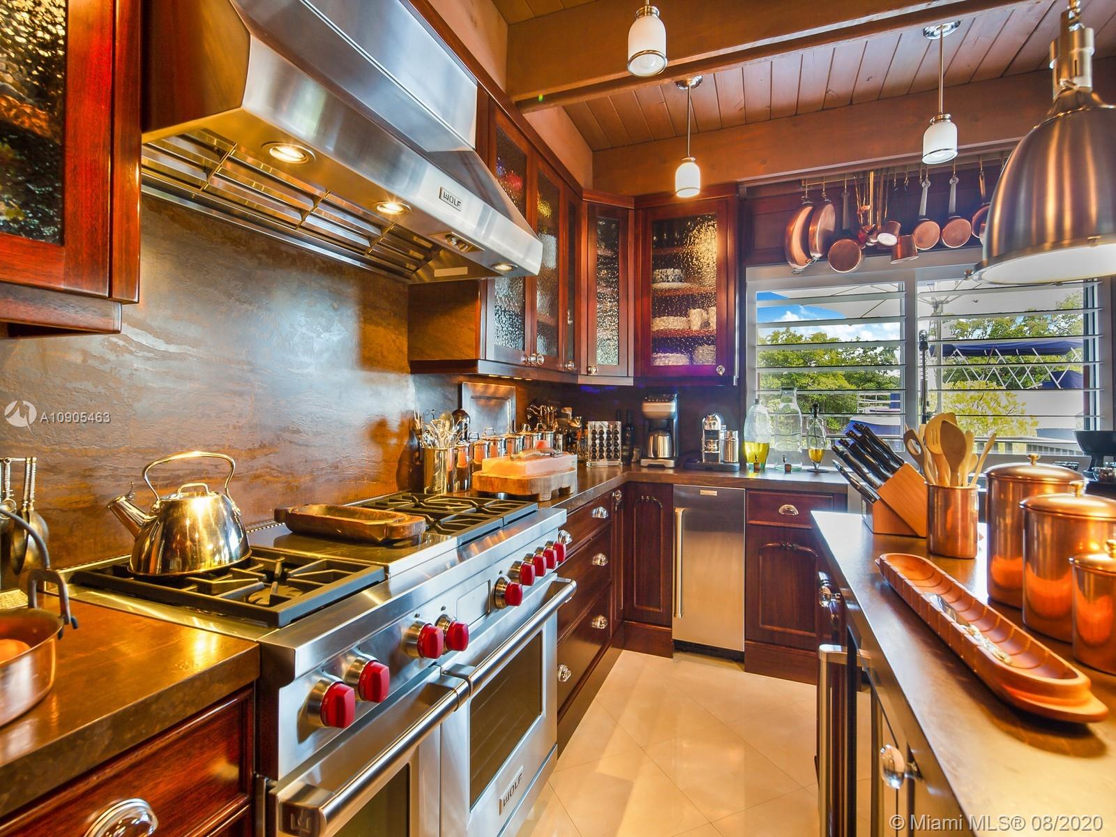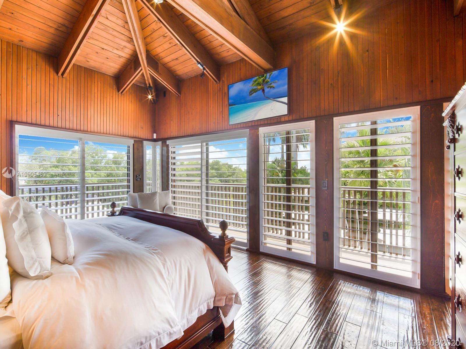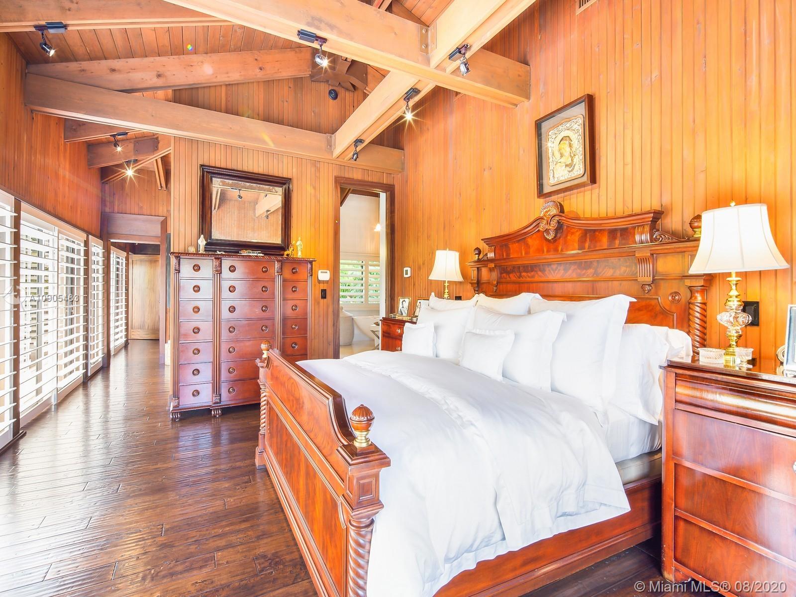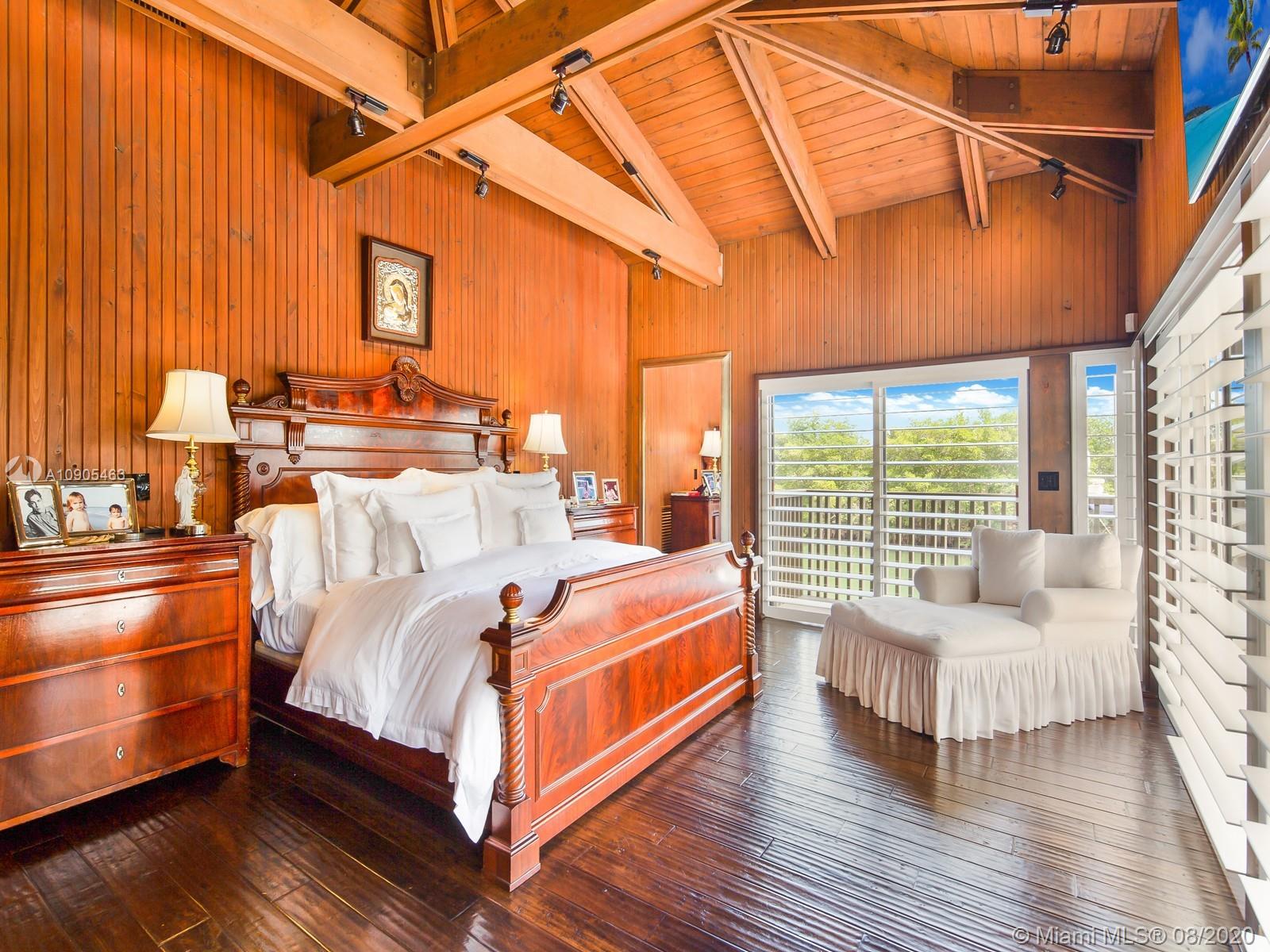 Key Biscayne waterfront in Cape Florida on Pines Canals. Refreshingly scaled for gracious living. This unique custom home designed by architect John Albert Weller features vaulted ceilings throughout, 5 bedrooms 5 full baths 1 powder bath. The understated interiors; all with water views, Gourmet kitchen with Wolfe gas stove, Miele dishwasher, Subzero refrigerator freezer, subzero wine cooler and a subzero ice maker & pantry. The exterior features lush landscaping for privacy with an open layout patio area great for entertaining with a gazebo, pool. The new recently built dock in IPE, can moor a large vessel, has a sun deck, new piles, fortified seawall, no bridges to bay the waterfrontage is 100 ft the lot is over 17,000 sq feet. This rustic home is one of a kind.