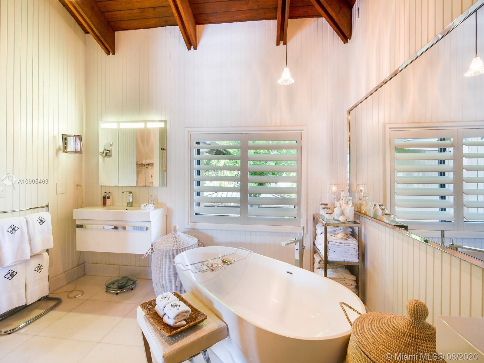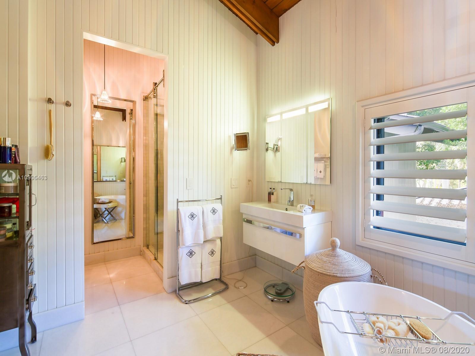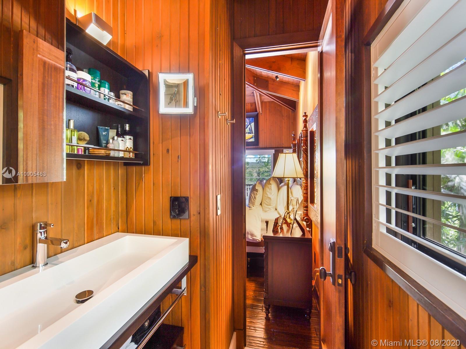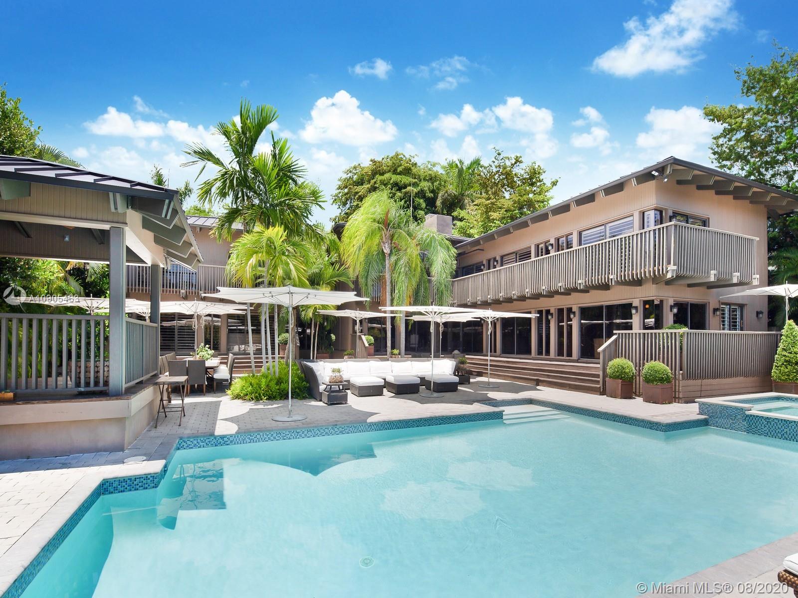 Key Biscayne waterfront in Cape Florida on Pines Canals. Refreshingly scaled for gracious living. This unique custom home designed by architect John Albert Weller features vaulted ceilings throughout, 5 bedrooms 5 full baths 1 powder bath. The understated interiors; all with water views, Gourmet kitchen with Wolfe gas stove, Miele dishwasher, Subzero refrigerator freezer, subzero wine cooler and a subzero ice maker & pantry. The exterior features lush landscaping for privacy with an open layout patio area great for entertaining with a gazebo, pool. The new recently built dock in IPE, can moor a large vessel, has a sun deck, new piles, fortified seawall, no bridges to bay the waterfrontage is 100 ft the lot is over 17,000 sq feet. This rustic home is one of a kind.