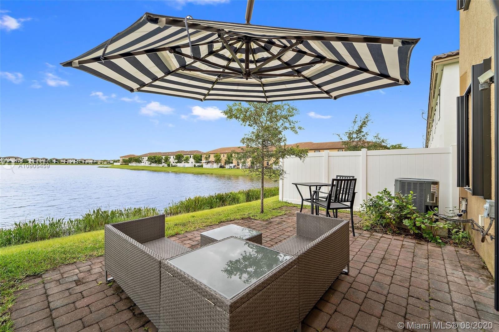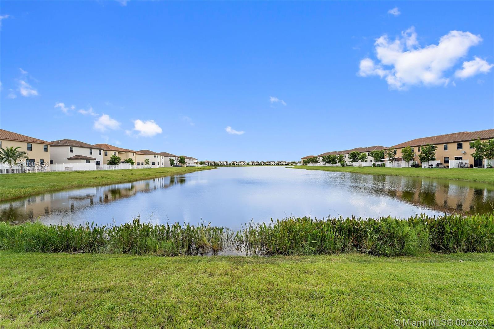 Gorgeous 4 Bedroom, 2.5 bath Bonterra corner townhome with stunning water views! Relax on your patio and enjoy the serenity that lakeside living brings. This unique unit has beautiful wood flooring on both the first and second floors. Freshly painted, open kitchen and family room overlooking the lake. The kitchen offers Modern style cabinetry, granite countertops and stainless appliances. All bedrooms are located on the second floor, along with the laundry area. Generous size master suite with a huge master bath. Accordion shutters throughout, attached single car garage plus additional driveway parking for 2 vehicles. Bonterra is a gated community with 24/7 security and luxury style amenities. Easy access to the surrounding communities of Doral, Miramar and Miami Lakes.