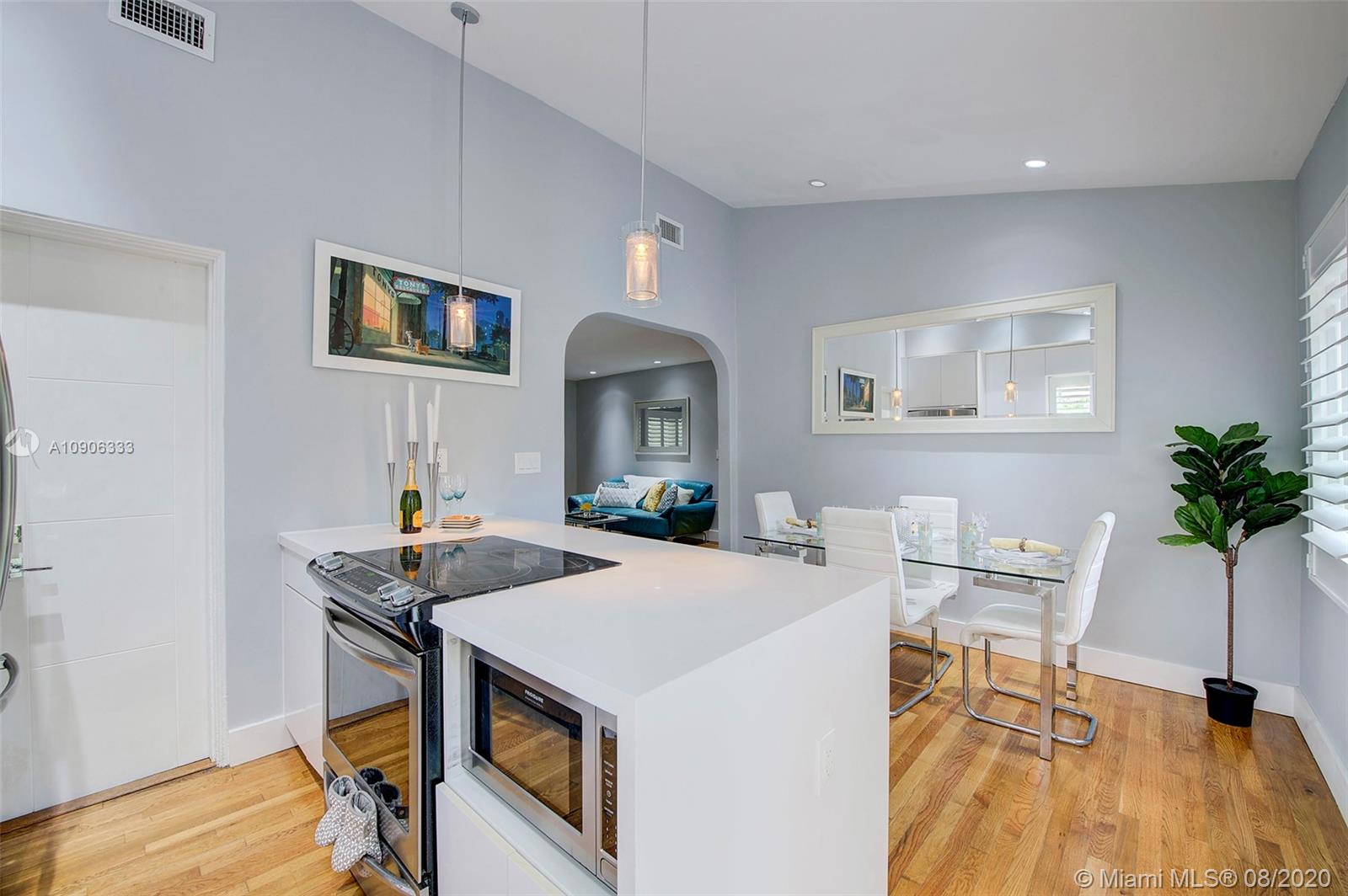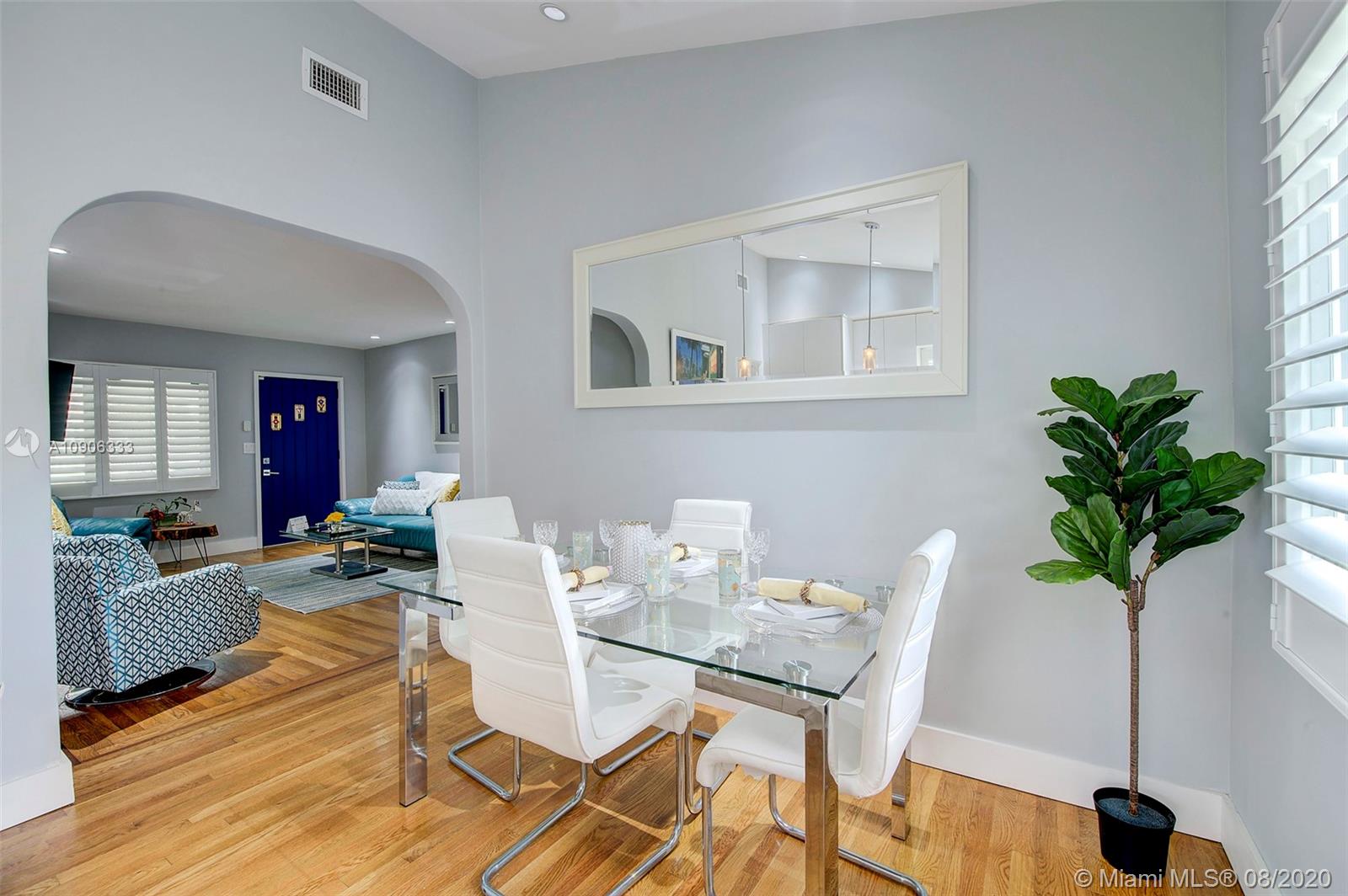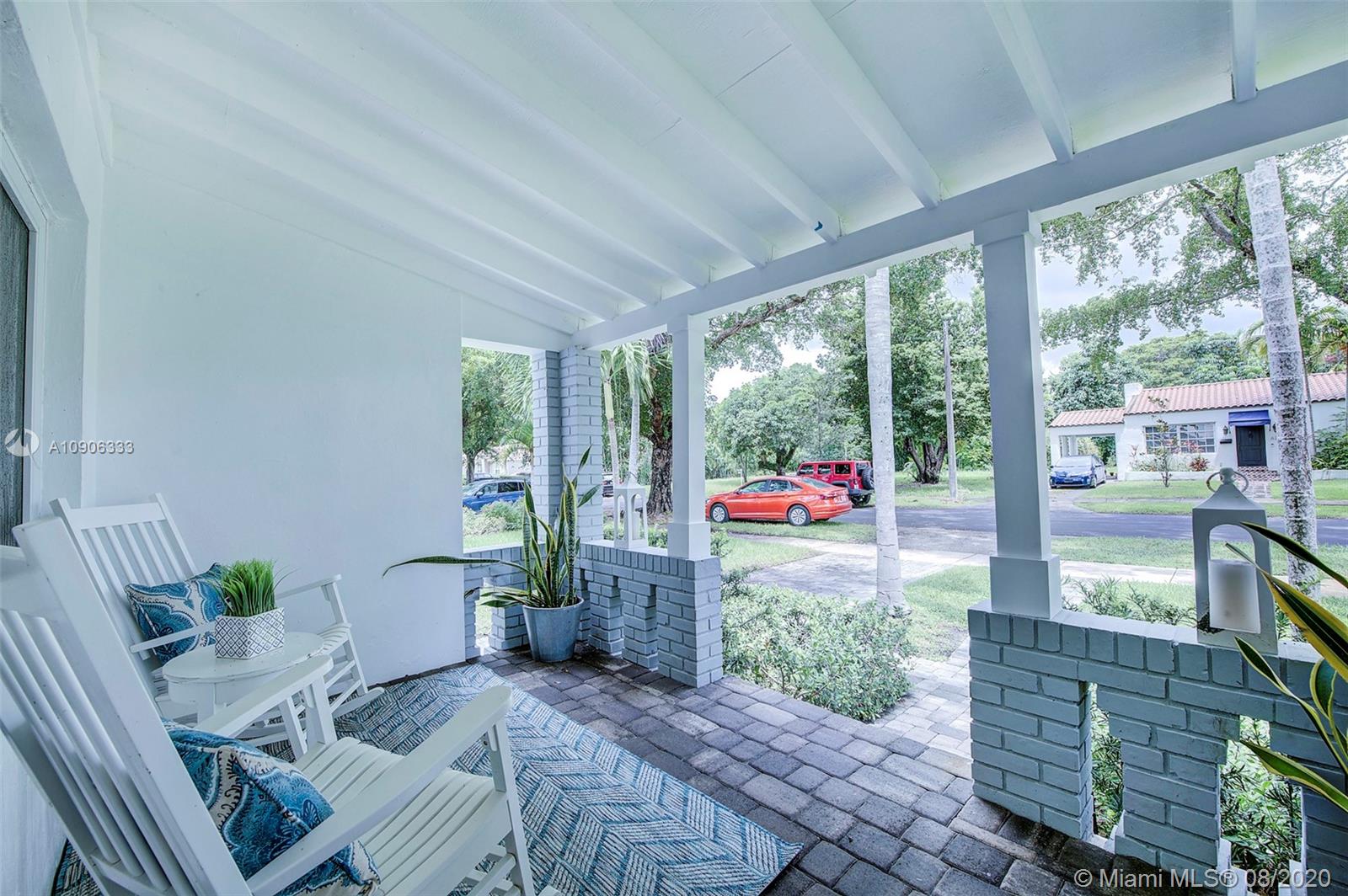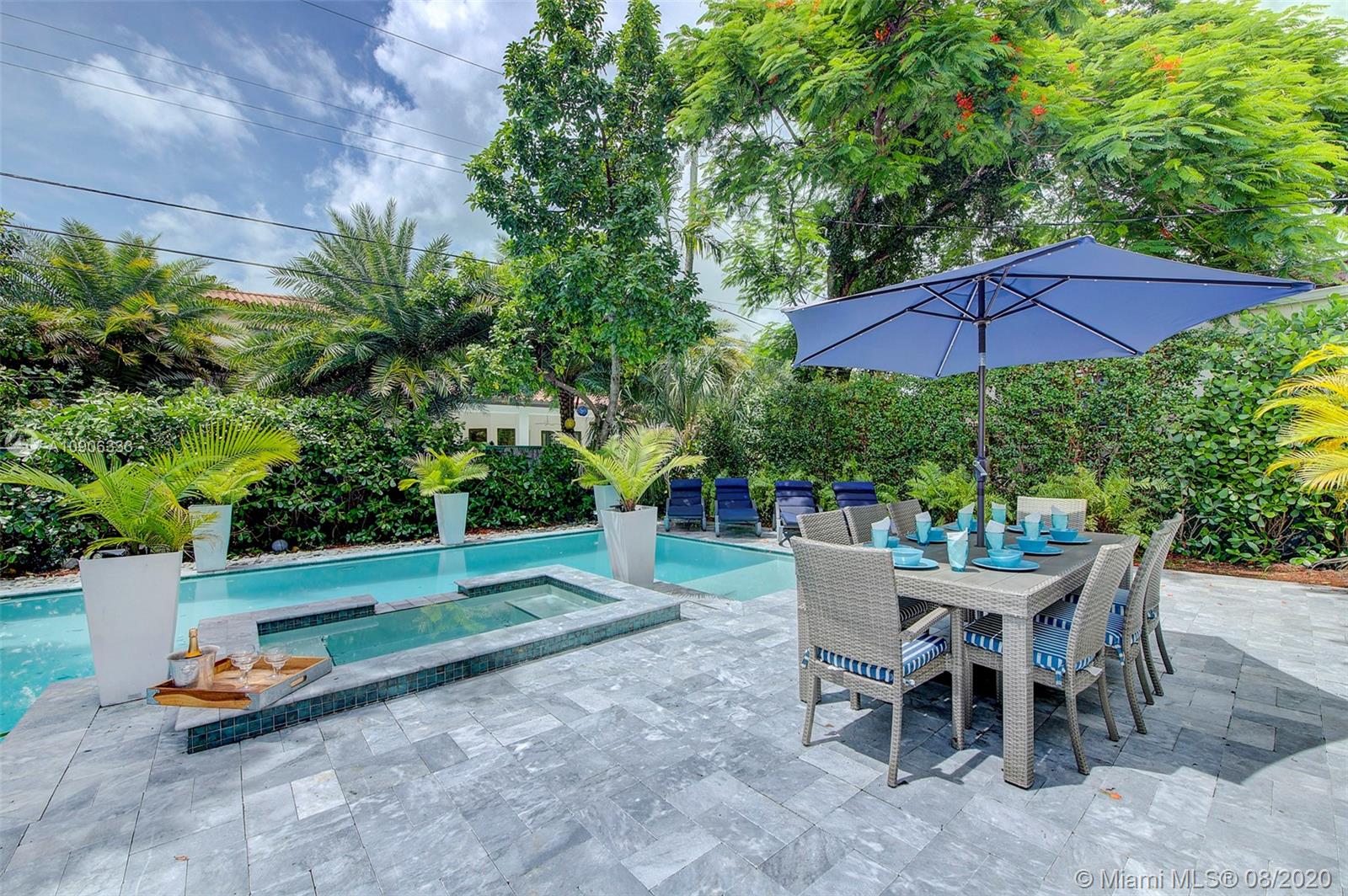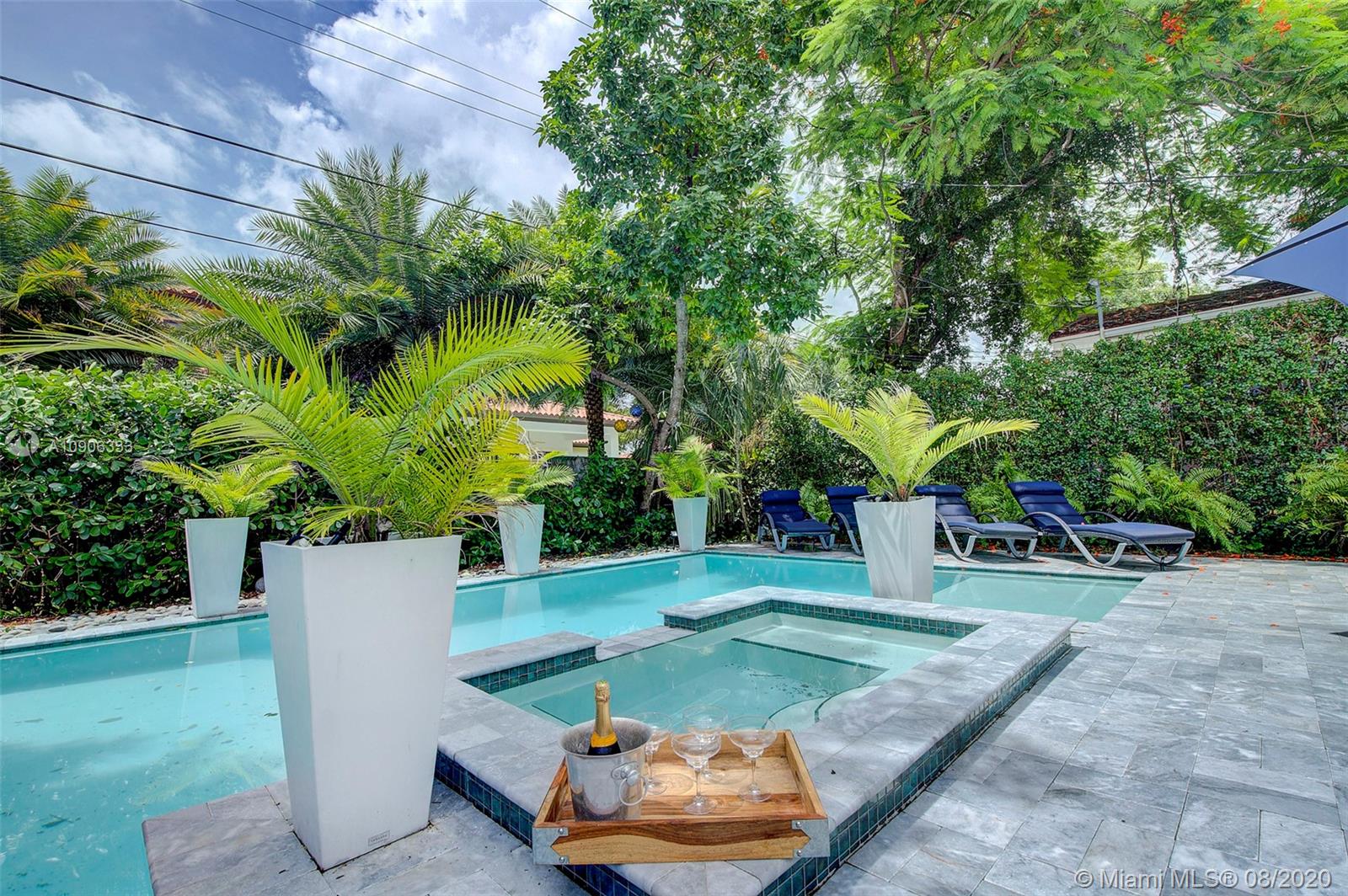 Lush and elegant tropical back yard pool oasis complementing a three bedroom two bath home from the 1940's that has been completely renovated but has kept the charm. The home boasts all the updated tech (Nest, Ring) while still featuring the original front door and hardwood floors. Heated Saltwater Pool and Spa, fire pit, mounted outdoor Smart TV to watch from the lounge chairs or while taking a swim. Living room features an original fireplace and vintage front door. Impact throughout including garage door except front door (has shutters). Everything is 5 years old or less, Roof, Plumbing, HVAC, Electrical, Kitchen, Bathrooms, Pool/Spa, plus a one car garage and NO septic! Showings by appointment and only to serious qualified Buyers.