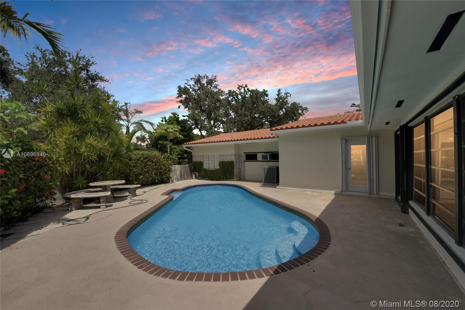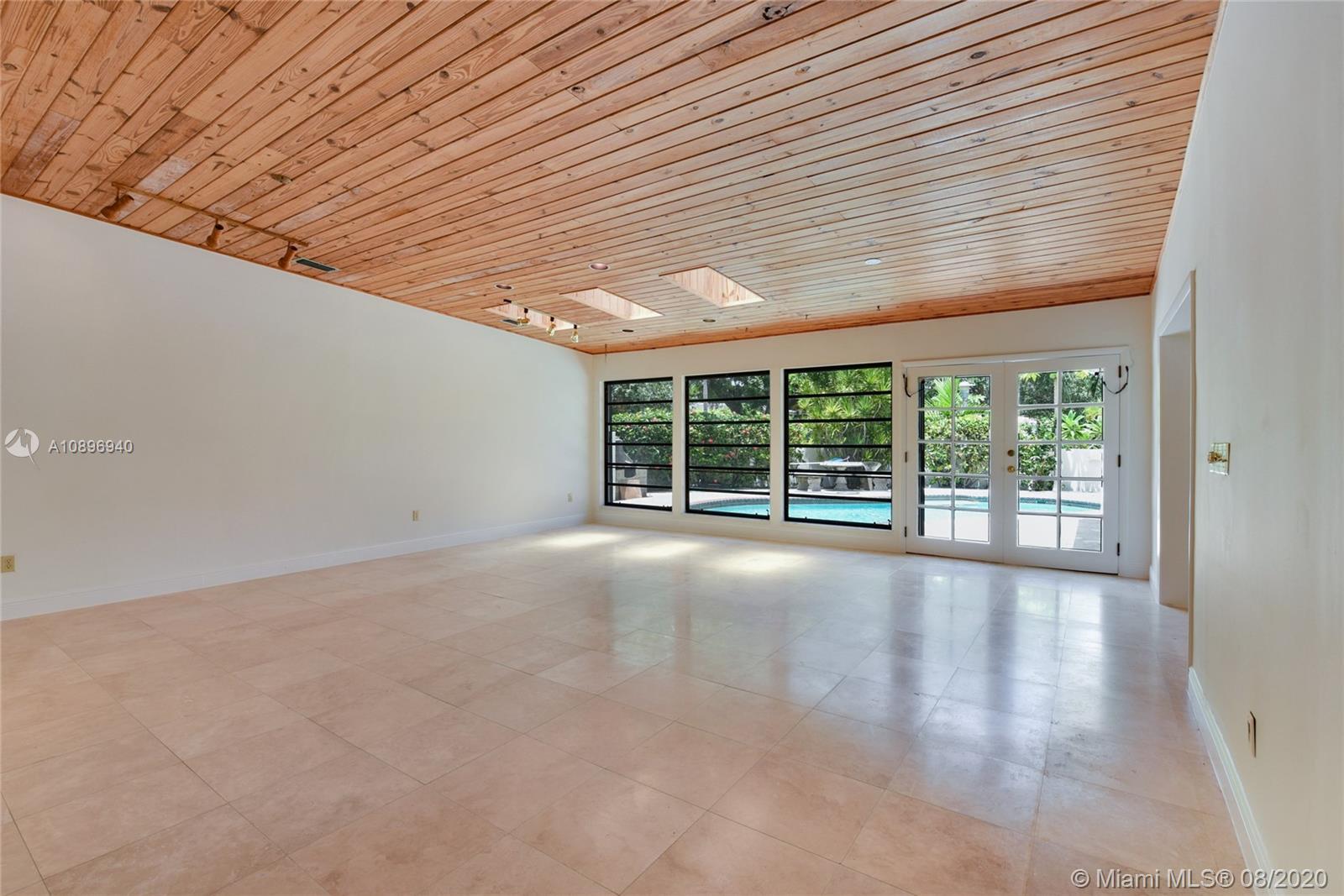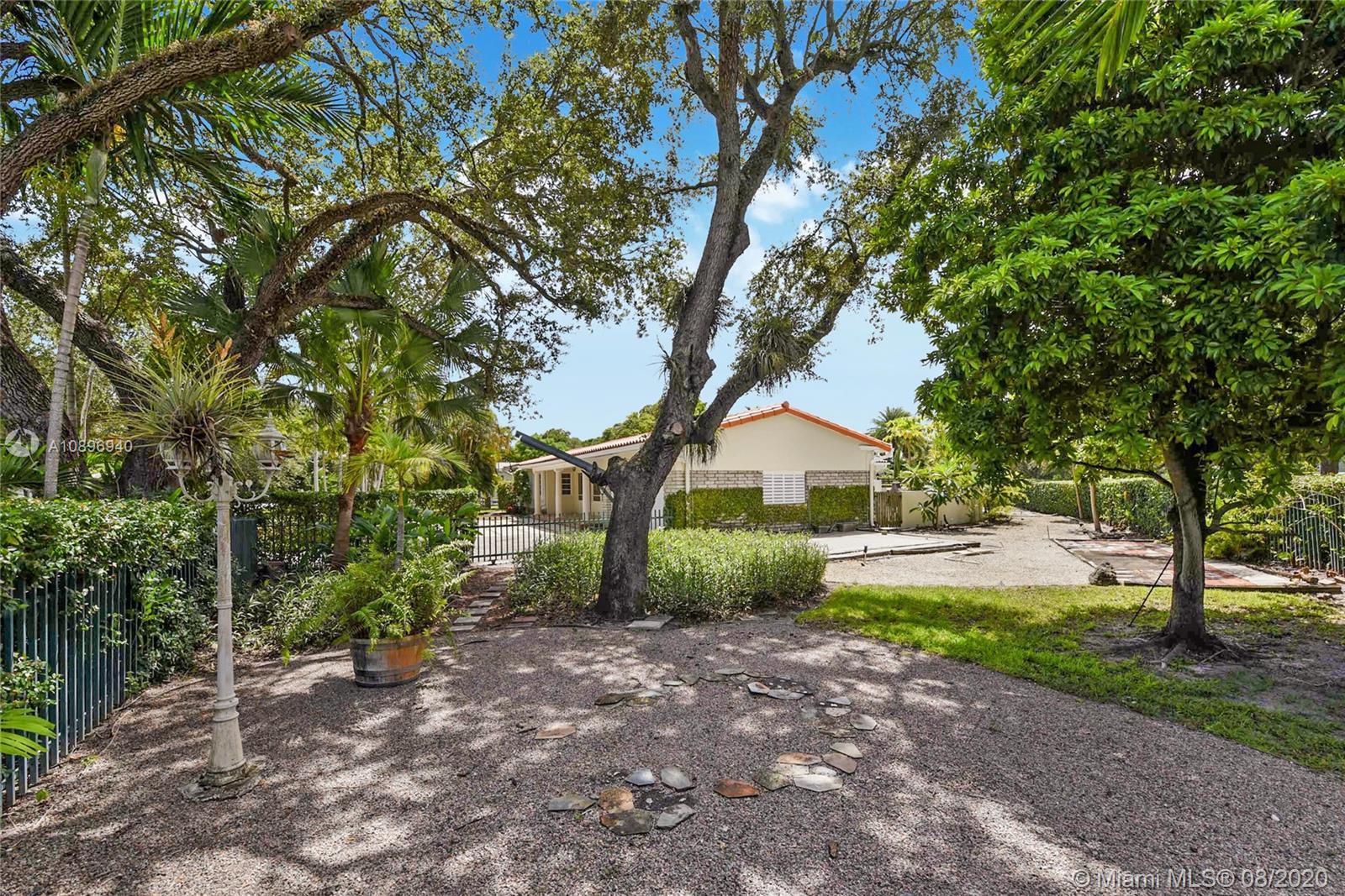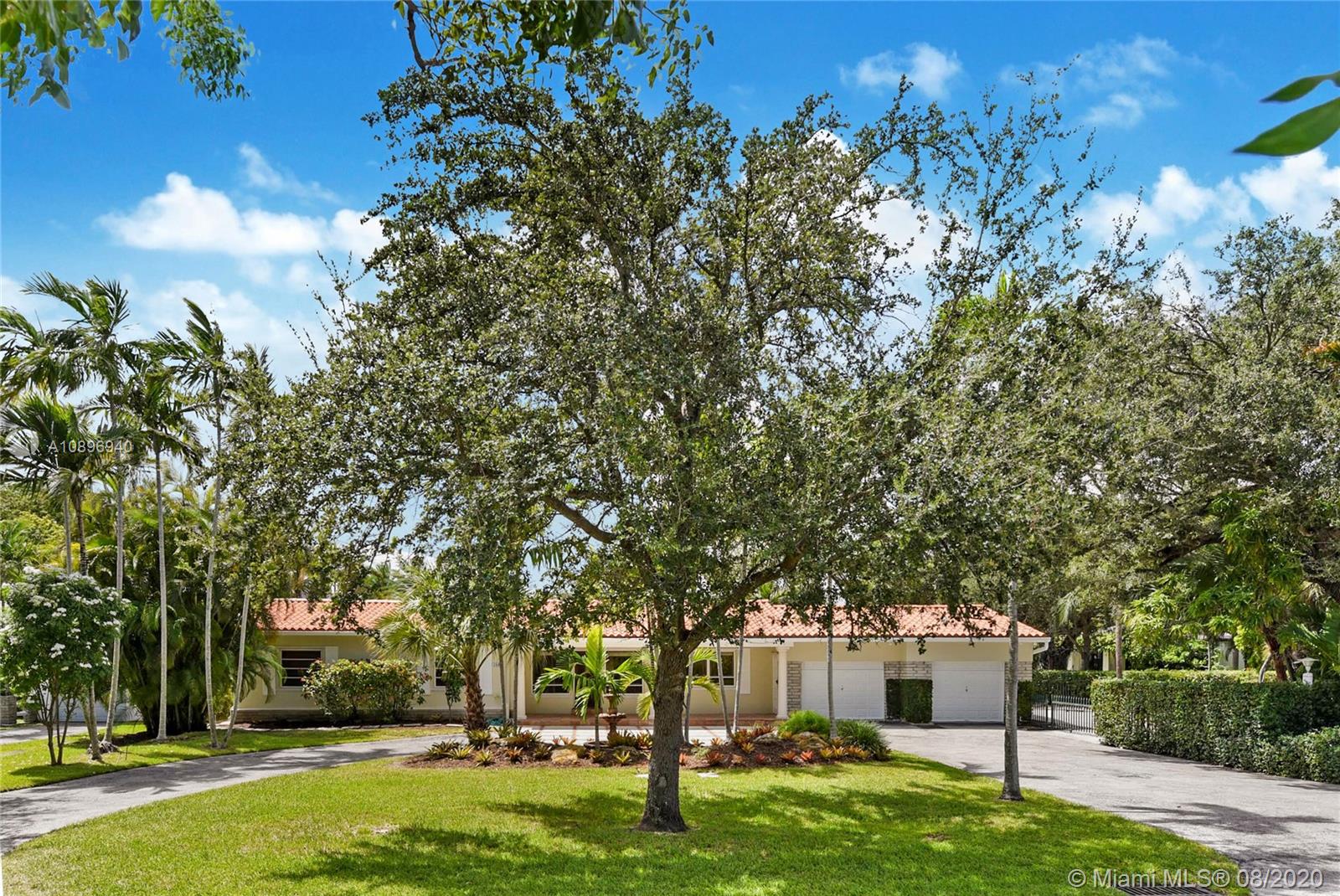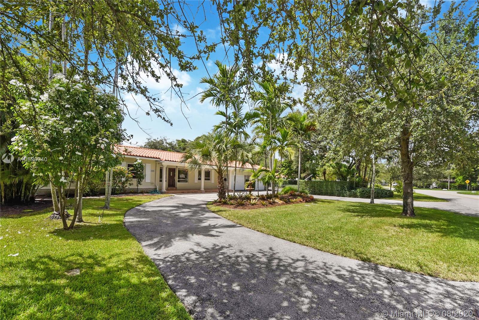 Location Location! Very spacious and bright home in the heart of desirable Coral Gables. This 5 bedroom 4 bath house sits on an extra large corner lot and possibilities are endless. Three skylights light up one of two family rooms where you can sit and look at the pool. The other family room is off the kitchen and is perfect for casual eating and to sit and watch TV. This house has a 3 way bedroom split for added privacy. Two bedrooms and a bathroom in one side. In another side, the master bedroom, master bathroom and smaller bedroom with a complete bathroom next to it. In the other side, there is one more bedroom that can double as an office or gym and another complete bathroom. This house also sports 2 one-car garages; one of them houses the washer and dryer. Make this house your home!