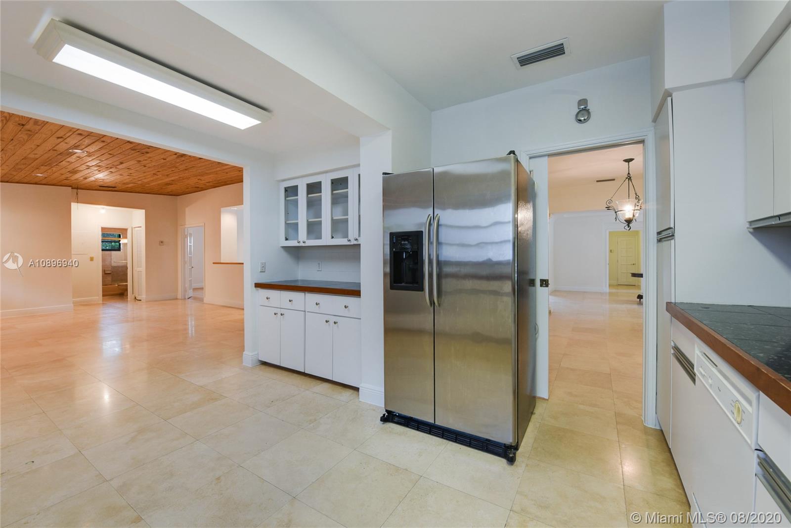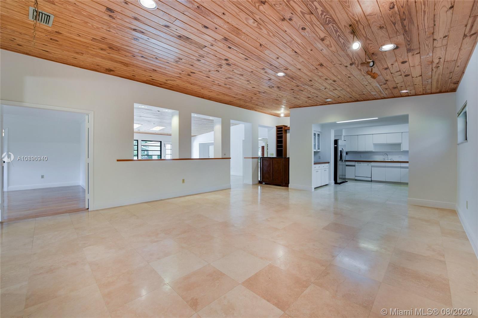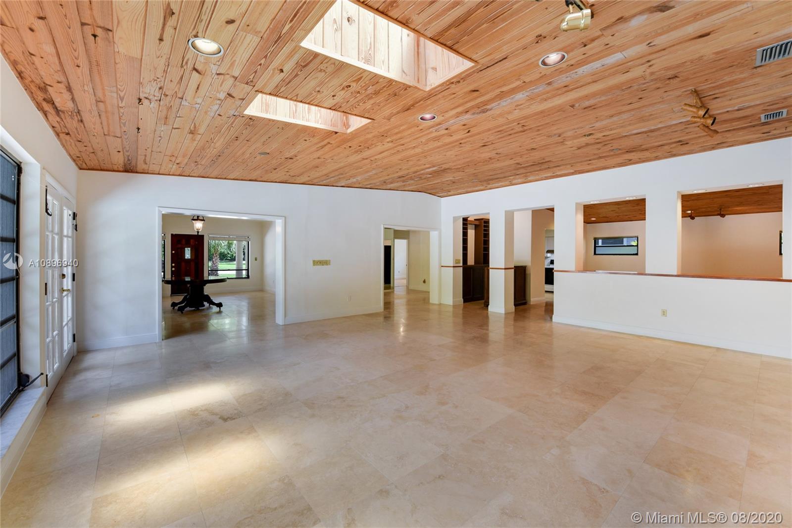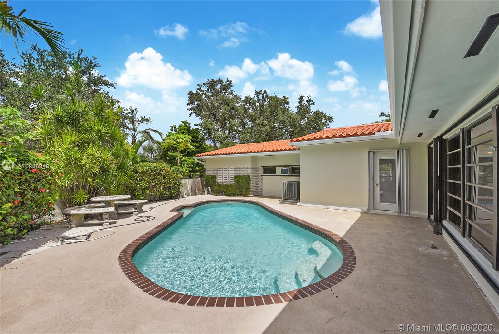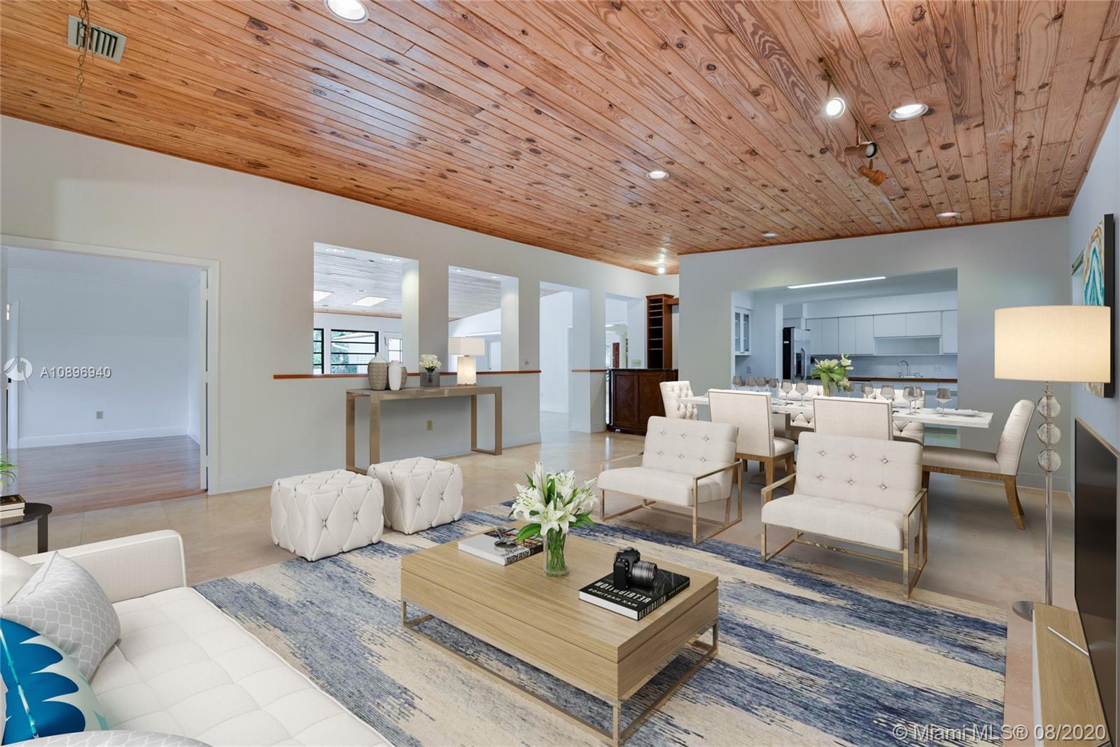 Location Location! Very spacious and bright home in the heart of desirable Coral Gables. This 5 bedroom 4 bath house sits on an extra large corner lot and possibilities are endless. Three skylights light up one of two family rooms where you can sit and look at the pool. The other family room is off the kitchen and is perfect for casual eating and to sit and watch TV. This house has a 3 way bedroom split for added privacy. Two bedrooms and a bathroom in one side. In another side, the master bedroom, master bathroom and smaller bedroom with a complete bathroom next to it. In the other side, there is one more bedroom that can double as an office or gym and another complete bathroom. This house also sports 2 one-car garages; one of them houses the washer and dryer. Make this house your home!