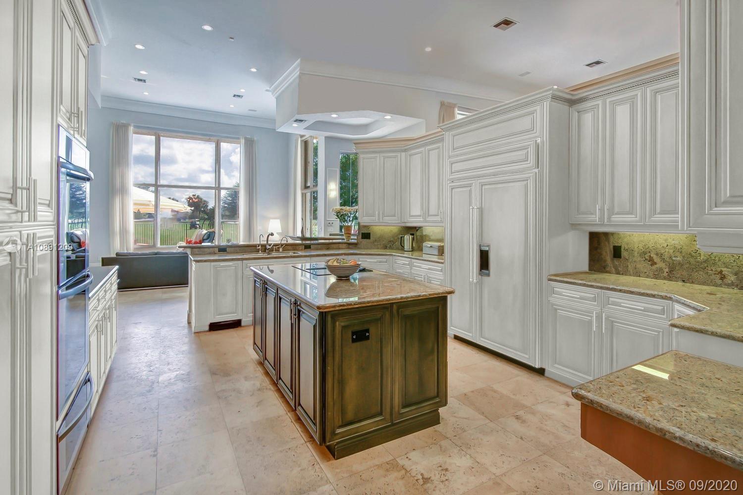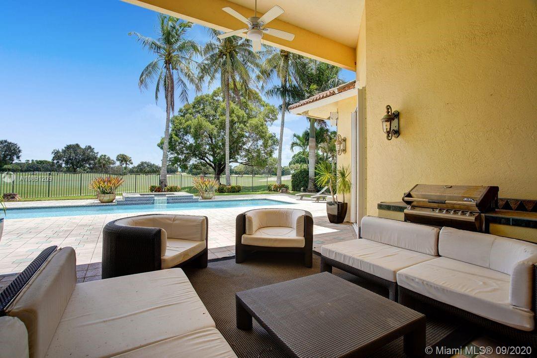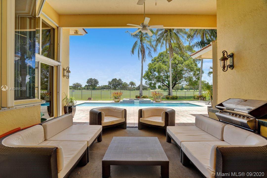 PRICE REDUCED Exclusive streets in Weston Hills Country Club with only 12 custom homes This sprawling ranch sits on an oversized 20,437 square foot lot with views to the 10th hole of The Tour Course. Swim in your heated lap pool and host BBQ in your private paver yard with large overhang, fully fenced and privacy hedged. Stunning curb appeal with your grand side entry garage. Enter this elegant home graced with gleaming marble and hardwood flooring throughout. Open concept living with soaring ceilings, custom fireplace, extensive crown moldings. Chef's delight kitchen with Miele appliances, center island, and wall oven. Primary bedroom with his and her marble baths plus den/exercise room. The secondary bedroom wing features ensuite bedrooms. Closets all professionally organized.