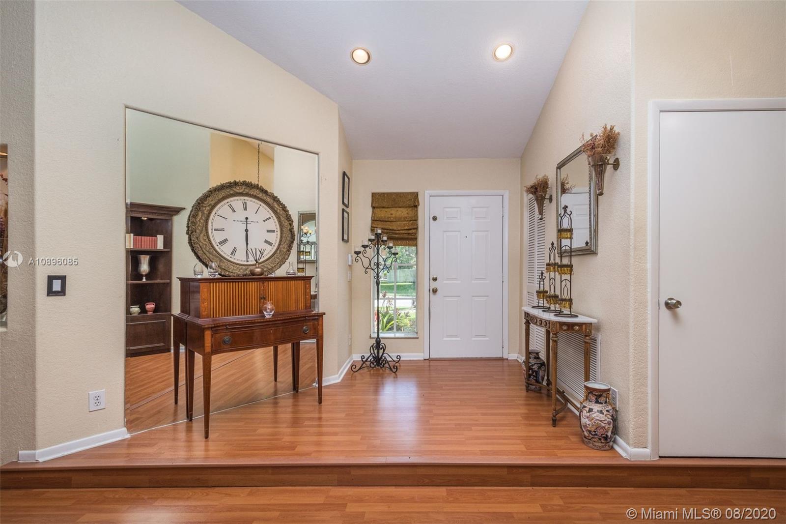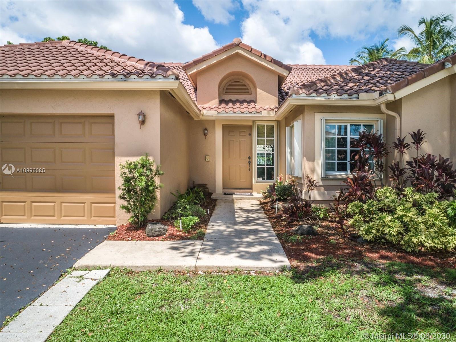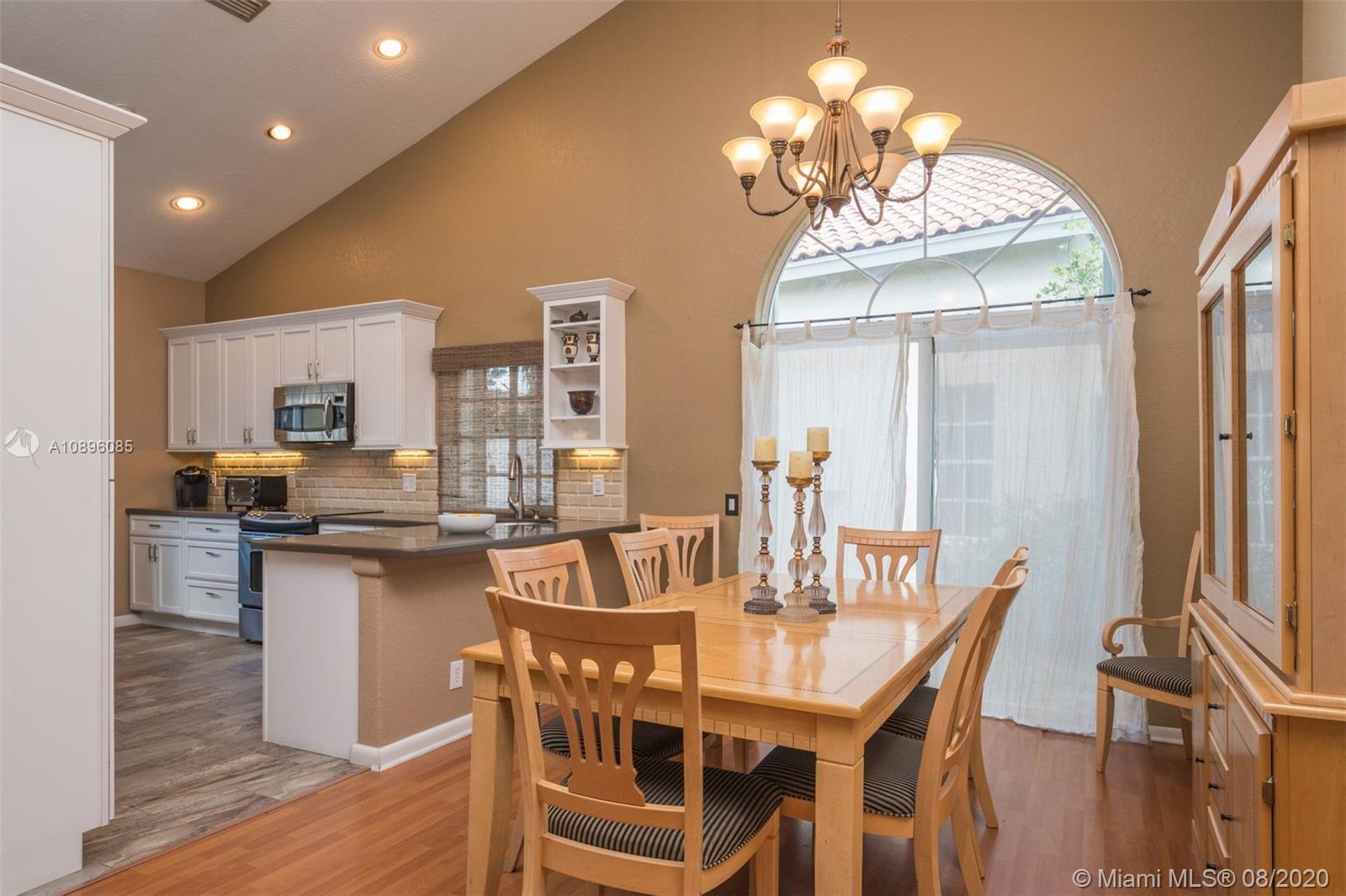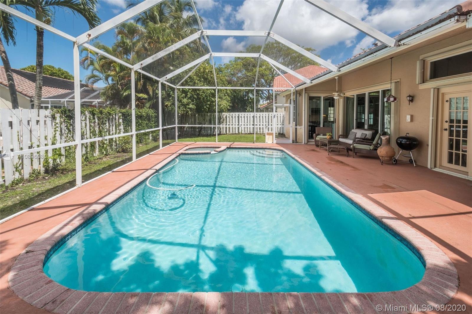 This beautiful 3 bedroom home w/hardwood floors throughout main living area and newly renovated kitchen, is perfect for a family who loves to entertain. With views of the sparkling pool from every vantage point and a screened-in porch, enjoy dining and relaxing with ample outdoor space. The split floor plan has the main bedroom privately situated, complete w/a spacious ensuite bathroom, dual sinks and large closets. An open-air feeling, this home has a combined living and dining room concept. Special features include: Newer roof (2013), brand new gutter system, accordion shutters, hurricane-proof garage door, new sprinkler system, new electric panel and custom-made infant pool fence. Quiet tree-lined neighborhood on cul-de-sac. Gated community and A+ schools. This is the perfect home!