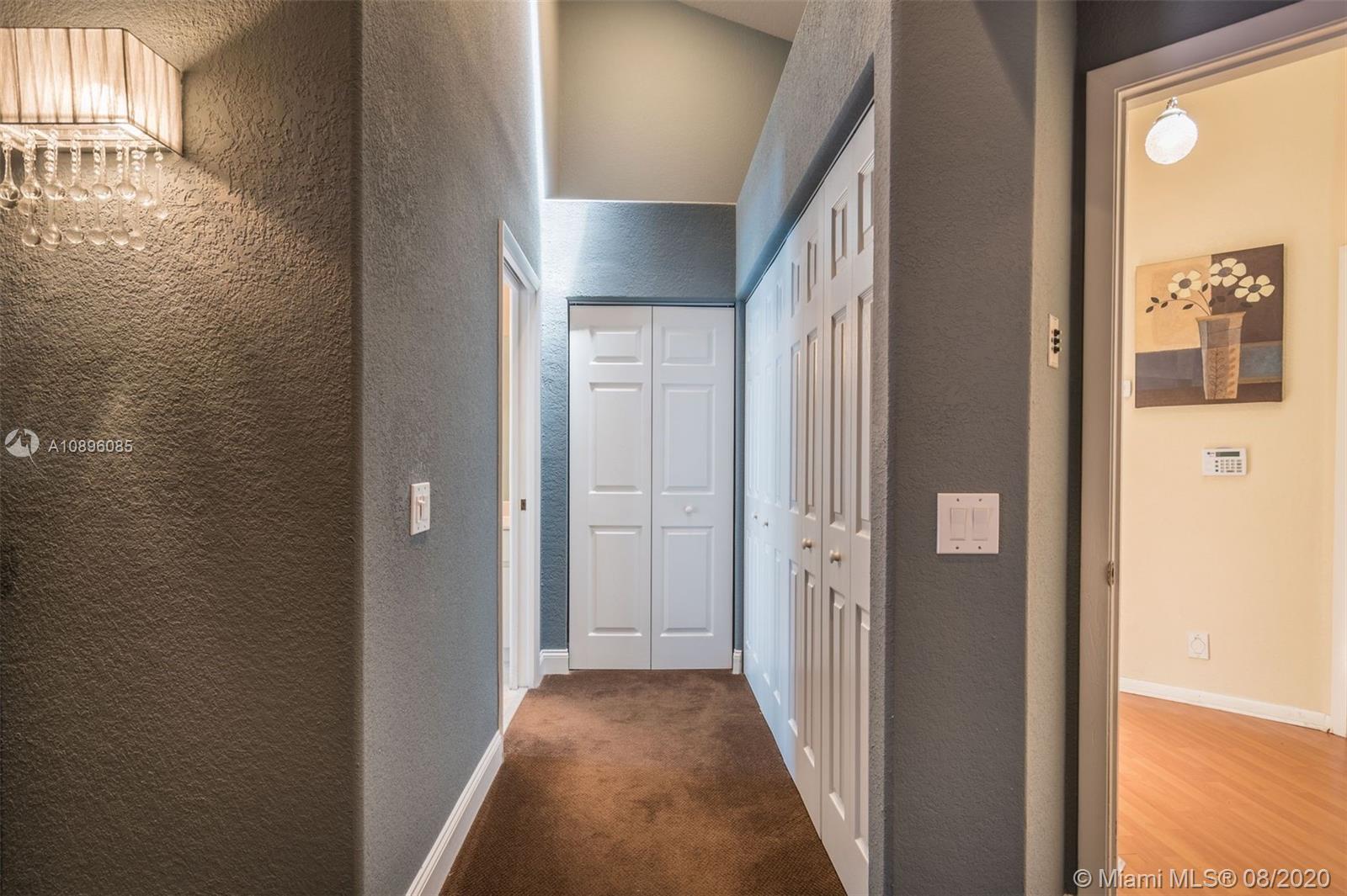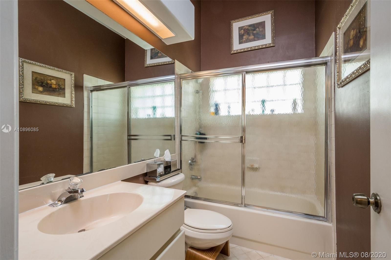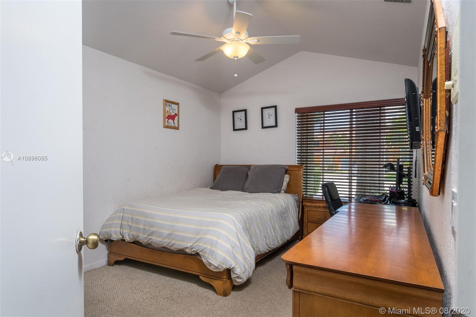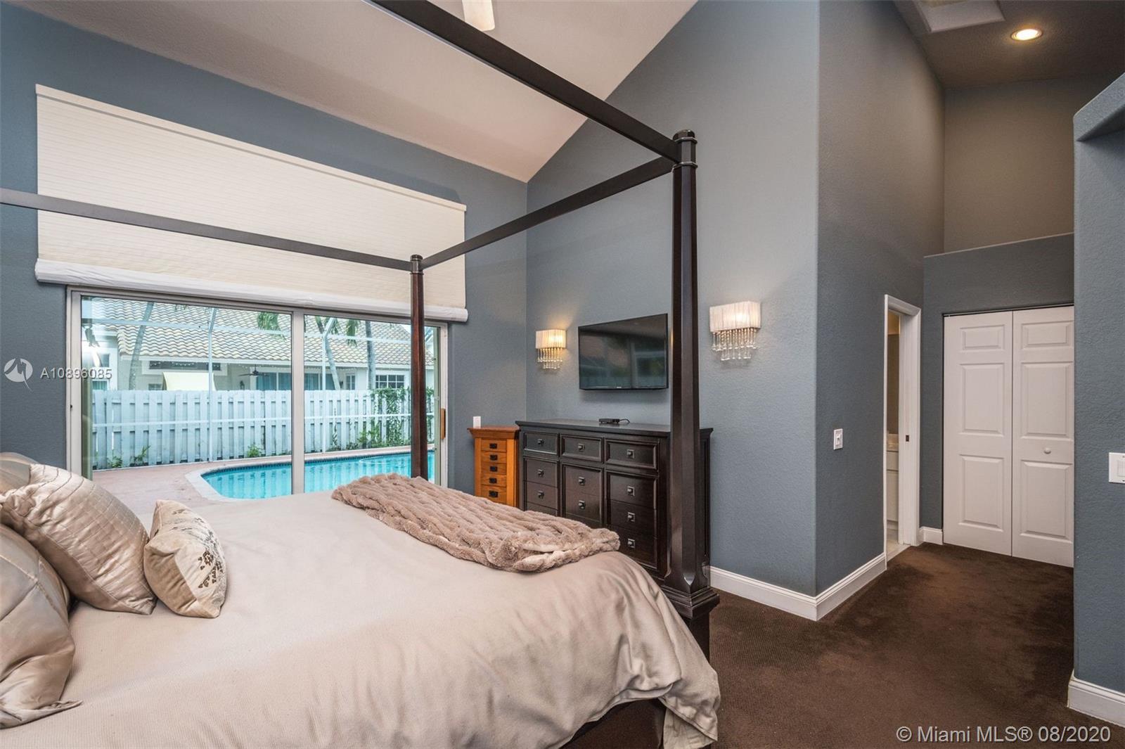 This beautiful 3 bedroom home w/hardwood floors throughout main living area and newly renovated kitchen, is perfect for a family who loves to entertain. With views of the sparkling pool from every vantage point and a screened-in porch, enjoy dining and relaxing with ample outdoor space. The split floor plan has the main bedroom privately situated, complete w/a spacious ensuite bathroom, dual sinks and large closets. An open-air feeling, this home has a combined living and dining room concept. Special features include: Newer roof (2013), brand new gutter system, accordion shutters, hurricane-proof garage door, new sprinkler system, new electric panel and custom-made infant pool fence. Quiet tree-lined neighborhood on cul-de-sac. Gated community and A+ schools. This is the perfect home!