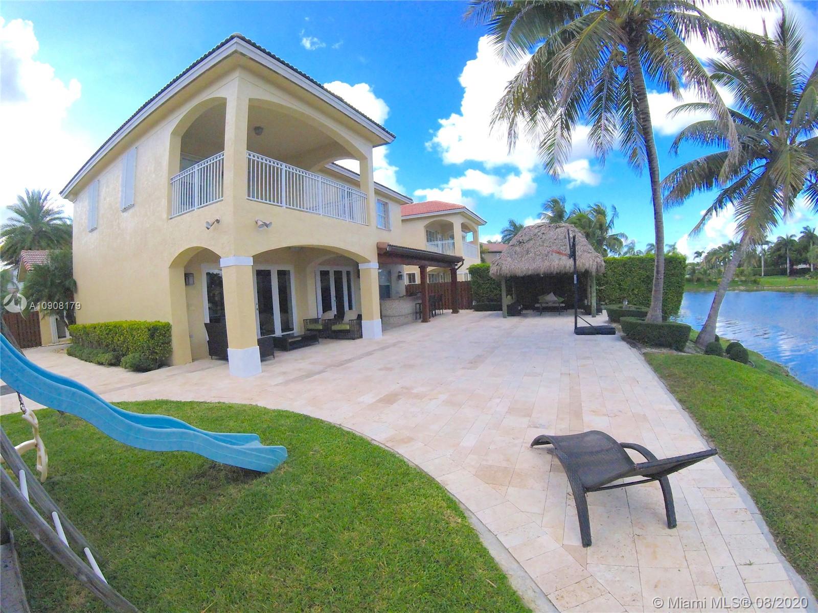 Located in one of the most prestigious communities of southern florida, Is this beautiful home of 11,488 Sq.Ft Lot with main Lake of Doral Isles view, in Doral. 6 Rooms, 5 1/2 baths; Large decorating patio with marble, tikihut, BBQ area with granite counter top, beautiful garden with lake shore, park for children, and the potential to add a pool. This beautiful house also has Italian cuisine, marble on the lower floor and Brazilian wood on the top floor. Remodeled double garage and capacity for 3 more cars on the outside. Private Security Patrol 24 hours. Make your appointment, come and enjoy the breathtaking view of this spectacular property, visit the incredible clubhouse, the best in South Florida. Make your offer. This is one of the very few properties of this style in Doral, FL.