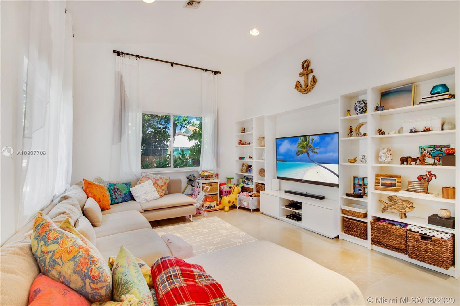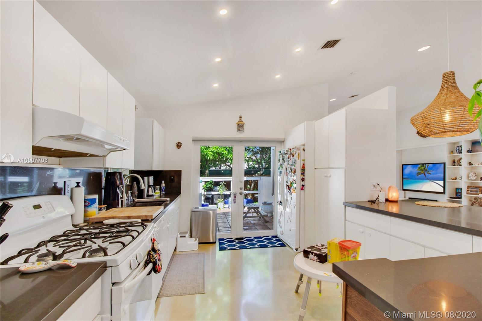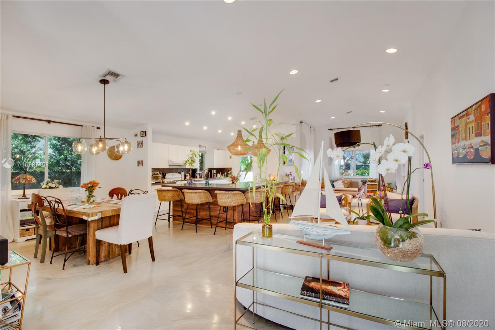 There is nothing else like this on the market in Surfside! Built in 1992, this modern, custom-renovated home is significantly elevated and has wide open living areas and soaring ceilings. There are 3 bedrooms, 3 renovated bathrooms, and a garage that's currently used as an office and could be converted into a 4th bedroom. The large kitchen has a huge bar, plenty of cabinets, and high quality appliances. There is beautiful polished concrete flooring throughout the living areas & wood laminate in the bedrooms. The spacious master suite has a walk-in closet & double sinks. The backyard is perfect for outdoor entertaining & has room for a pool. Walk to the beach, Surfside community center/pool, Bal Harbour Shops, Four Seasons Surf Club, shopping & dining. Zoned for A-rated Bay Harbor schools.