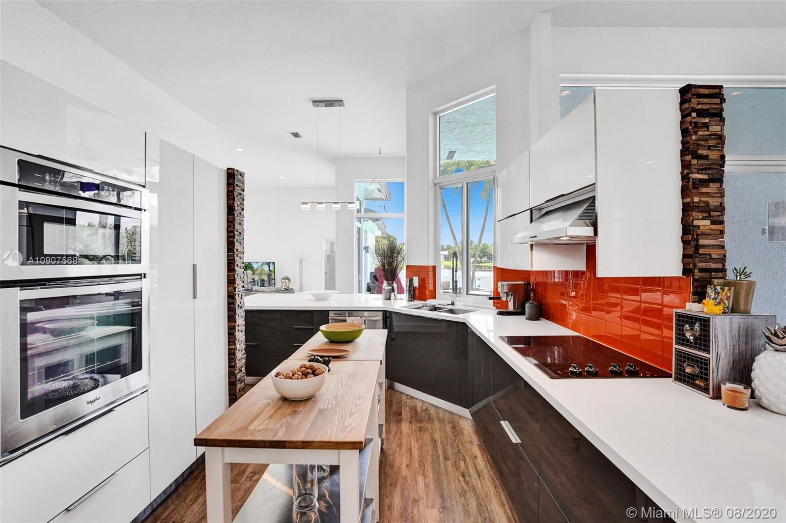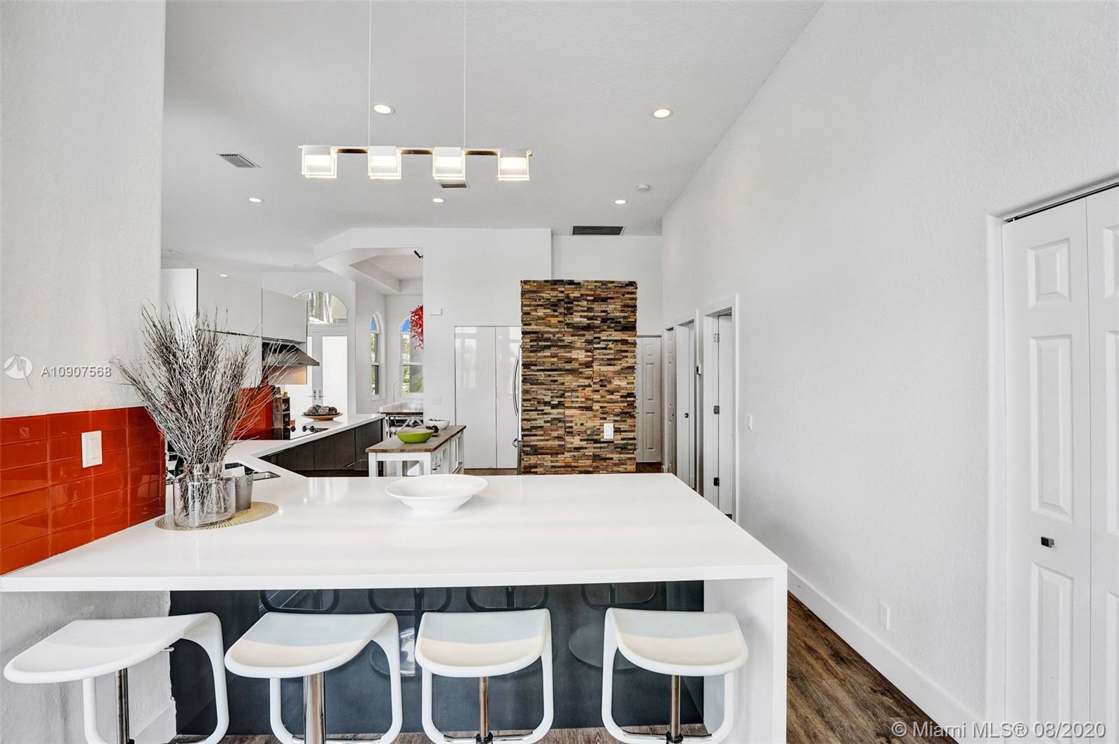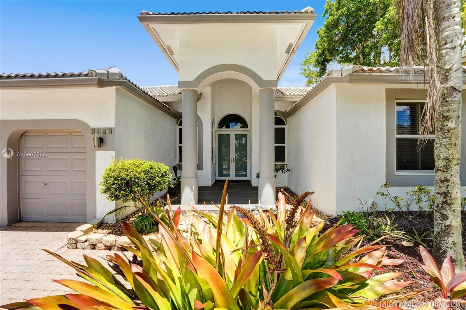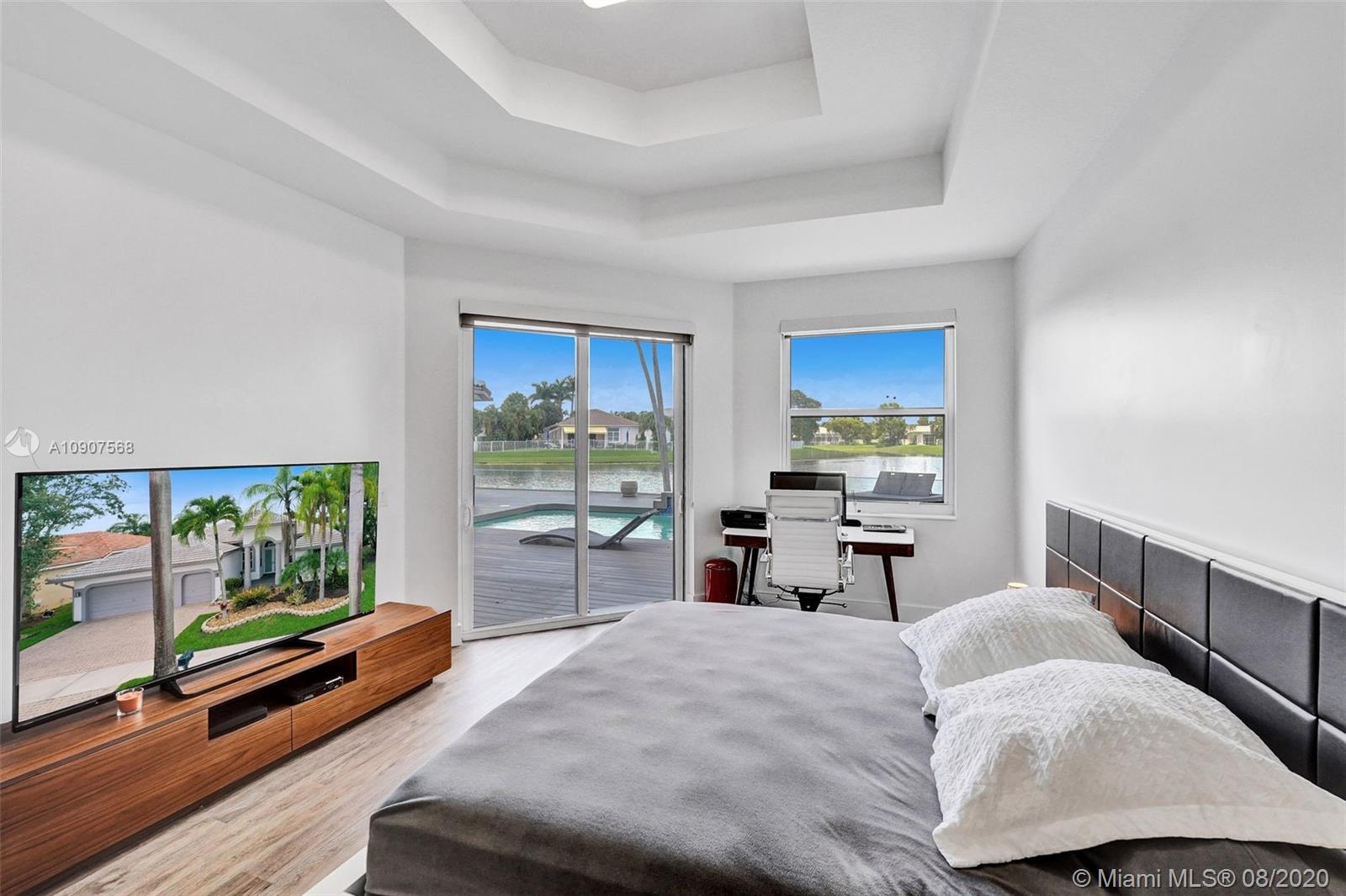 YOU FOUND IT! Weston Hills priced to sale one story home on a waterfront premium lot. Originally used as a developer's model home and as a vacation home since it was remodeled from top to bottom in 2018. 5 bed/4 bath on a triple split floor plan with amazing water views and 3 car garage. The gorgeous open concept kitchen features a huge custom made white quartz double counter top and modern white/grey dual tone cabinets complemented by a glass orange back splash. New waterproof flooring in the entire house and the bathrooms featuring no step down walk-in showers, main bath with double ceiling shower heads and barn glass shower door. Prepare to be amazed with a unique style pool deck made with maintenance free engineered wood and resort style glass perimeter fence. Impact windows and doors