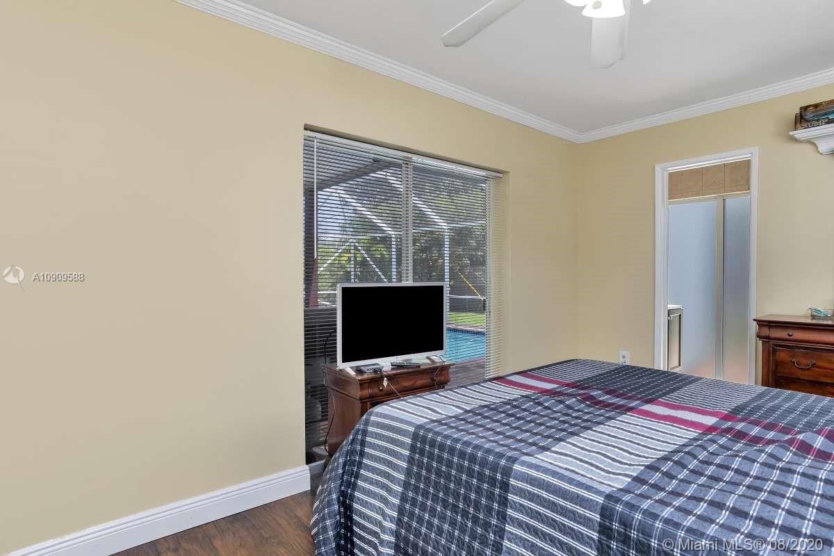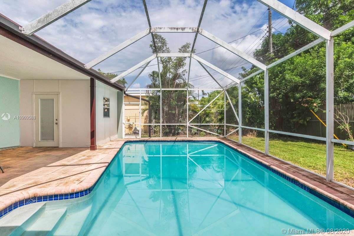 Enjoy Florida Life in this 4 Bed (Garage Conversion is 4th Bedroom & Iis Tiled) 2 Bath 1 Story POOL Home in Central Miramar-INTERIOR FEATURES: Custom Dark Cherry Wood Cabinets/Granite Counters/Stainless Appliances in the Kitchen (W/pass thru to Pool Area)•Wood Floors in All Bedrooms•20" Tile in Common Areas•6" Baseboards•Crown Molding Throughout•Custom Mirrored Walls•Interior Laundry•BRAND NEW A/C System!•EXTERIOR FEATURES: Screened Pool w/Oversized 12x12 Paver Pool Deck•Fenced Yard•Composite Fascia Boards•Close to shopping and entertainment•