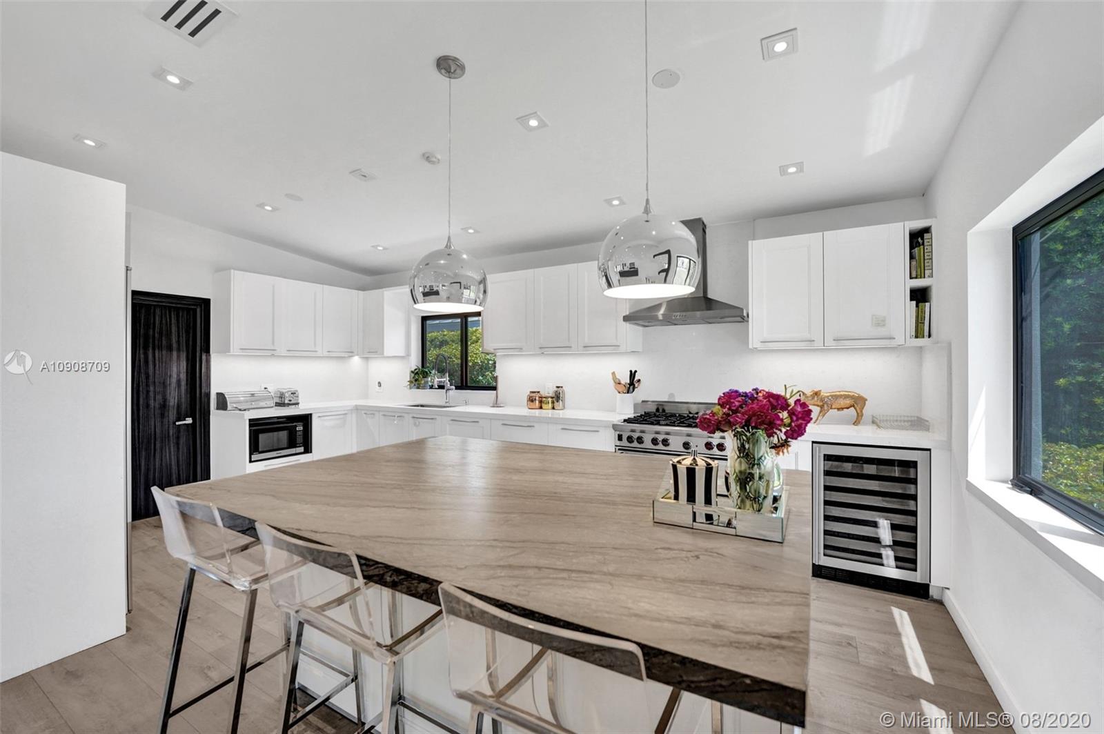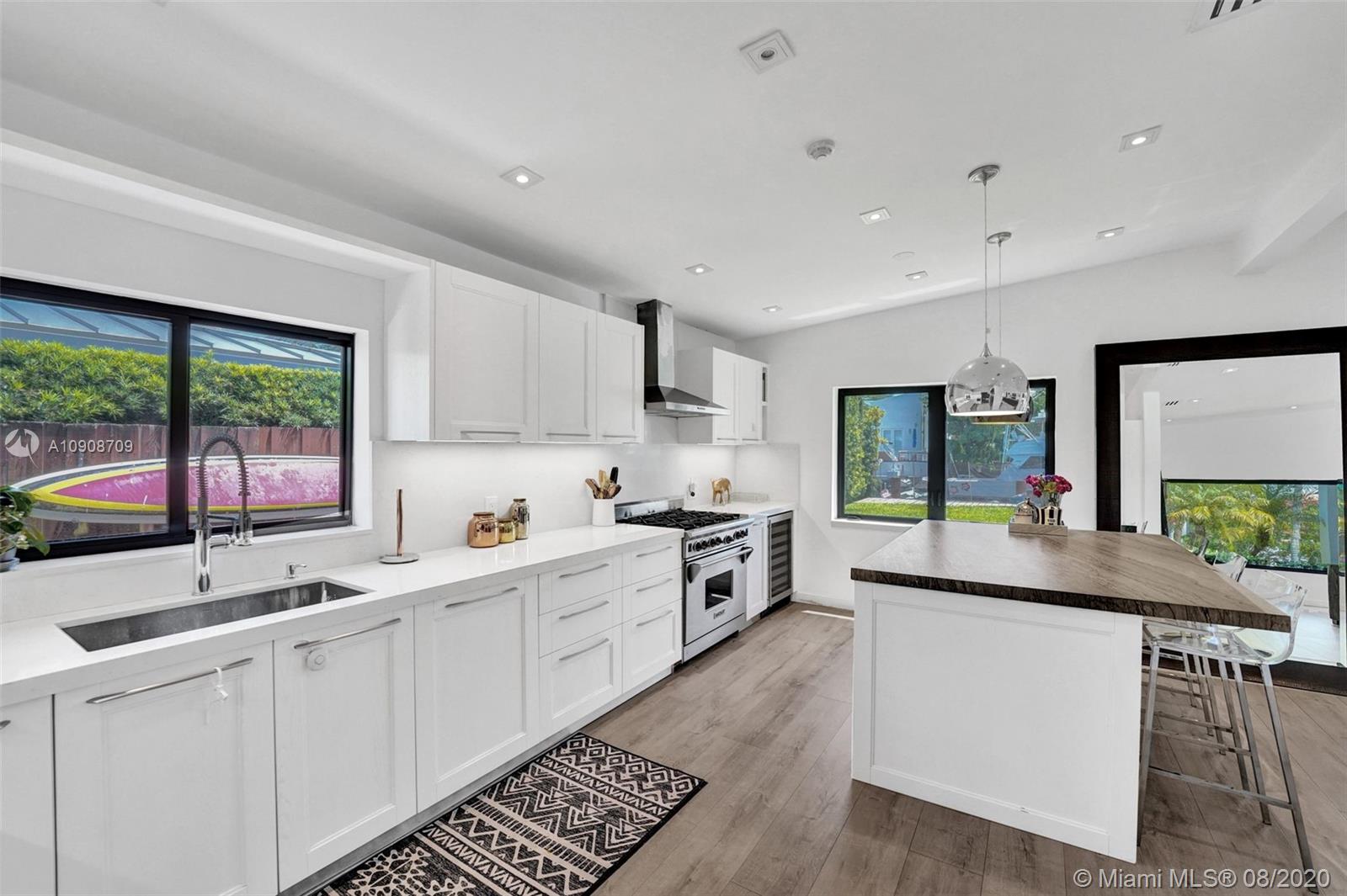 Immaculate waterfront home in Keystone Point. No expenses were spared in this turnkey home with 3BR/2BA. Light-filled home with w/ high ceilings and open layout. Beautiful and modern chef's kitchen WITH Subzero and Wolf stainless steel appliances. In the backyard, you will find a nice size patio and a pool, perfect for entertaining, and a 75' dock. Quick, direct ocean access on wide canal no fixed bridges to Bay. Desirable location, near beaches, Aventura Mall, and more.