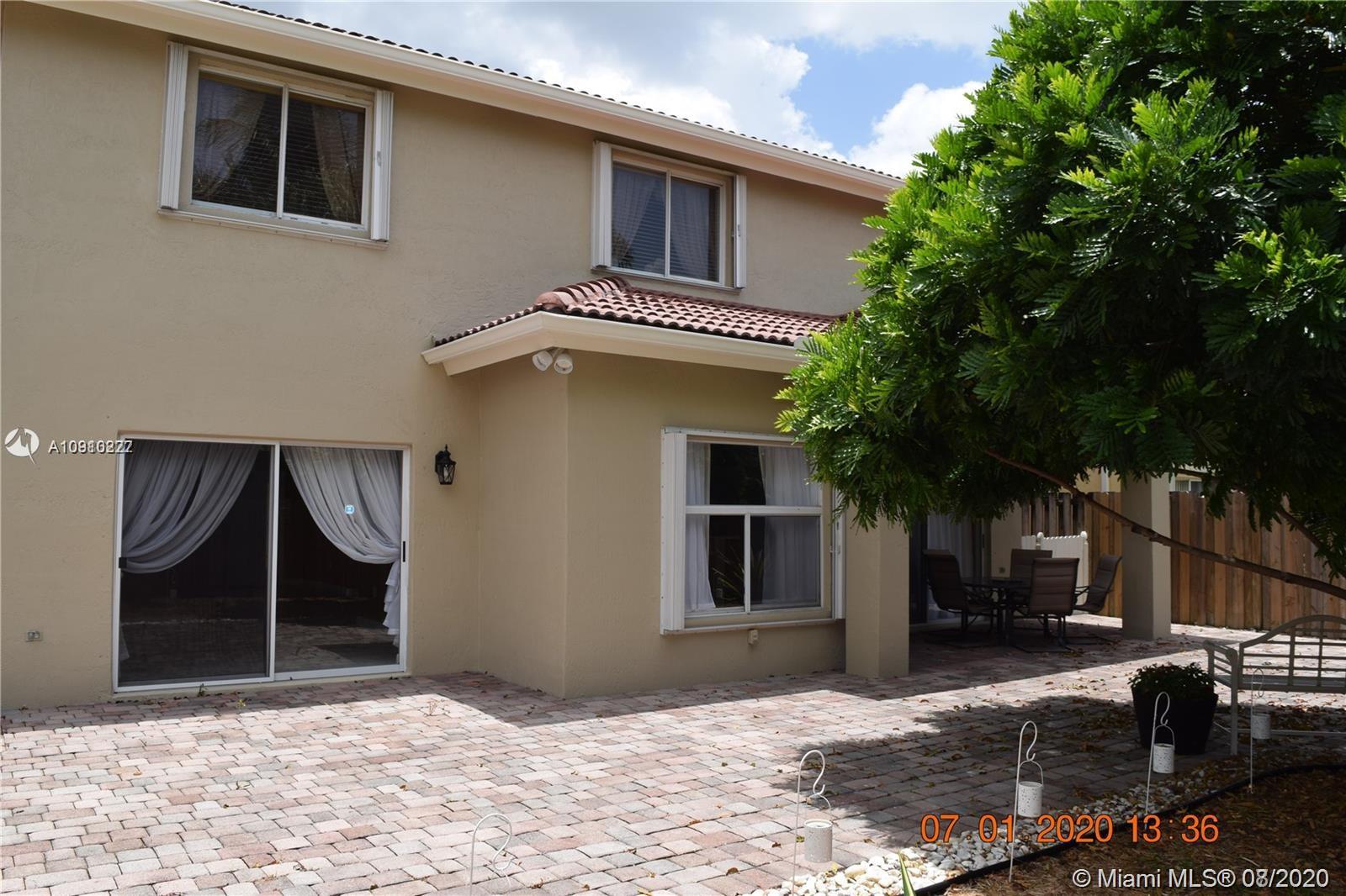 Gorgeous and spacious home in one of the most sought after communities in Doral with tree lined streets; Doral Meadows. It features 3 bedrooms, 2.5 baths, 2 story home with loft (possible 4th bdr.), paved driveway and 2 car garage. Pristinely maintained with many upgrades-Stainless steel appliances, Quartz counter tops, etc. Updates- New A/C units, freshly painted exterior, cleaned roof, manicured lawn and backyard, etc. Ready to move in! Bring your toothbrush! Doral Meadows is a very private and tranquil neighborhood, 24 hour guard gated community. Low maintenance fees include landscaping, community pool and clubhouse. Yard is big enough for a pool!