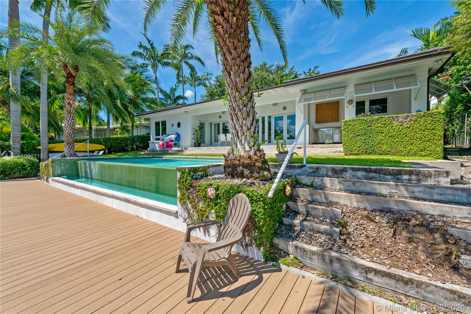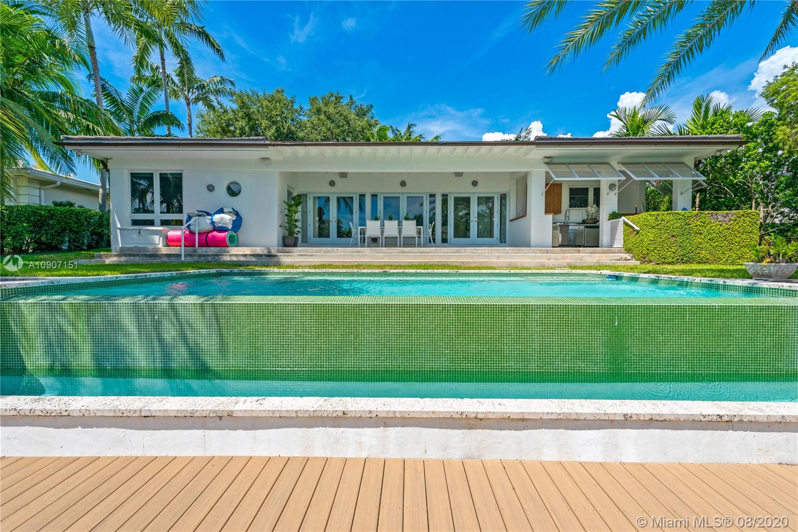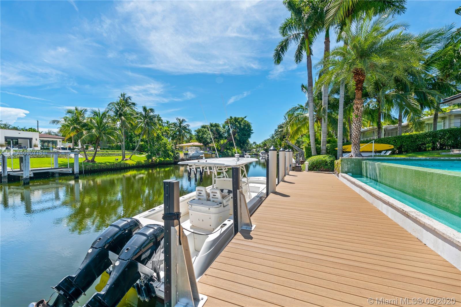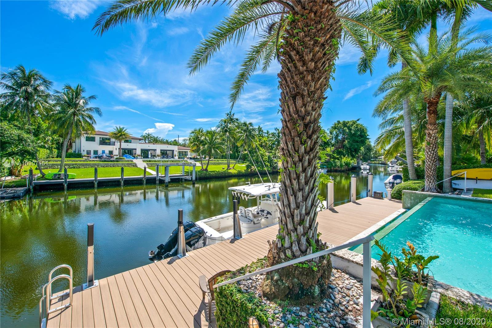 The waterfront home you’ve been waiting for is now available! Situated on a wide portion of the Mahi waterway in the South Gables, this one-story home was beautifully updated indoors and out. An open concept floorplan allows for water views from almost every room in the house, maximizing enjoyment of the waterfront lifestyle. A new kitchen features large chef’s island, custom cabinetry & Thermador appliances, including a gas stove. Wall-to-wall glass doors open to the covered patio, built-in summer kitchen and sparkling infinity pool that appears to flow right into the canal. 3 bedrooms & 3 full bathrooms, including a master suite w/private sitting room overlooking the water. Brand new dock with concrete caps to accommodate a boat lift, impact windows & doors throughout, 2 car garage.