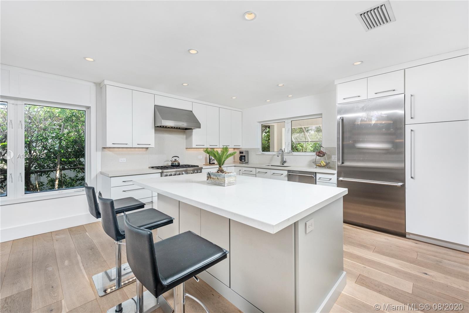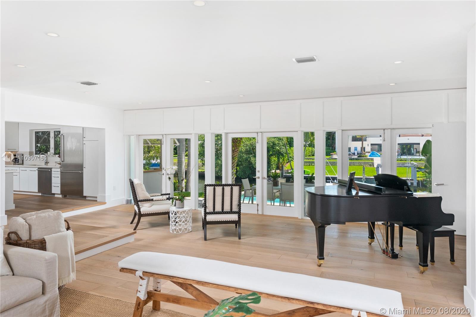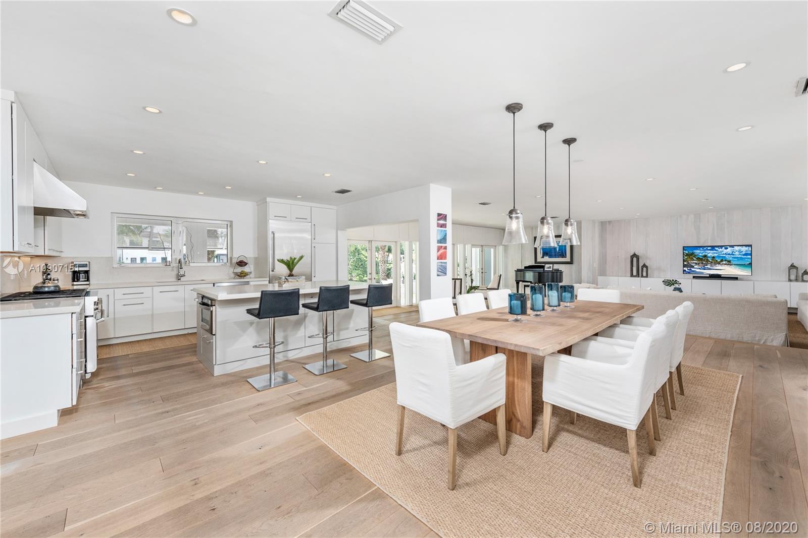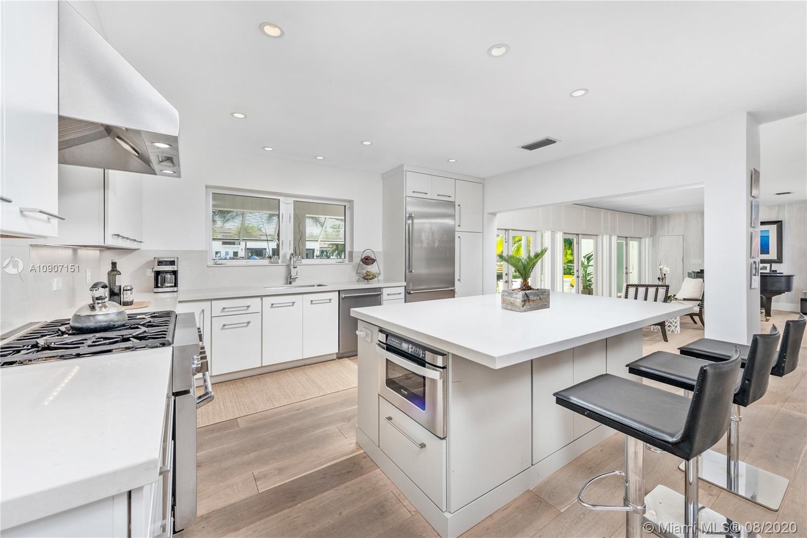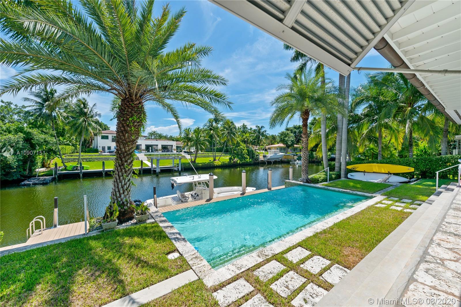 The waterfront home you’ve been waiting for is now available! Situated on a wide portion of the Mahi waterway in the South Gables, this one-story home was beautifully updated indoors and out. An open concept floorplan allows for water views from almost every room in the house, maximizing enjoyment of the waterfront lifestyle. A new kitchen features large chef’s island, custom cabinetry & Thermador appliances, including a gas stove. Wall-to-wall glass doors open to the covered patio, built-in summer kitchen and sparkling infinity pool that appears to flow right into the canal. 3 bedrooms & 3 full bathrooms, including a master suite w/private sitting room overlooking the water. Brand new dock with concrete caps to accommodate a boat lift, impact windows & doors throughout, 2 car garage.