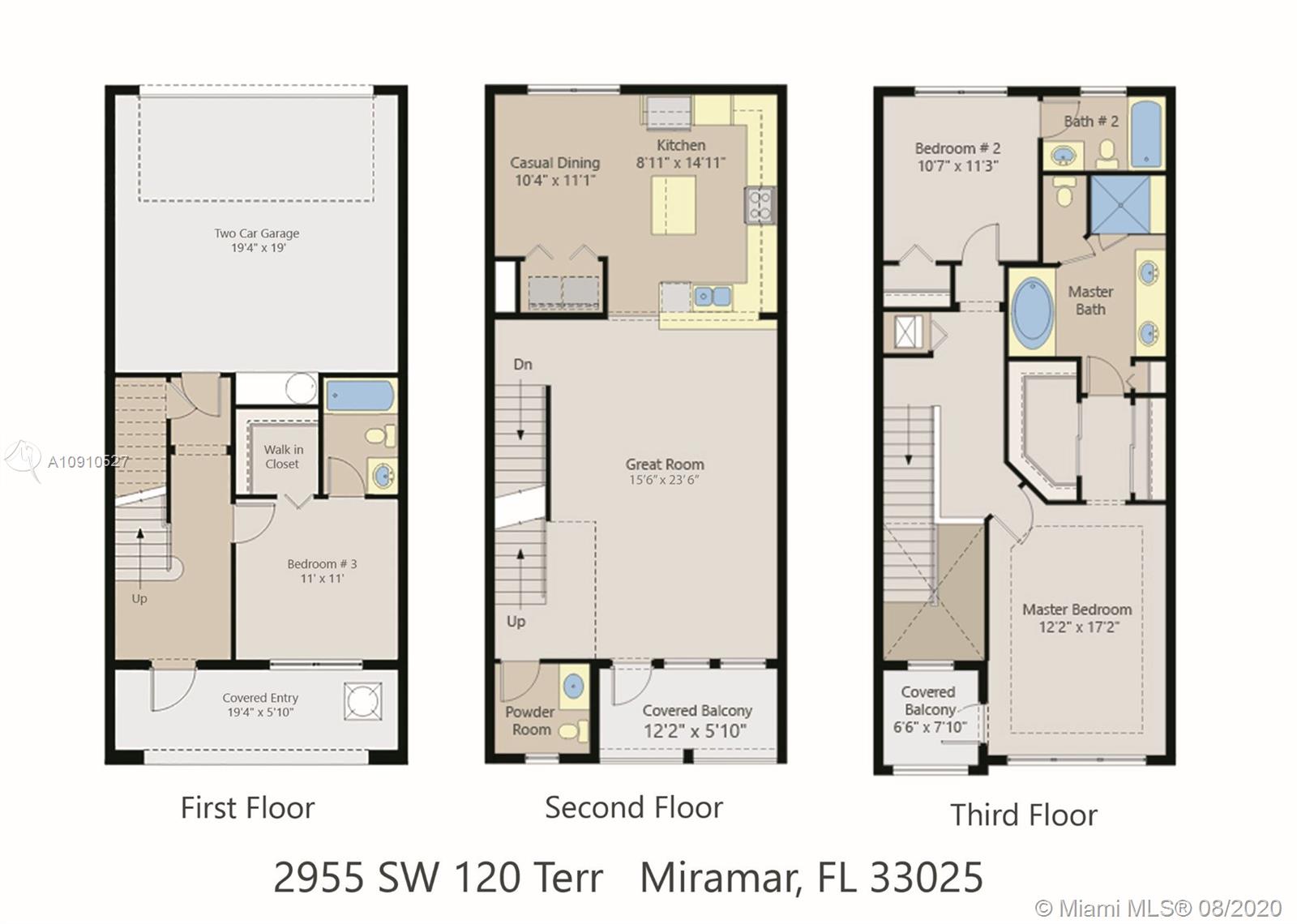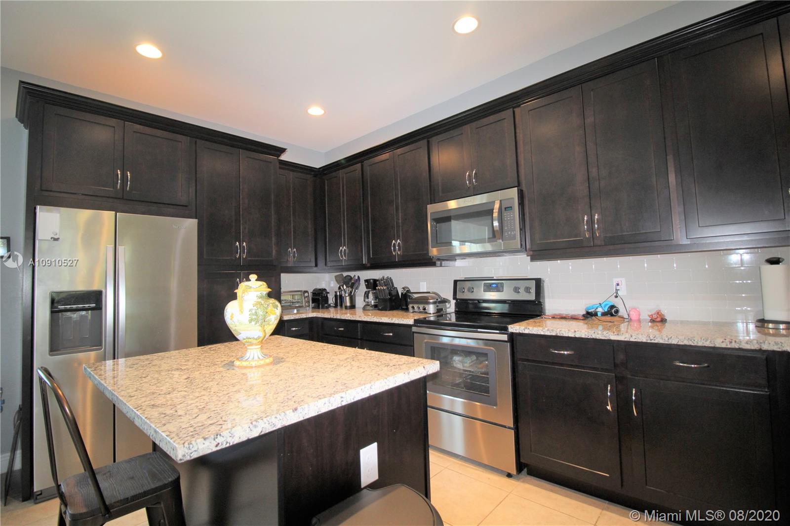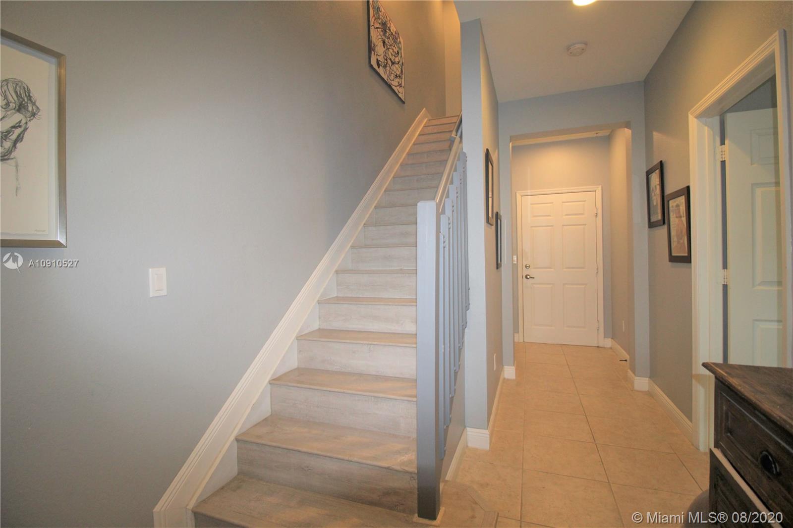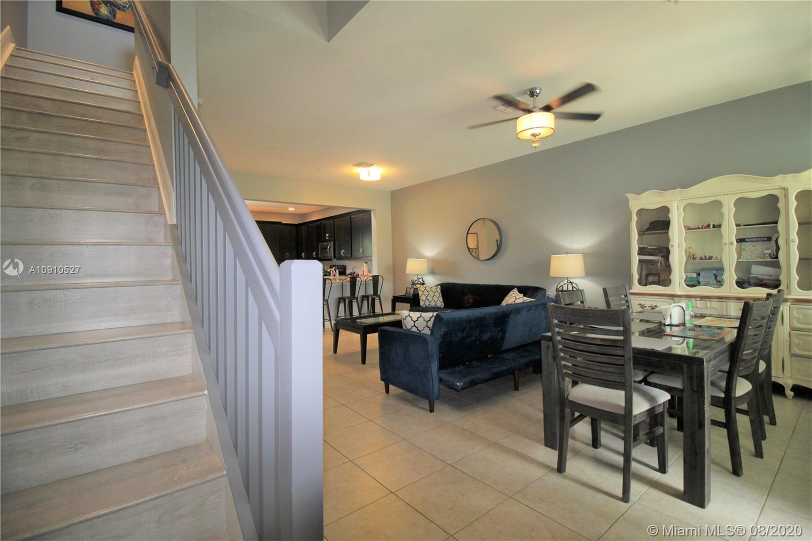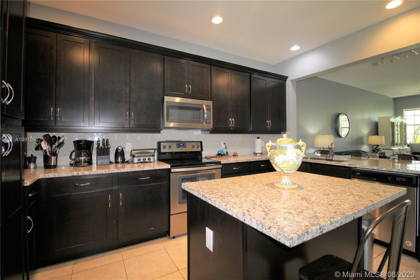 Beautiful Tri-Level Townhouse in Montclair at Miramar, Spacious Home with 2 Car Garage and Driveway for 2 cars. 42" High Kitchen Cabinets, Stainless Steel Appliances, Designer Kitchen Back-splash, Kitchen Island. Ceiling Fans Through out the house, Ring Door Bell, Solar Shades. Centrally located, 5 min to Florida Turnpike, 10 min to I-75, 10 min to Shopping malls and Parks. Community Pool, Gym, 3 playgrounds, Jogging path around lake. Association includes Cable, Internet, Security Alarm System.