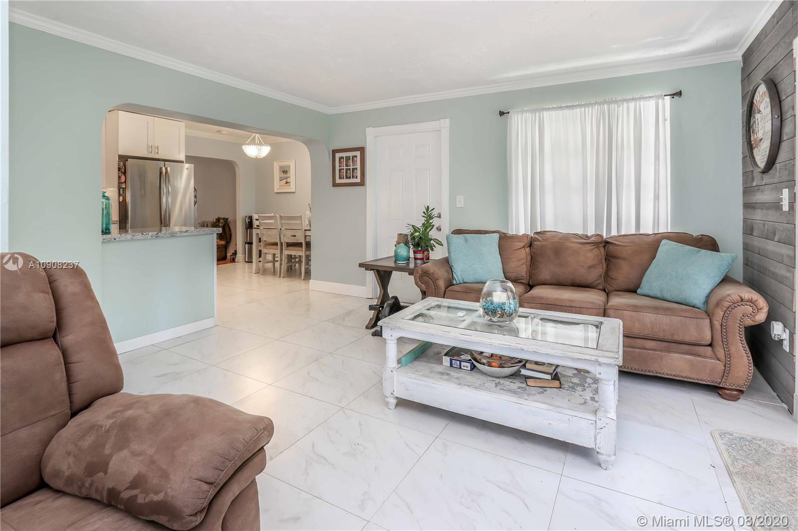 Beautiful spacious open concept 3/2 beach house on a tree lined street, East of US1 features warm foyer entrance w/shiplap accent wall. Fully updated kitchen with subway title, New Refrigerator, Commercial grade gas stove, Dishwasher, microwave, Farm house sink, Washer & Dryer, Gas InstaWater Heater, New A/C. Beautiful 20" Italian tile flows from kitchen into family room with shiplap accent wall. Kitchen dining area has beautiful matching beach glass light fixtures. Livingroom & bedrooms have restored hardwood floors. Hurricane panels. New stamped concreate driveway. Oversized lot, large backyard is fenced in, beautifully landscaped w/ Large deck perfect for entertaining, room for a pool, Large shed w/loft. Close to Hollywood Beach Broad walk, Fort Lauderdale Airport, shopping, & casino