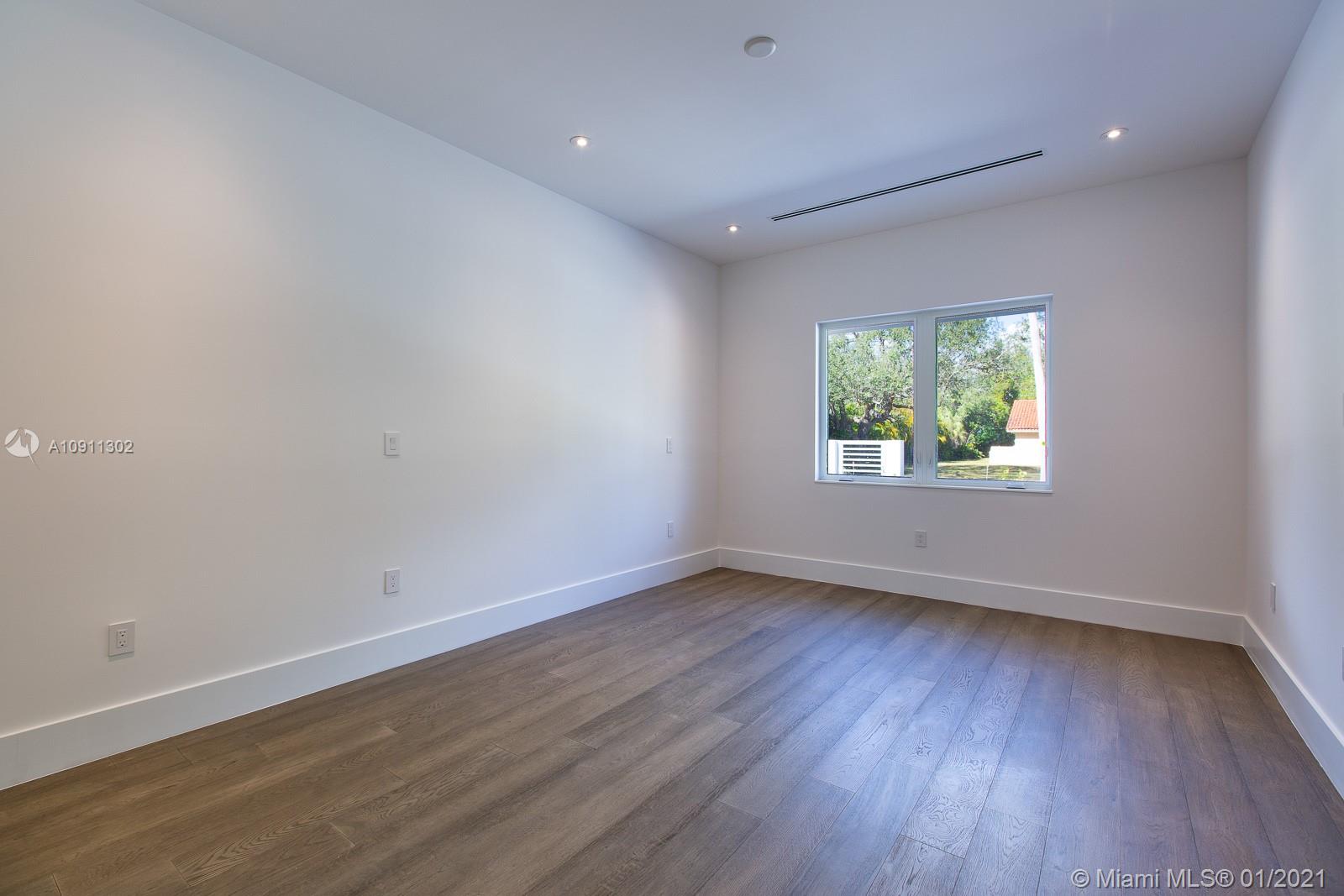 Brand new in Pinecrest. This 6 bedrooms 6 1/2 bathrooms home on an over 35,000 SF corner lot. Walk into 22' high ceilings overlooking the pool. Italian kitchen with Thermador appliances, gas cooktop, water heaters and washer. Italian porcelain tile in all common areas. Wood floors in bedrooms. All en suite bedrooms with walk-in-closets. Master bedrooms has sitting area. His and Hers Closets with large shower and freestanding tub. Glass-encased wine cellar, walk-in kitchen pantry, laundry room, full cabana bath, Trane AC Units. Home has been pre wired for home automation.