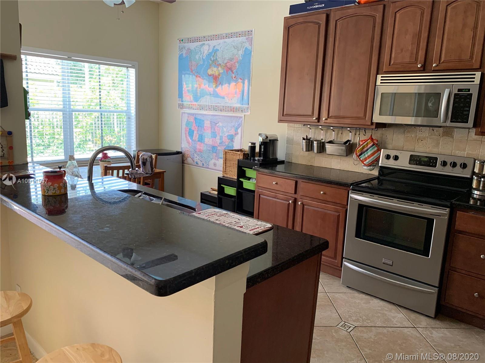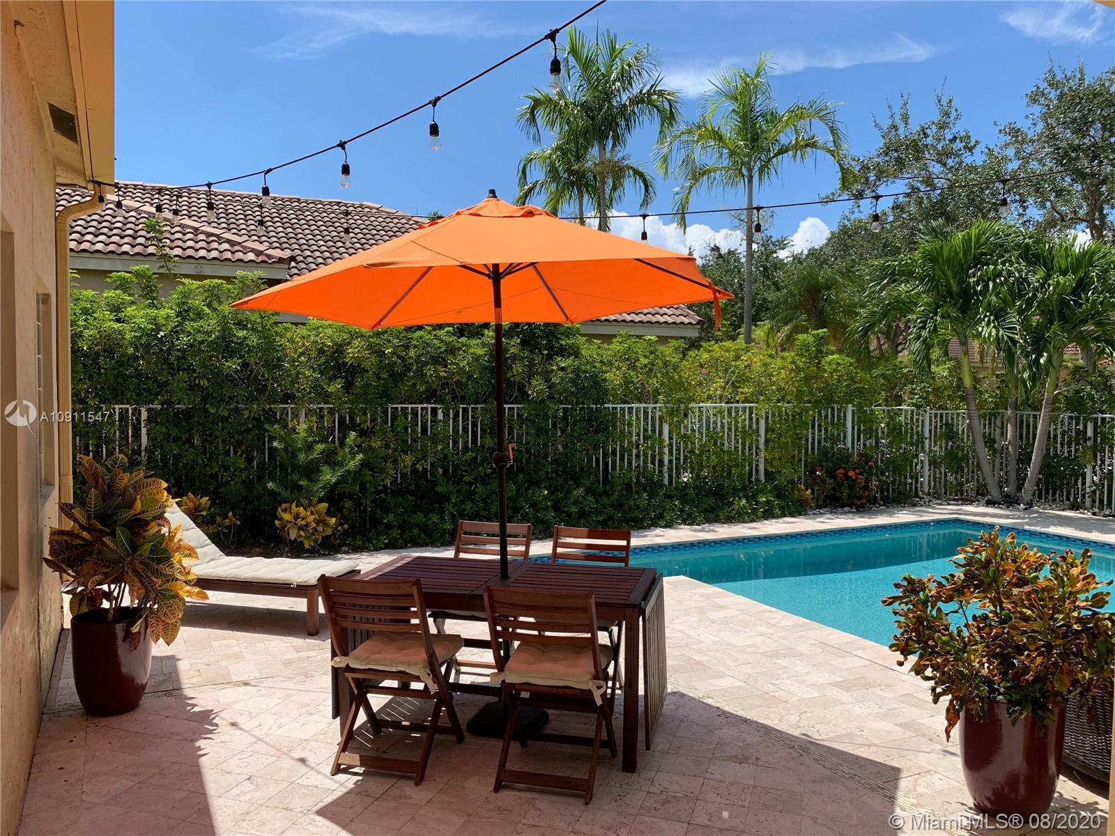 Gorgeous 3bed/2bath in a corner lot with a pool, in sought after Weston! Come see this beauty, remodeled kitchen with granite counters, stainless steel appl, remodeled baths, a/c unit 5 years old, water heater 4 years old. Come relax in this soothing backyard with a sparkling pool with salt water system (non chlorine), and travertine marble deck! Enjoy life in this quiet gated community! Easy to show.