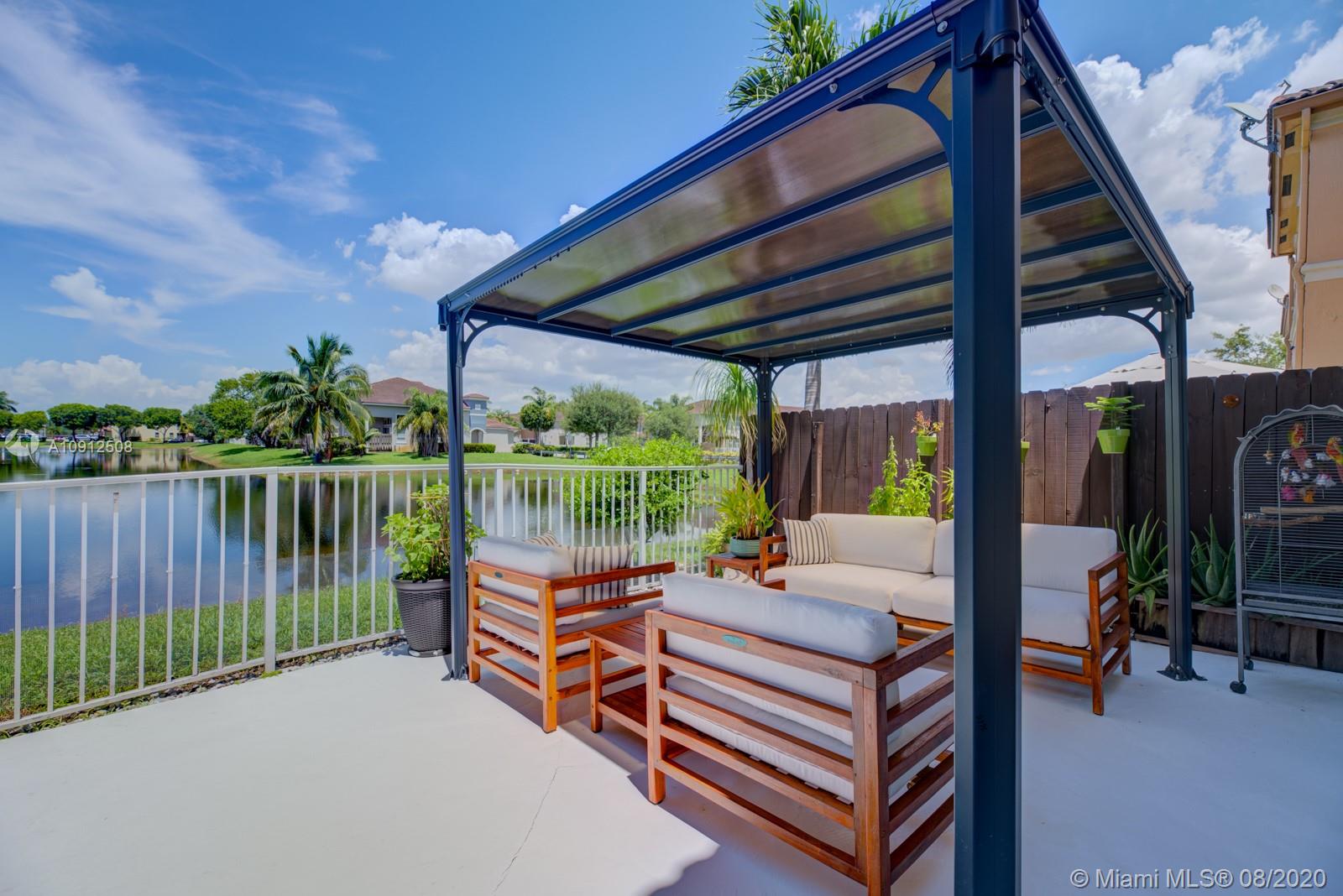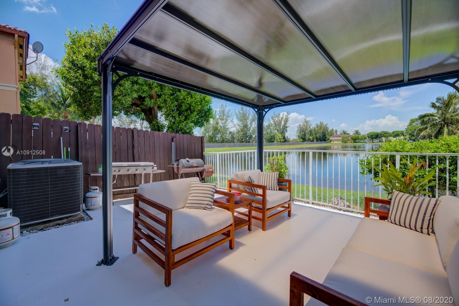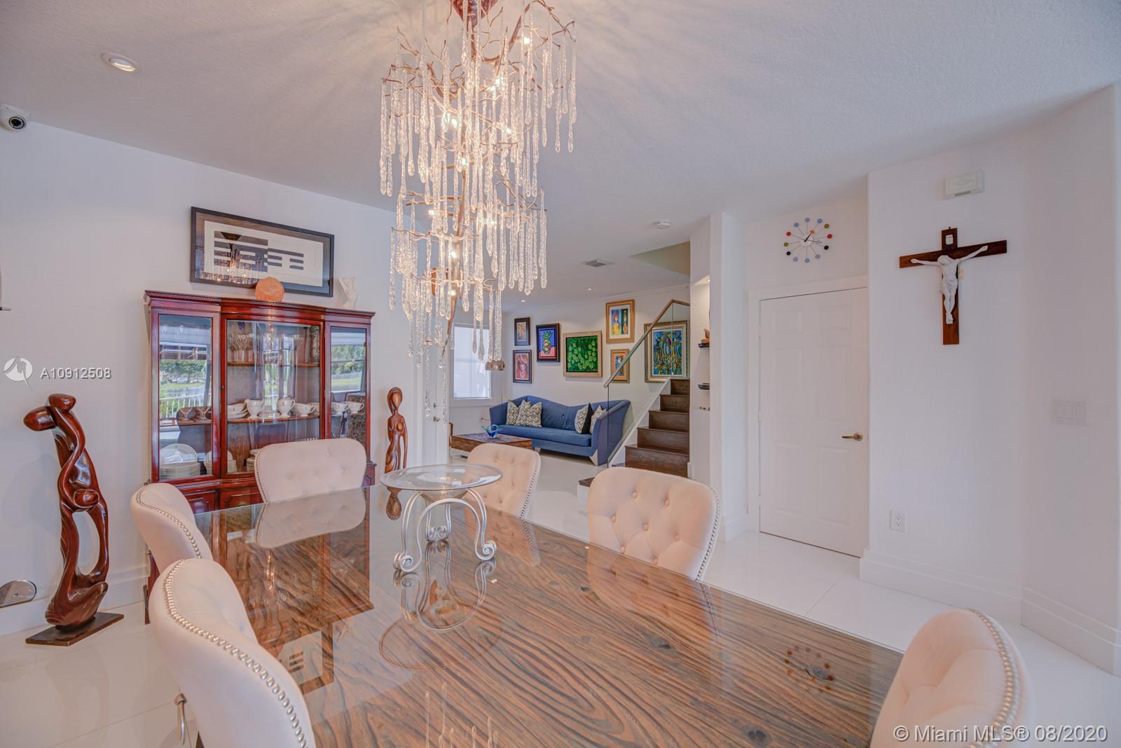 Spectacular and tastefully renovated 4/2.5 lake front townhouse in the private community of Windward. This is truly a one-of-a-kind property with multiple upgrades throughout, including elegant porcelain floors on the first level and dark wood on the stairwell and second level. The renovated kitchen comes with top-of-the-line stainless steel appliances and quartz countertops. Every bathroom has been tastefully renovated. This spacious property has high ceilings and a gorgeous view of the lake where you could enjoy beautiful sunsets. Newer A/C and high tech closed circuit security system. Access to Islands of Doral Community Pool and Clubhouse. Next to Turnpike, new Legacy Park, A+ schools, malls, restaurants and much more. Easy to Show!