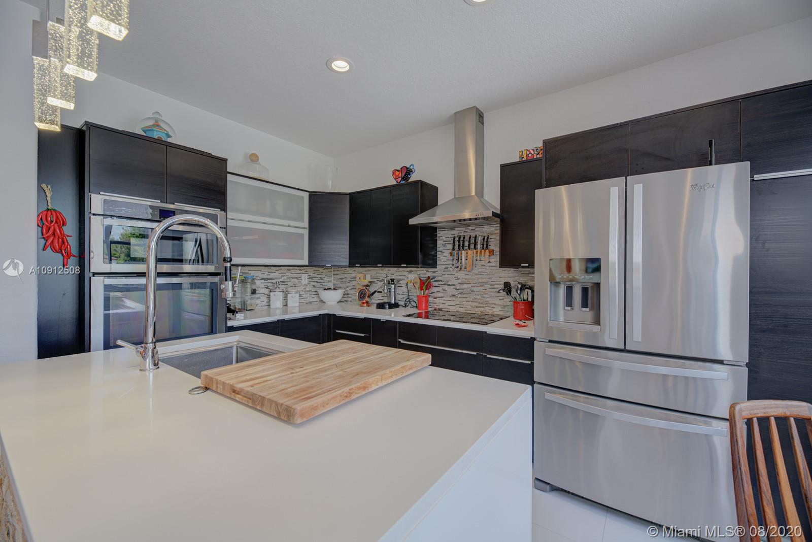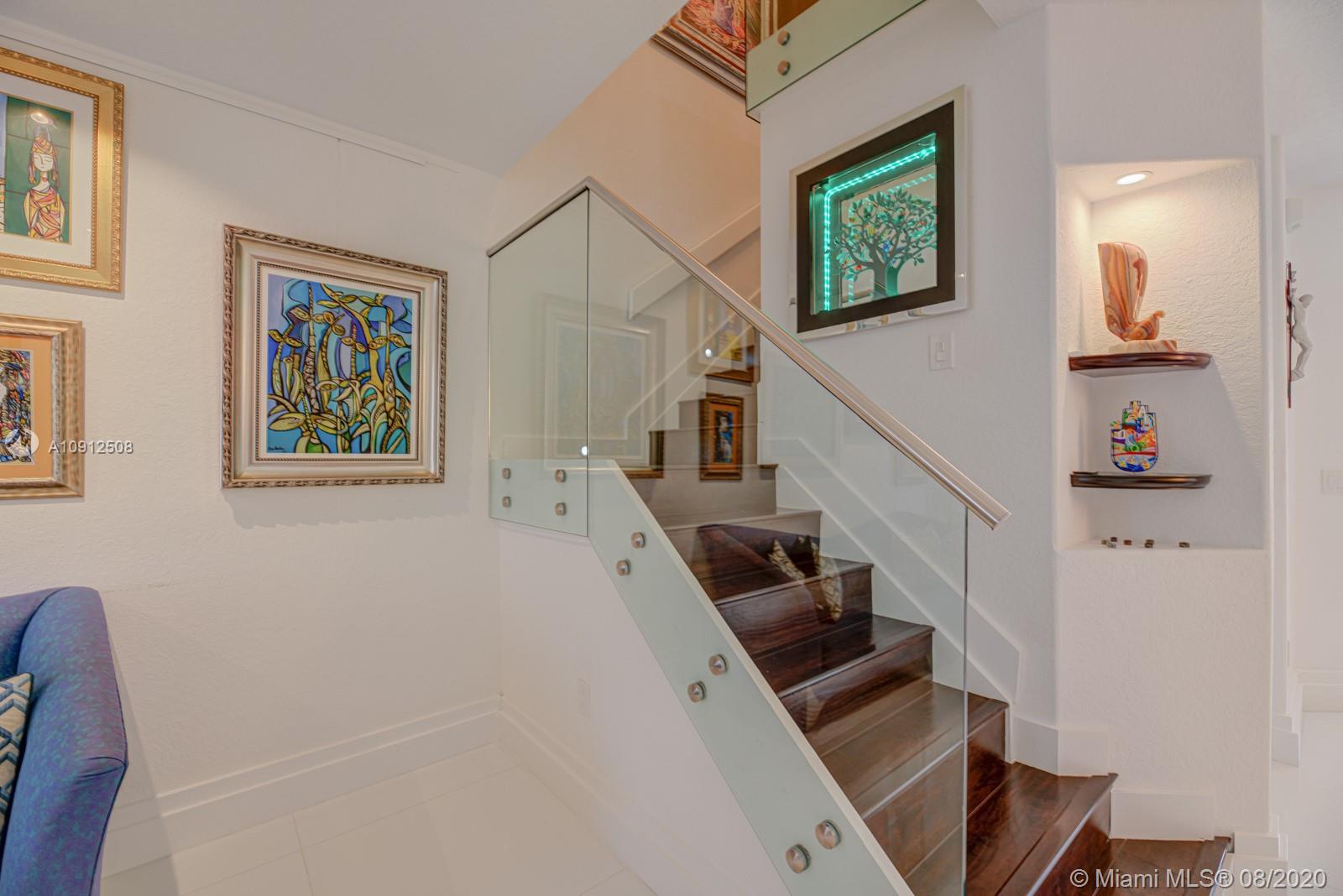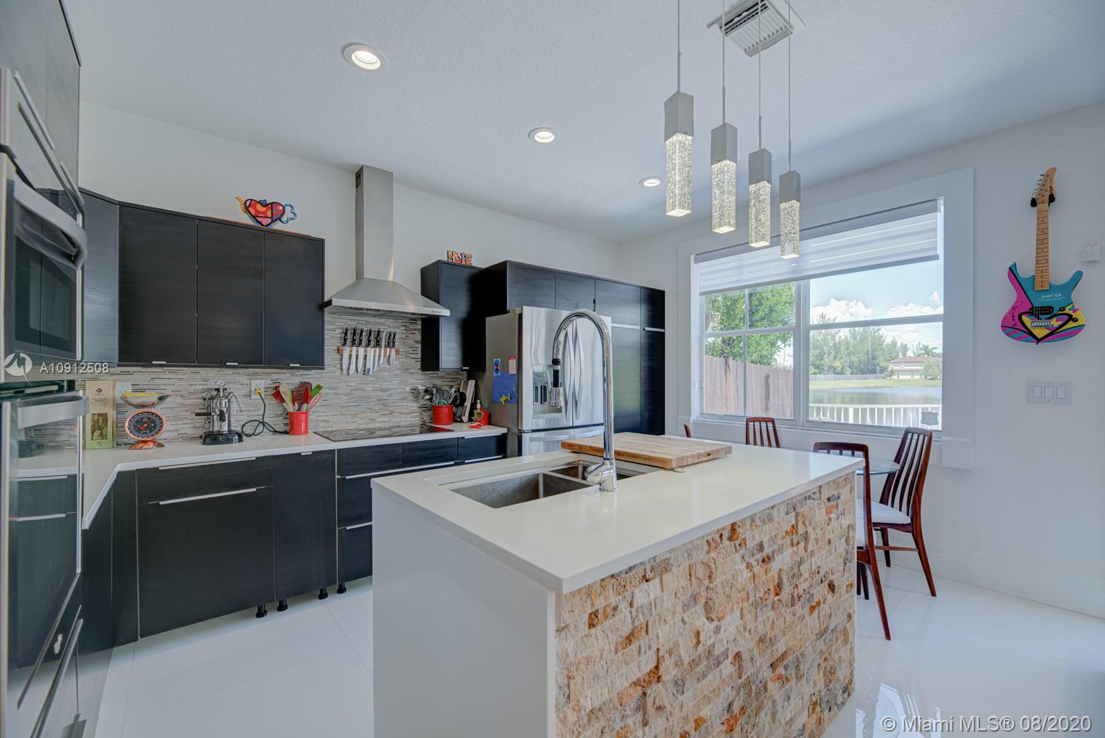 Spectacular and tastefully renovated 4/2.5 lake front townhouse in the private community of Windward. This is truly a one-of-a-kind property with multiple upgrades throughout, including elegant porcelain floors on the first level and dark wood on the stairwell and second level. The renovated kitchen comes with top-of-the-line stainless steel appliances and quartz countertops. Every bathroom has been tastefully renovated. This spacious property has high ceilings and a gorgeous view of the lake where you could enjoy beautiful sunsets. Newer A/C and high tech closed circuit security system. Access to Islands of Doral Community Pool and Clubhouse. Next to Turnpike, new Legacy Park, A+ schools, malls, restaurants and much more. Easy to Show!