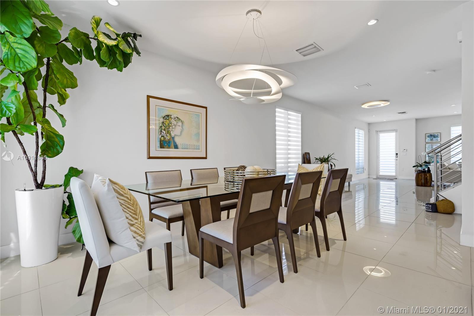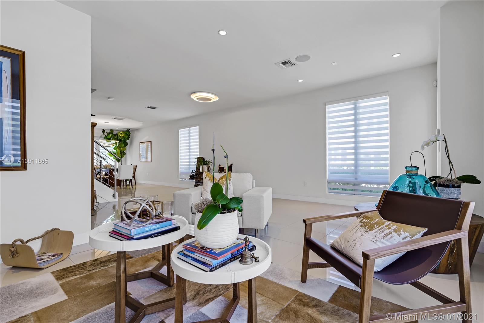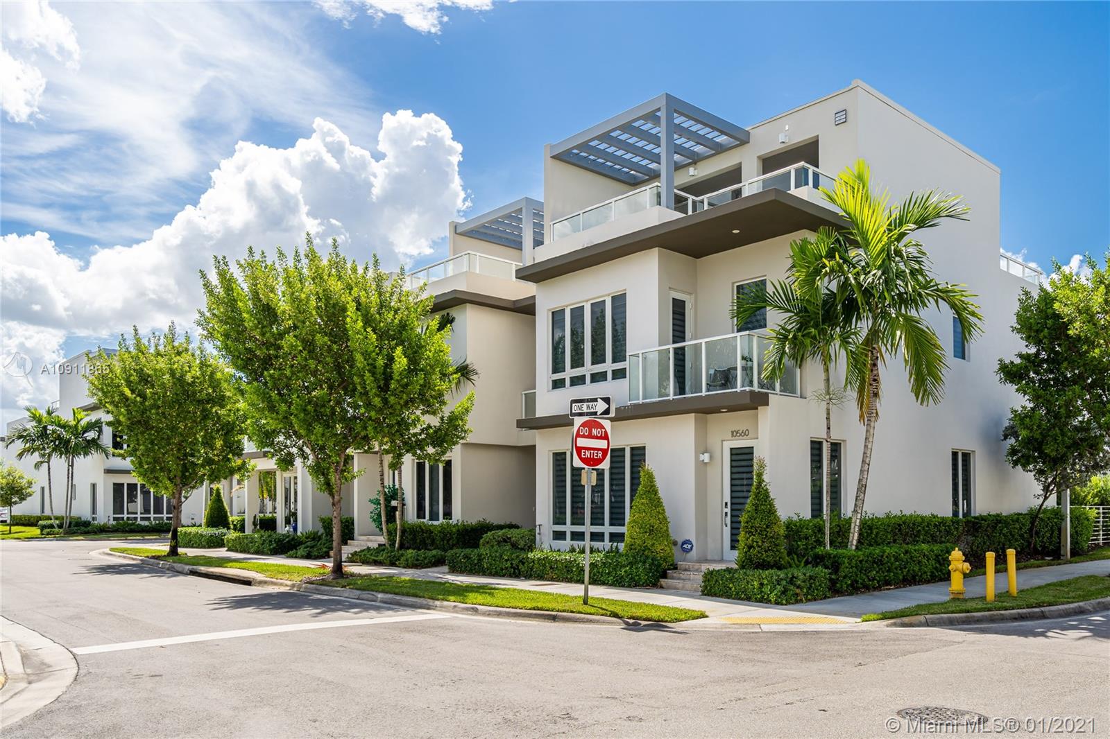 The most spectacular property in the Landmark at Doral community. Corner immaculate & luxurious Tri-Level "Smart" Townhome with duplex benefits. Modern building with impact windows and doors. The main building has 3 Bdrm, 3 full bath (master with balcony), living room, dining room, family room, open kitchen, quartz countertops, SS appliances, laundry room, 2-car garage, patio, and on the third floor, sky view terrace, half bath, closet, SS BBQ grill, refrigerator, granite countertop. The rear building has a studio (next gen) with bathroom, kitchen, laundry, A/C. Also, amenities resort style: clubhouse, pool, Jacuzzi, kids splash park, gym, tennis courts, sauna. It is located close to the express way, turnpike, 826, 836, best schools, shopping centers, Miami international airport.